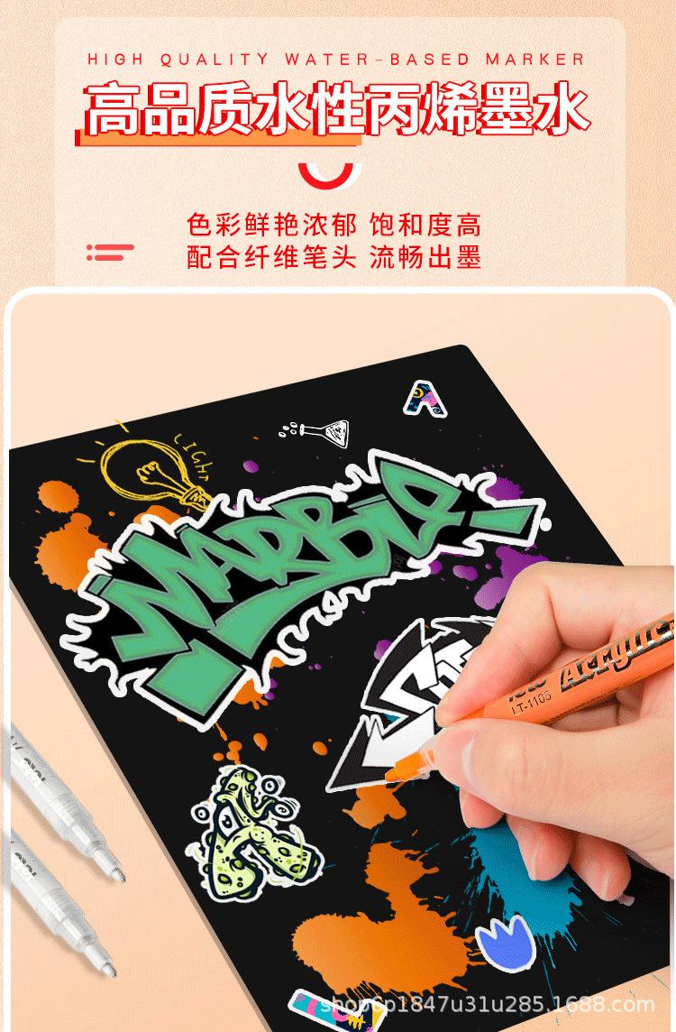 Plumón acrílico 24 colores arte para estudiantes color resistente al agua pintura graffiti DIY marcador para cuenta a mano multi-set