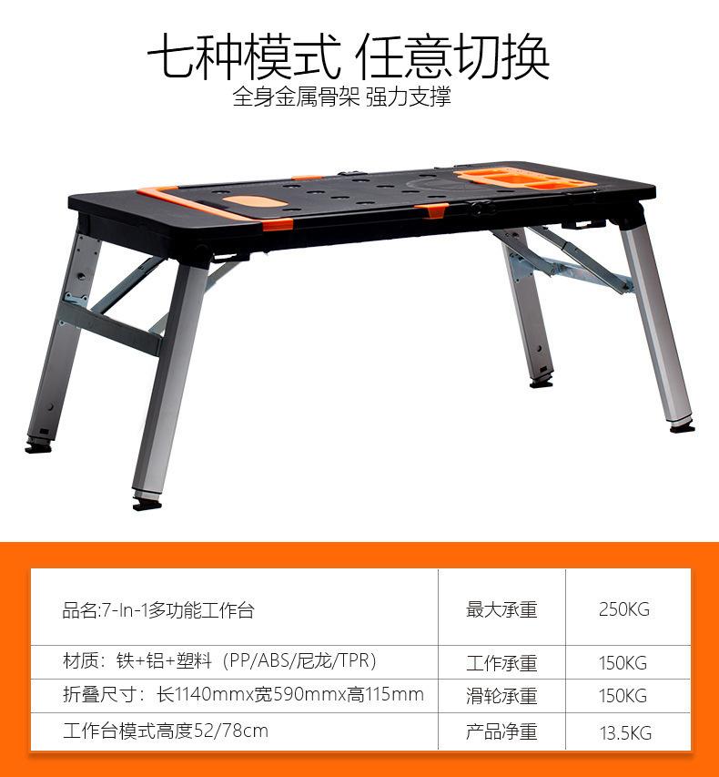 Taburete de banco de trabajo multifuncional 7 en 1 aleación de aluminio bricolaje consola plataforma móvil escalera andamio carro