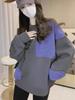 Sudadera Gruesa con Forro Polar de Estación Europea para Mujer Otoño e Invierno 2023 Diseño Holgado Sentido del Diseño Lana de Cordero Costuras en Color Contrastante Chaqueta