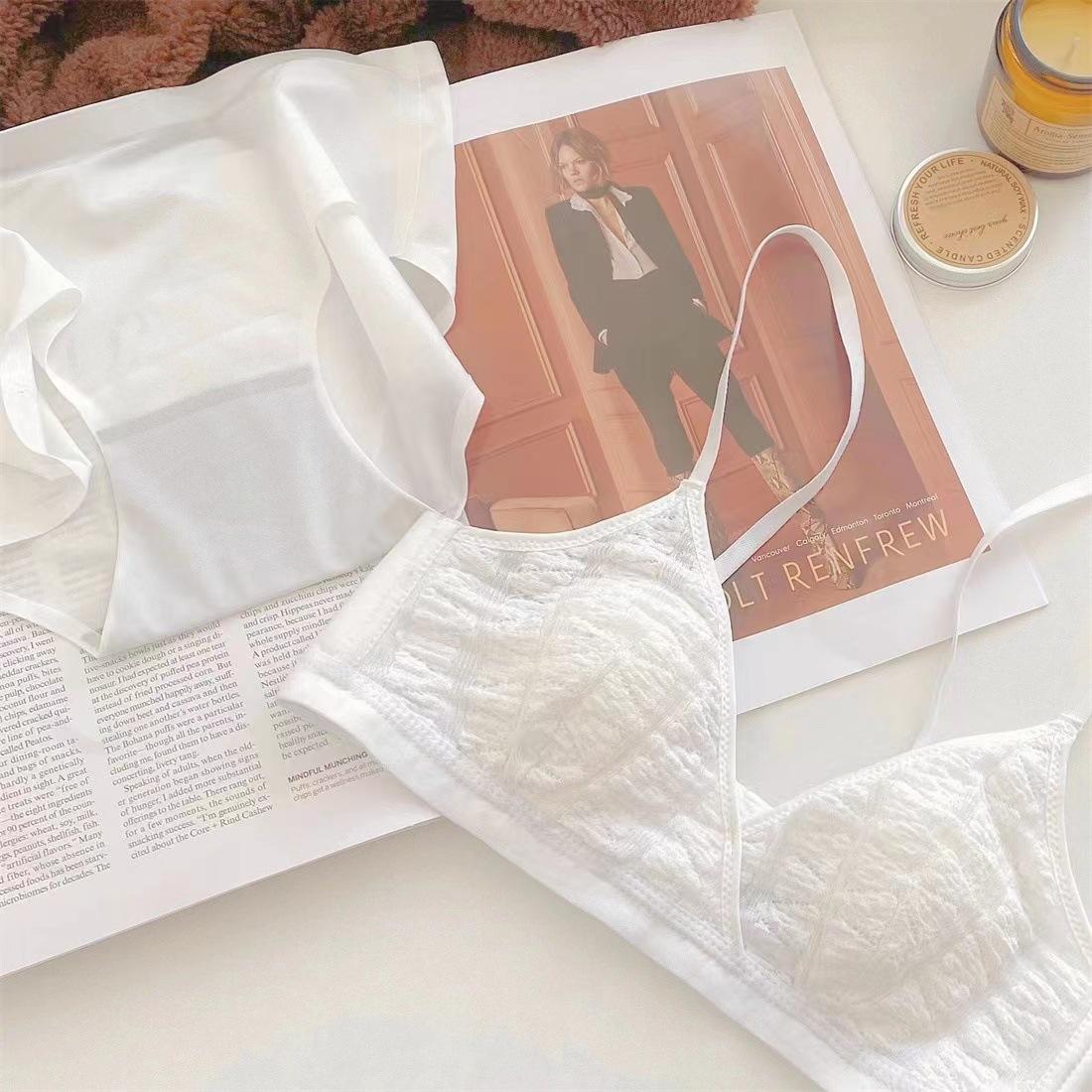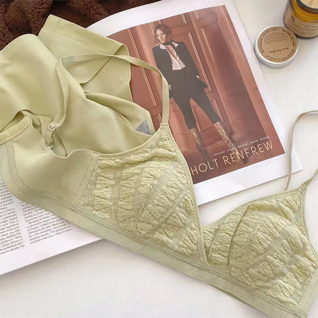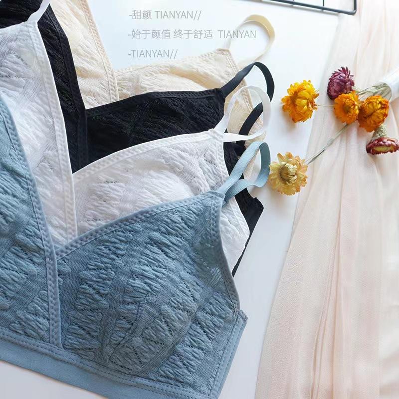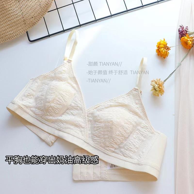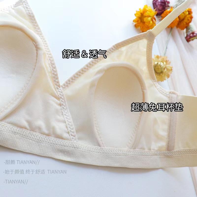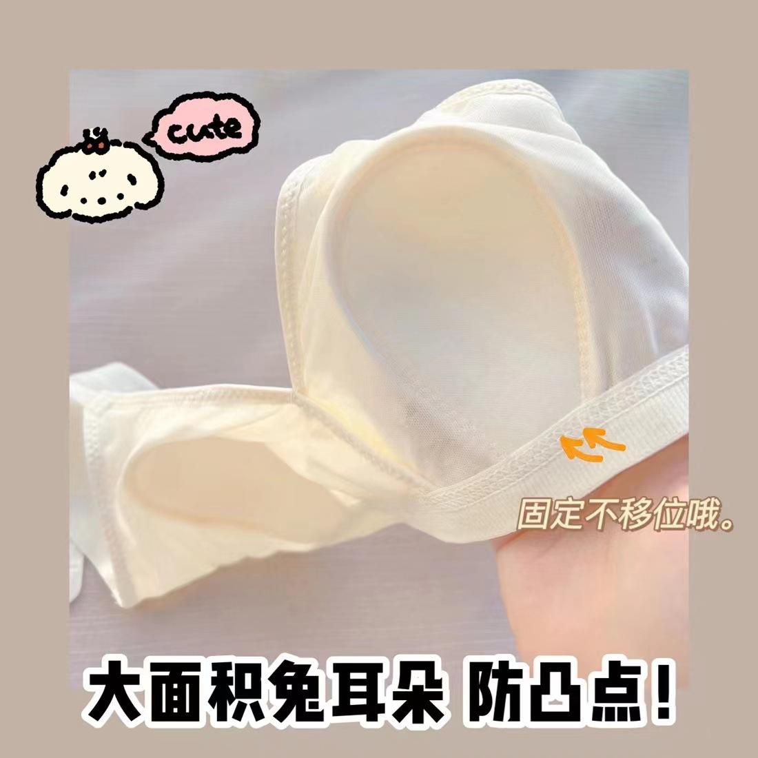 Sujetador triangular de tela de burbujas francesa ultrafina para niña, con orejas de conejo, cómodo, de pecho pequeño y grande, sin aros