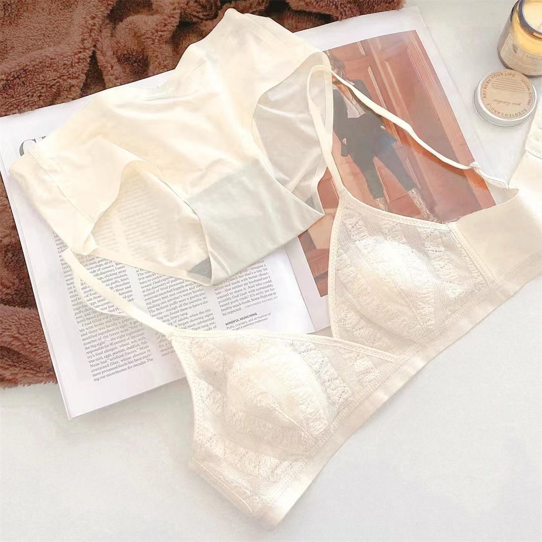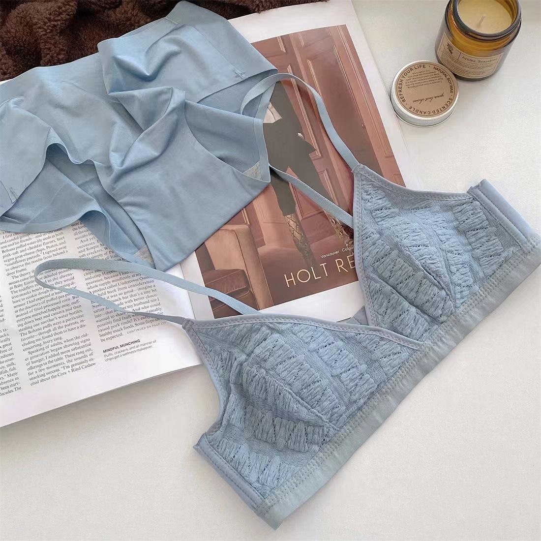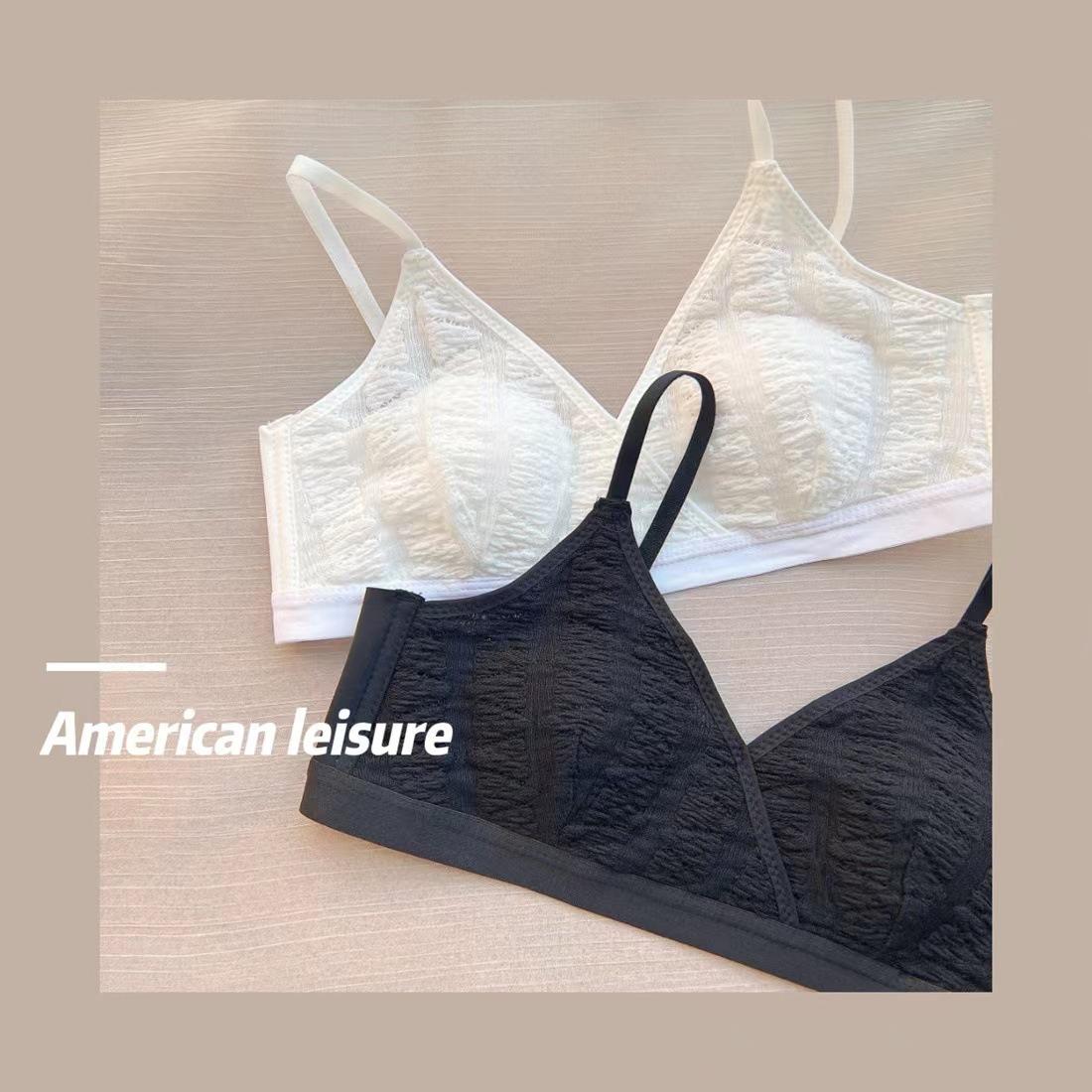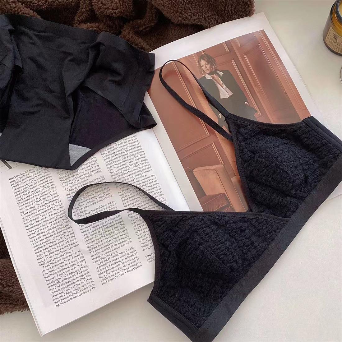 Sujetador triangular de tela de burbujas francesa ultrafina para niña, con orejas de conejo, cómodo, de pecho pequeño y grande, sin aros
