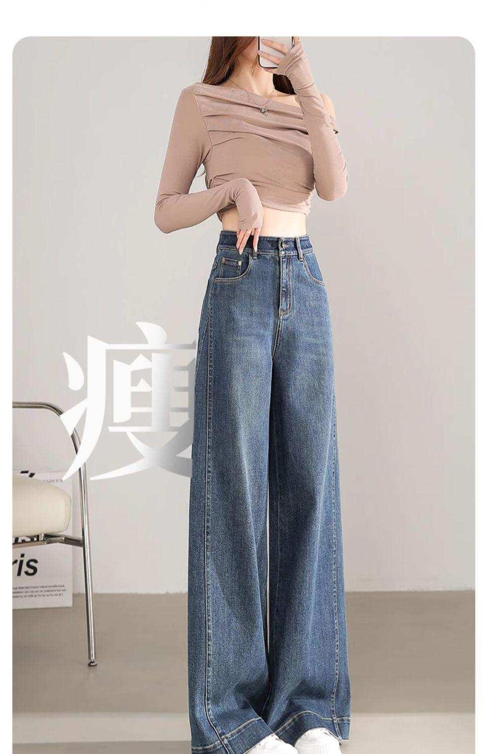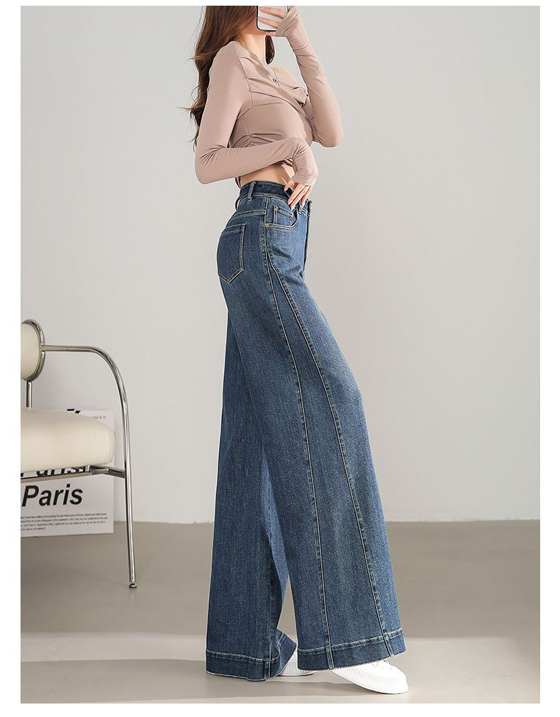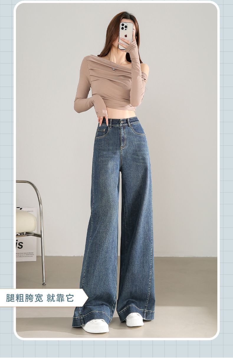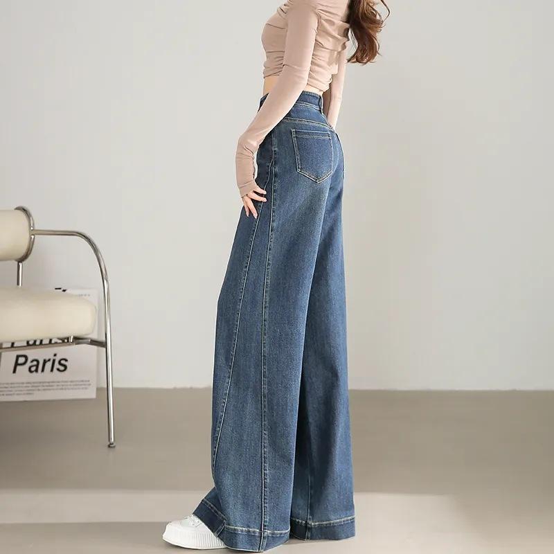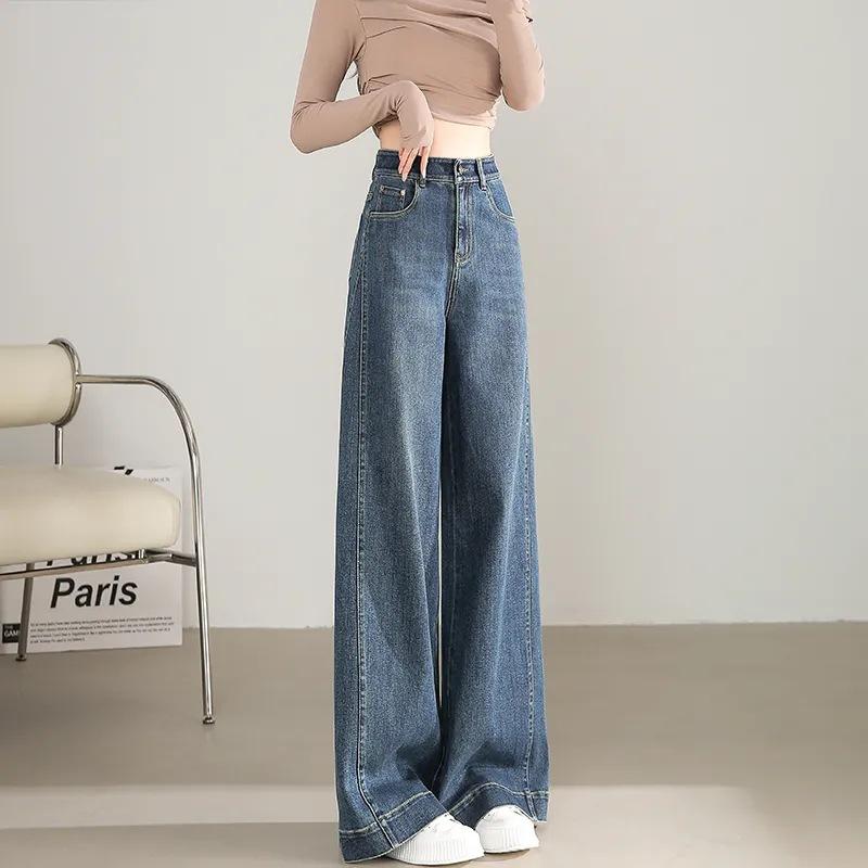 Pantalones vaqueros holgados de pierna ancha, de cintura alta, lavados, estilo retro, adelgazantes, de primavera 2024