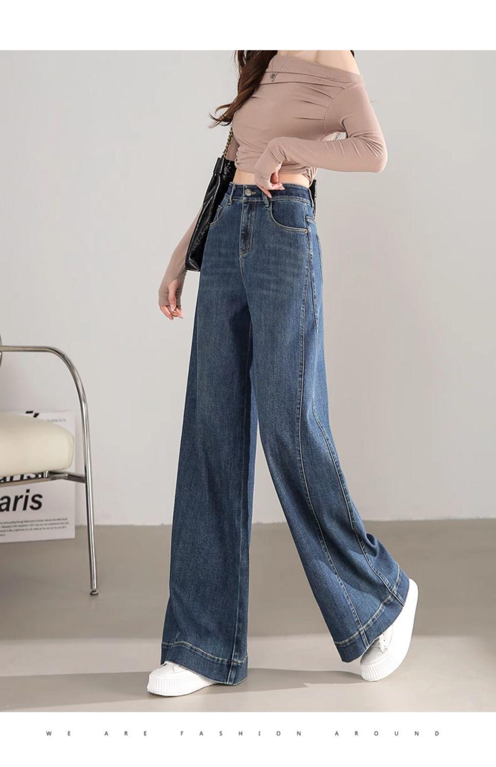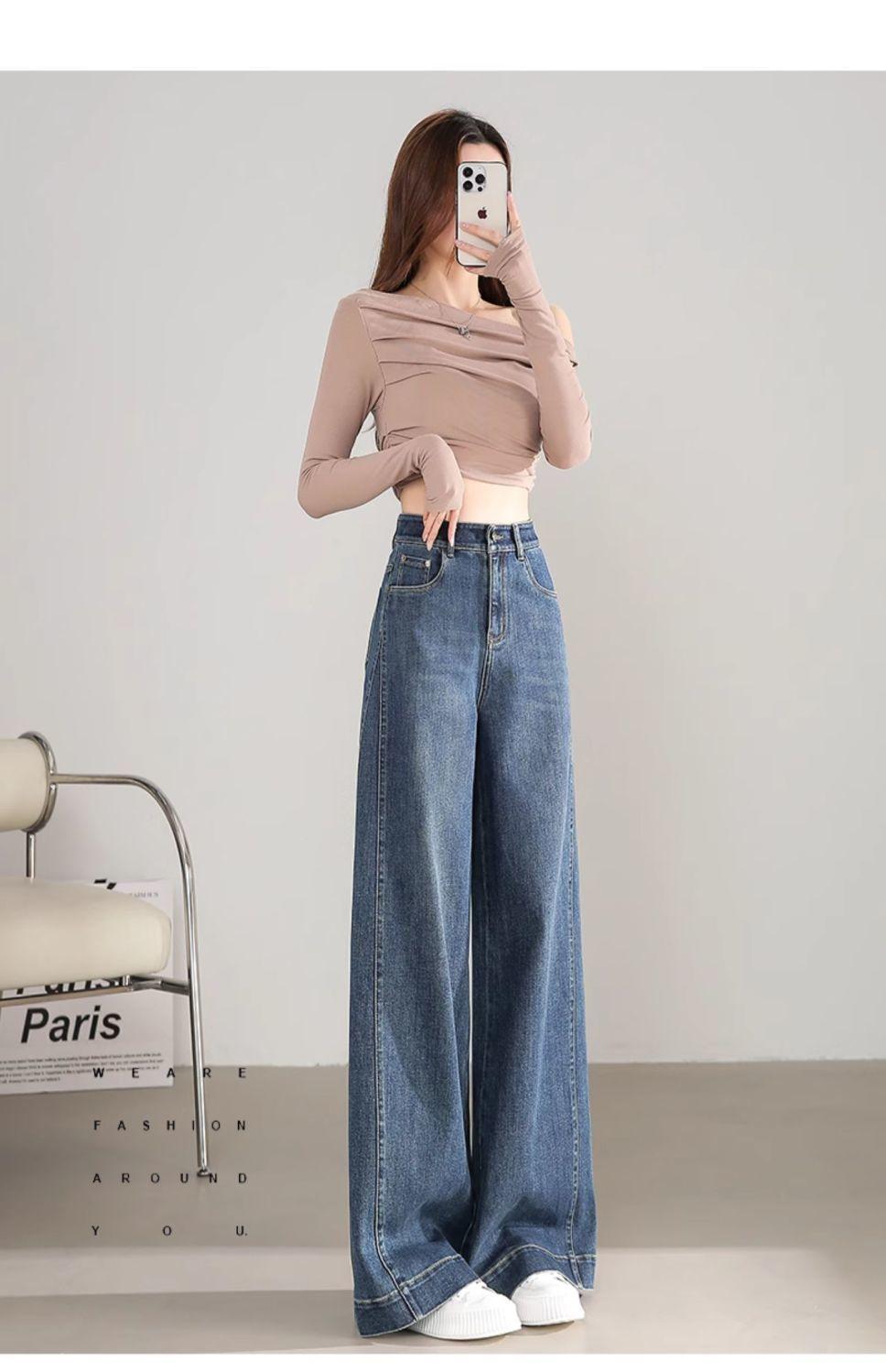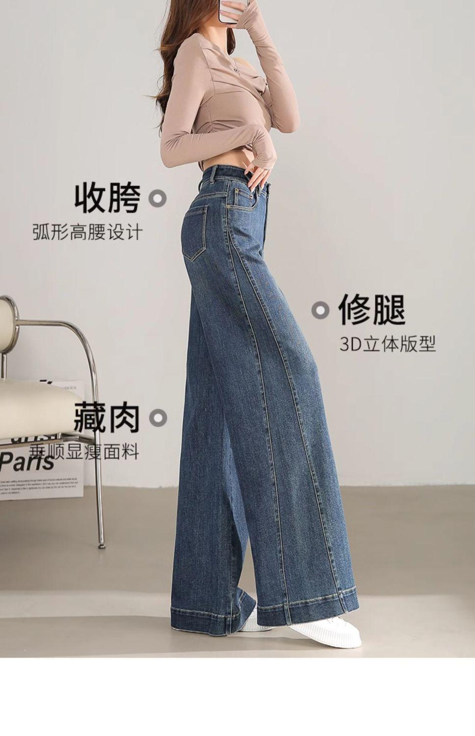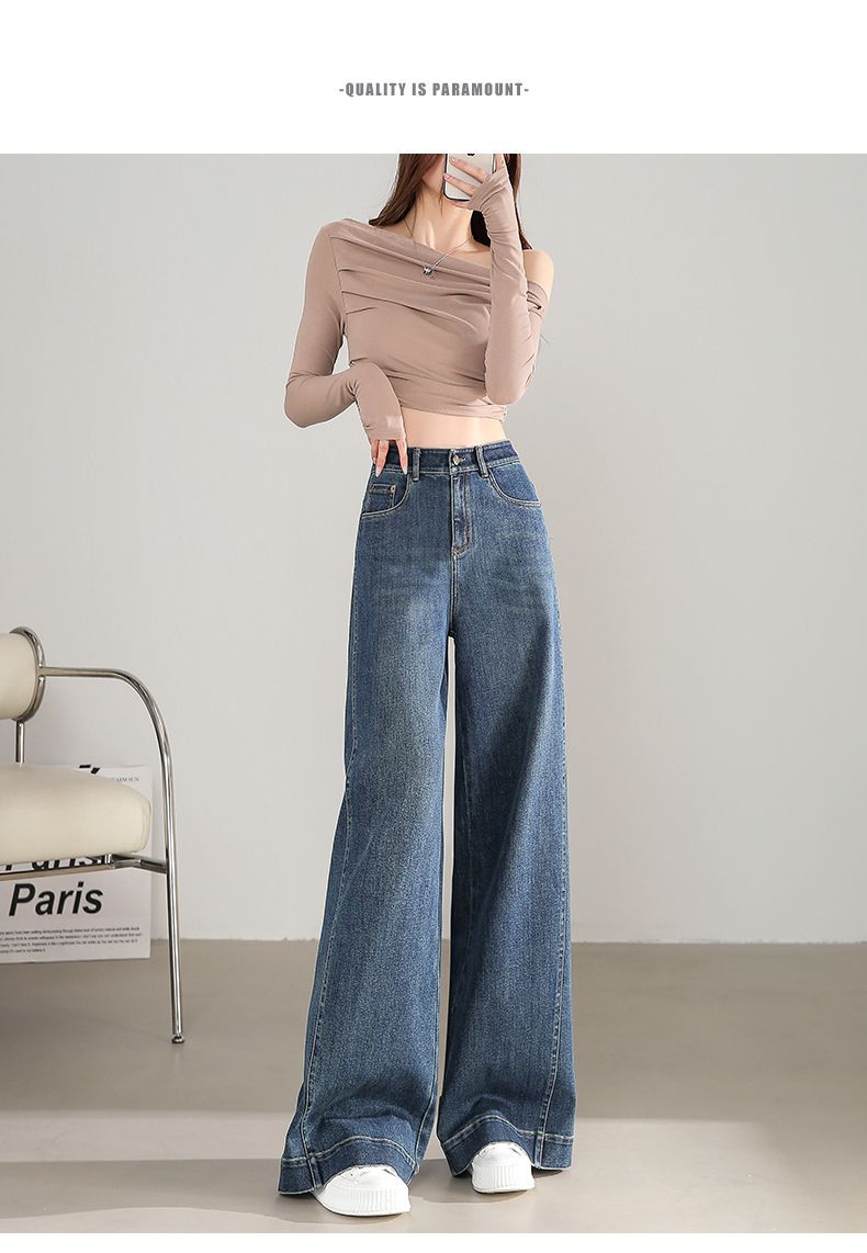 Pantalones vaqueros holgados de pierna ancha, de cintura alta, lavados, estilo retro, adelgazantes, de primavera 2024