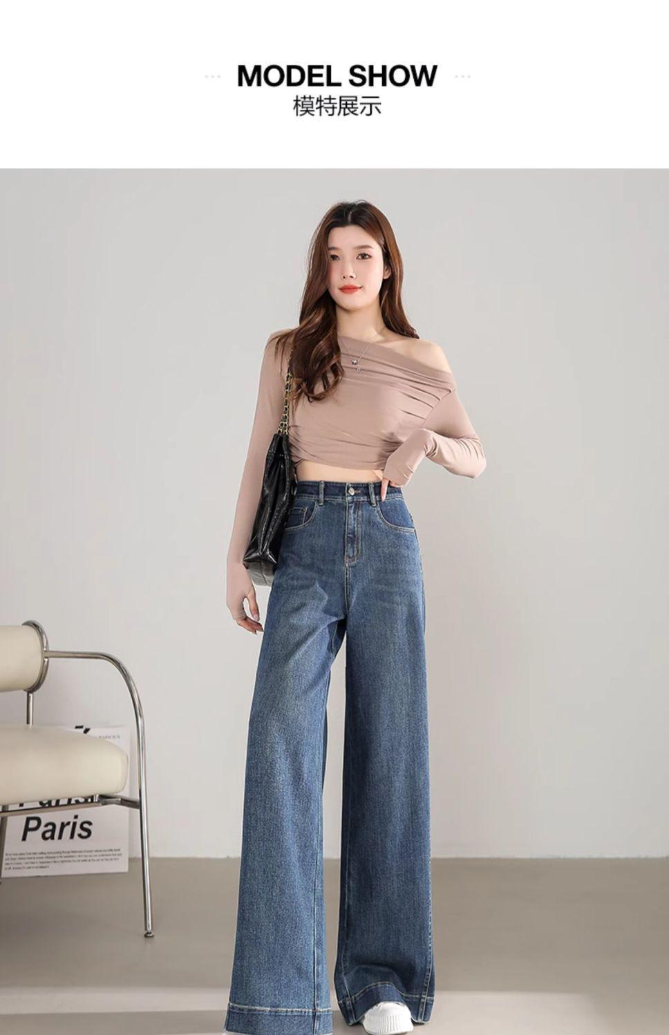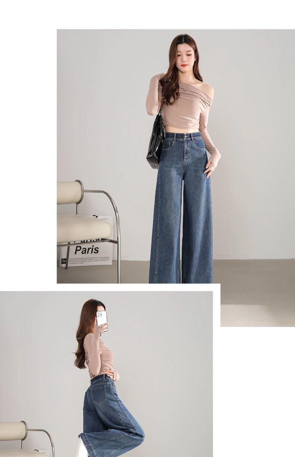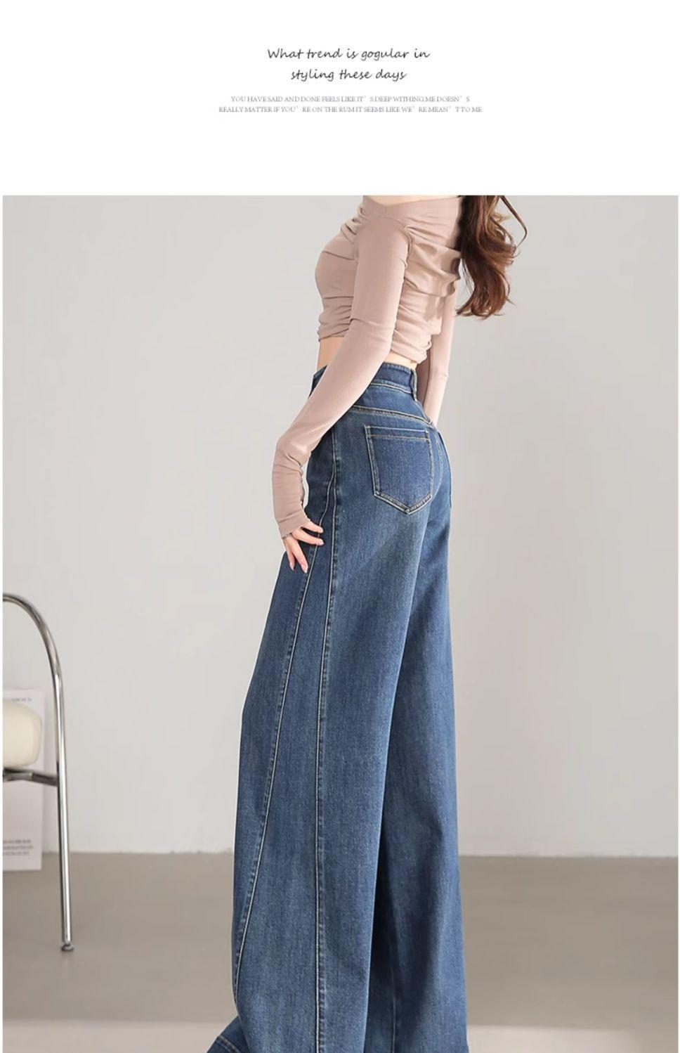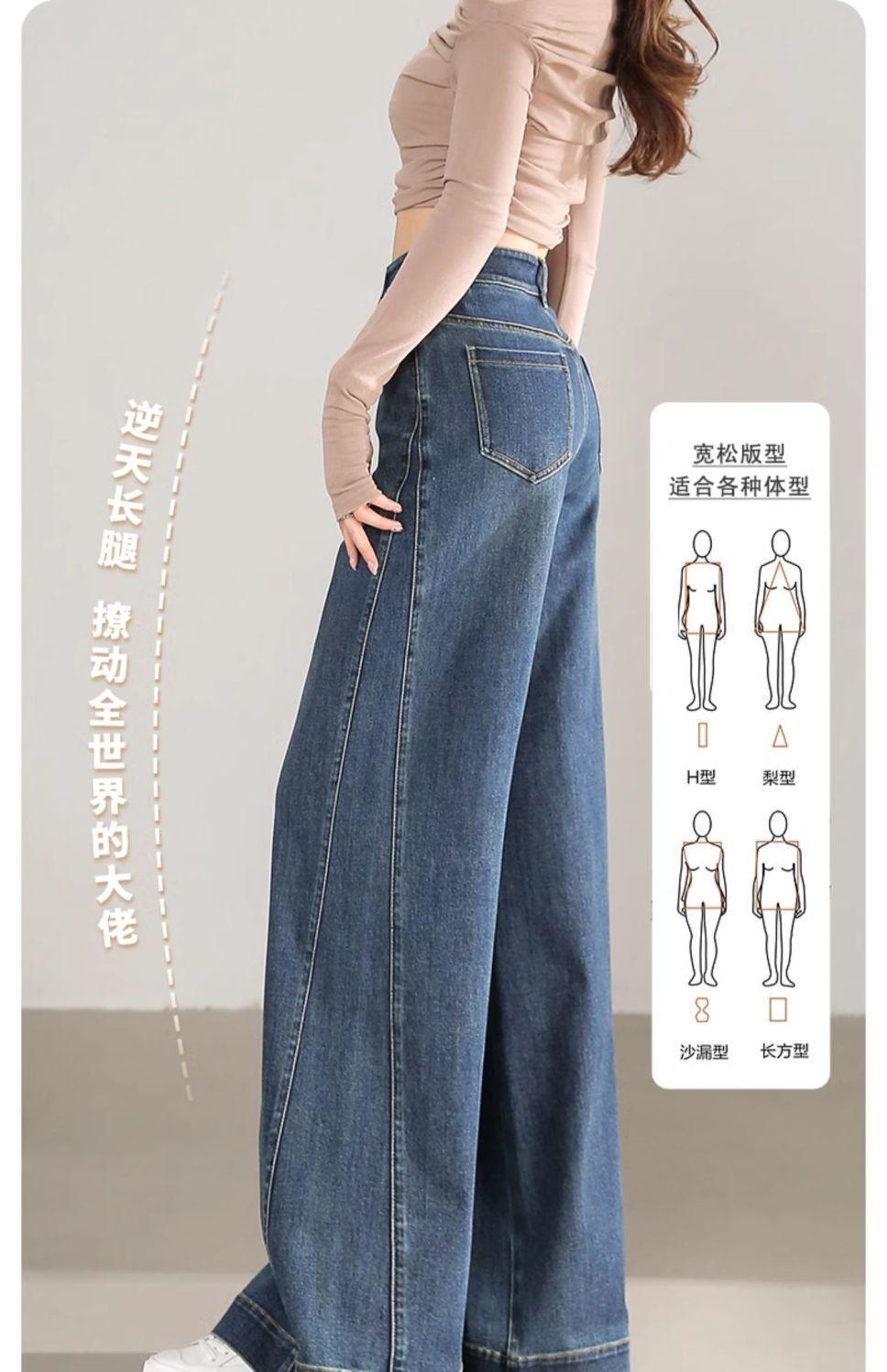 Pantalones vaqueros holgados de pierna ancha, de cintura alta, lavados, estilo retro, adelgazantes, de primavera 2024