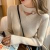 Suéter de cuello alto para mujer, otoño e invierno, nuevo, ajustado, diseño adelgazante, mangas micro-cuerno, suéter de punto básico que combina con todo.