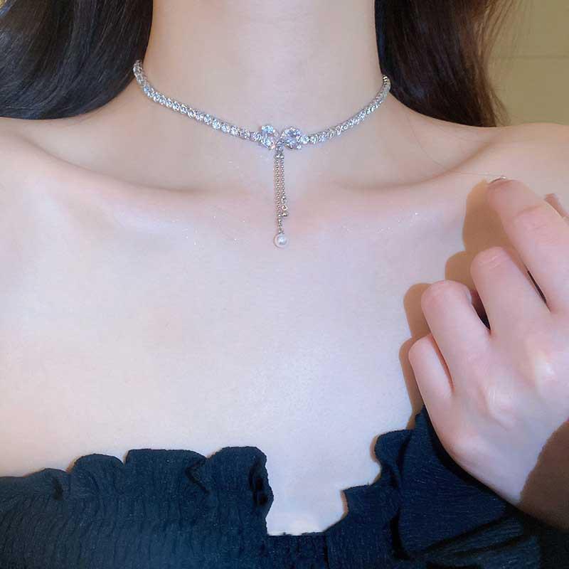 Collar de borla de perlas con diseño de nicho de lujo ligero de moda de Corea del Sur, elegante cadena de clavícula de alta calidad al por mayor