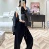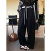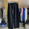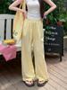 Pantalones curvos Miumiu para mujer, combinables con todo, bordados, de cintura alta, pierna ancha, elásticos, con cordón, informales, novedad primavera 2024