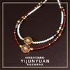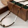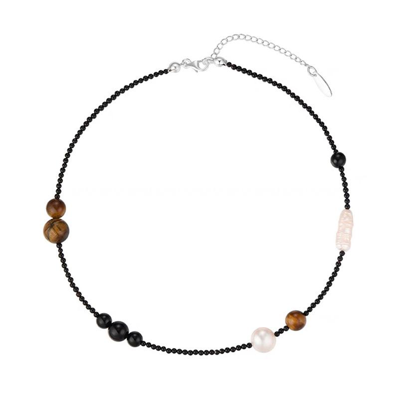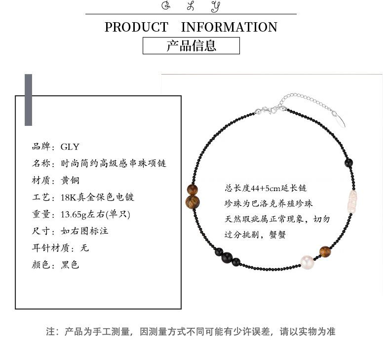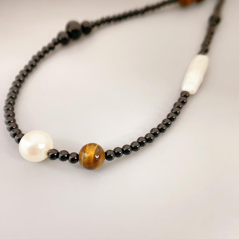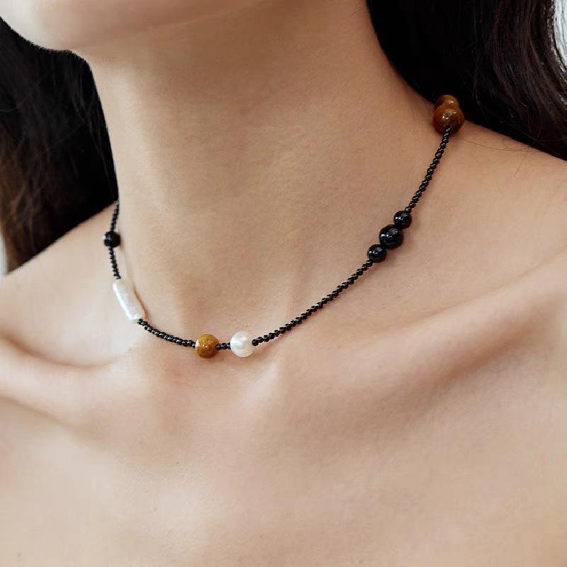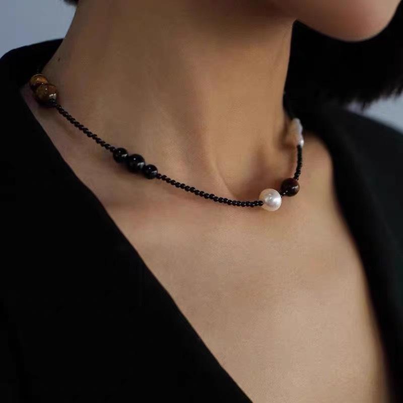 Collar con cadena de clavícula y perlas cultivadas barrocas con cuentas de piedra de tigre de ágata negra vintage de estilo nicho japonés y coreano