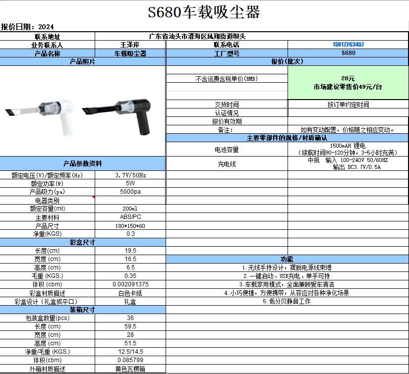 Aspiradora de Mano Inalámbrica para Coche Pequeña Mini Electrodomésticos Pequeños Transfronterizos Gran Succión Máquina de Limpieza de Coche Regalo para Clientes