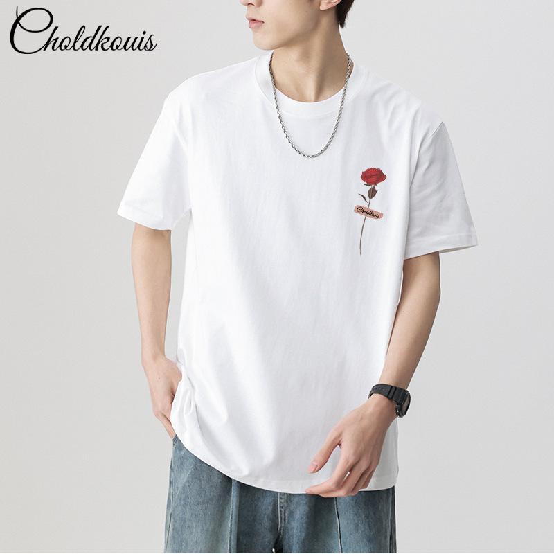 Camiseta de manga corta para hombre, de verano, holgada, de algodón, transpirable, con cuello redondo y media manga, con estampado de moda para hombre.