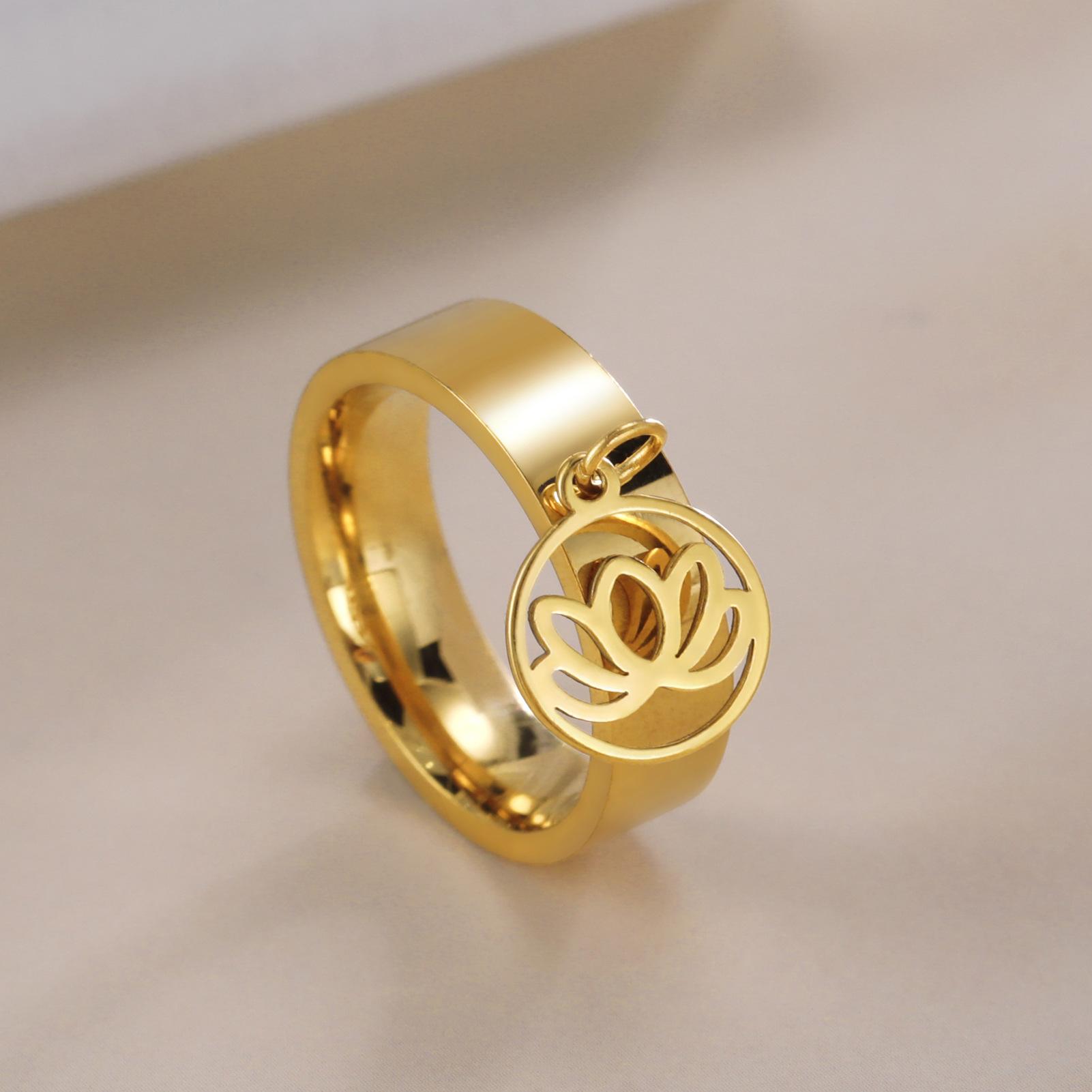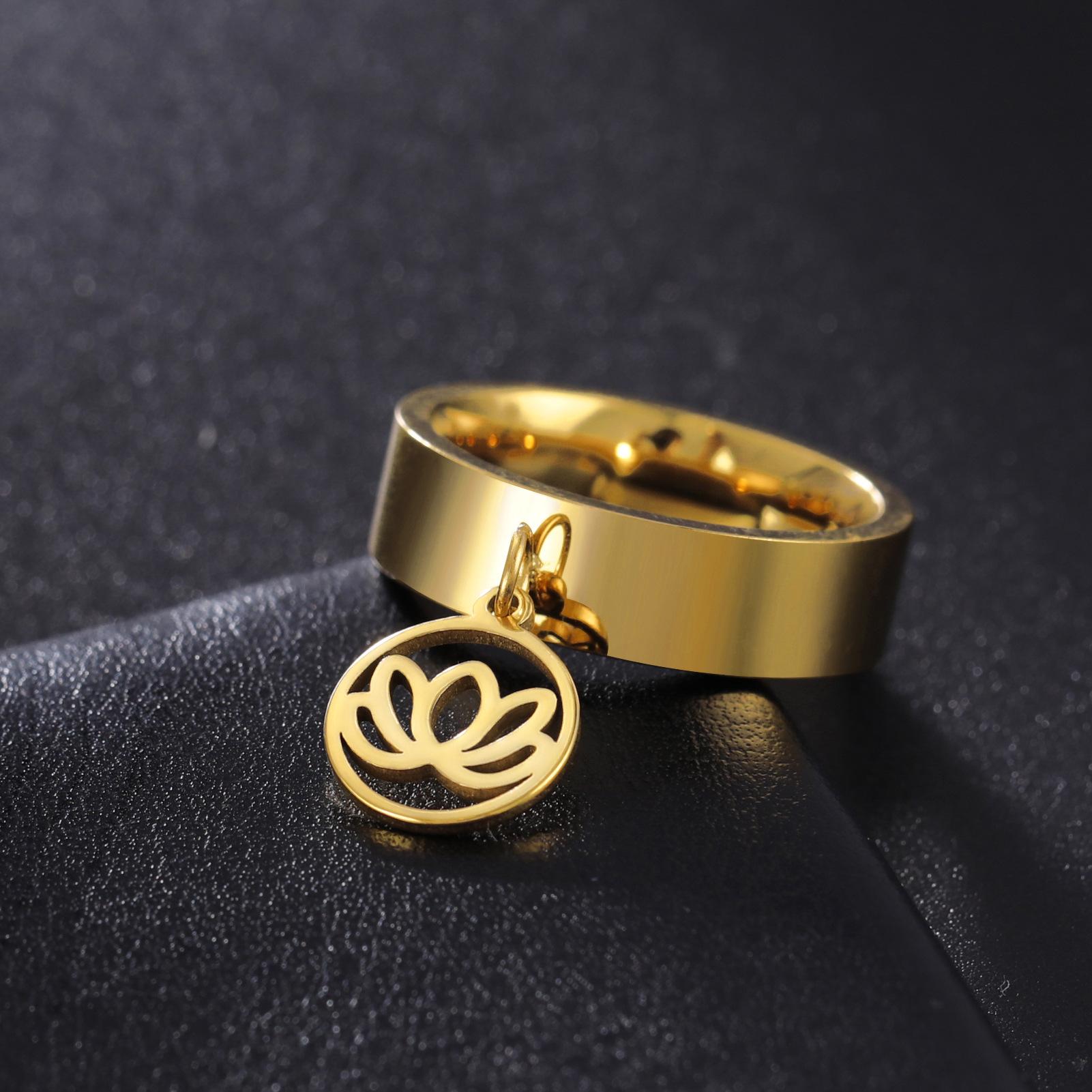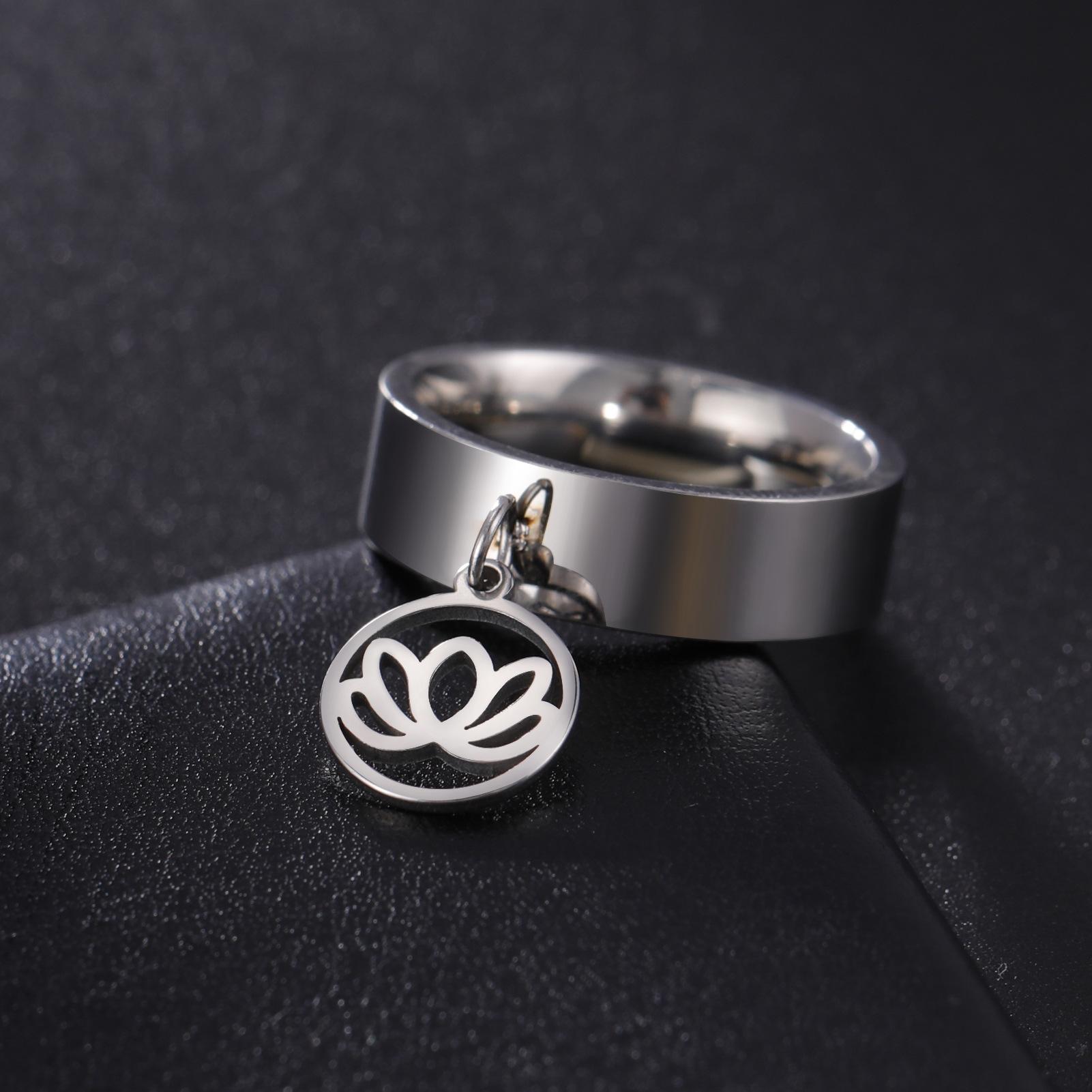 Anillo de soldadura de pareja de moda simple y con personalidad de tendencia de gran venta europea y americana, anillo de acero inoxidable con pequeño colgante de loto hueco