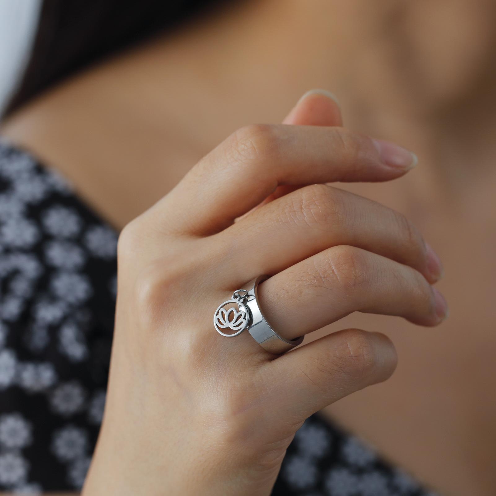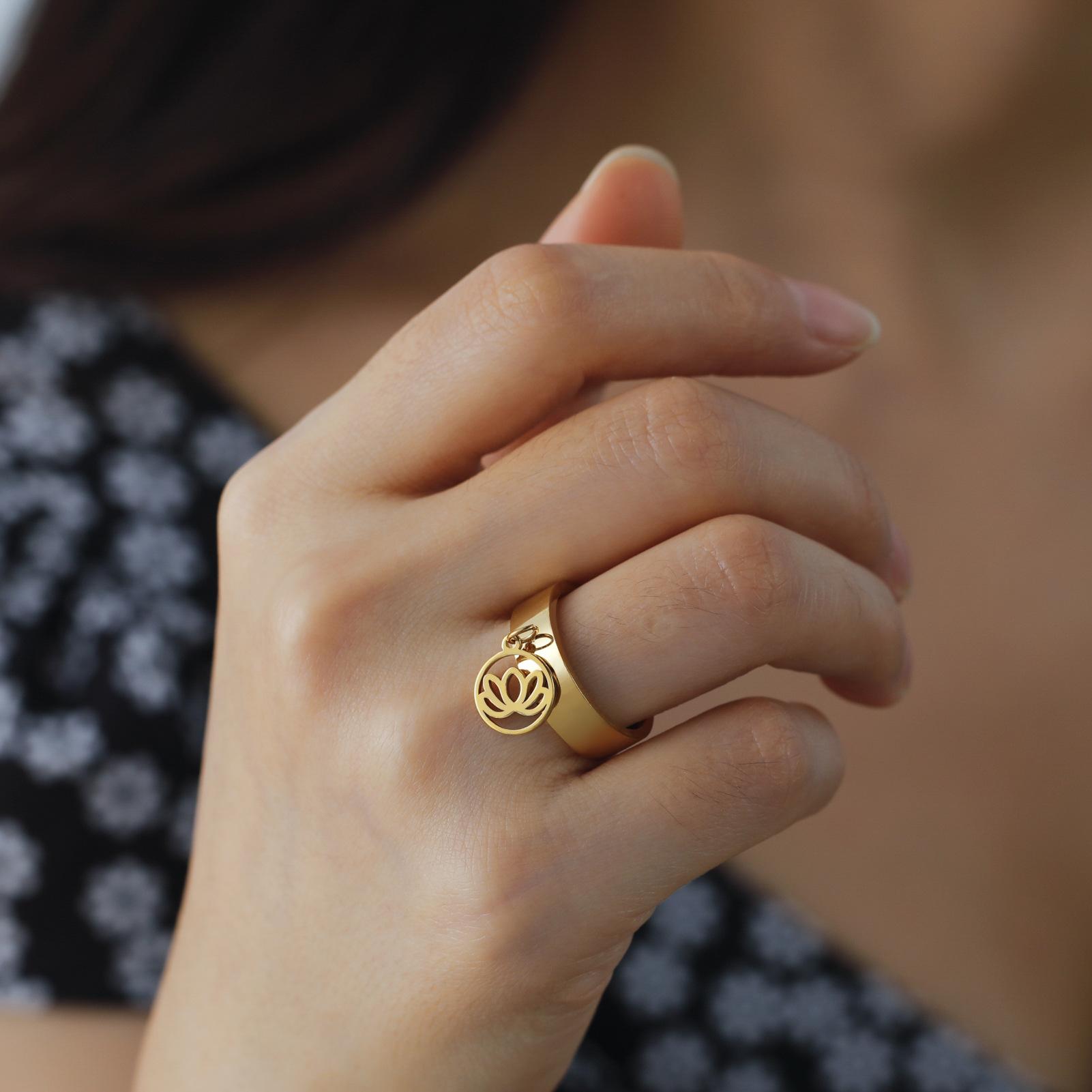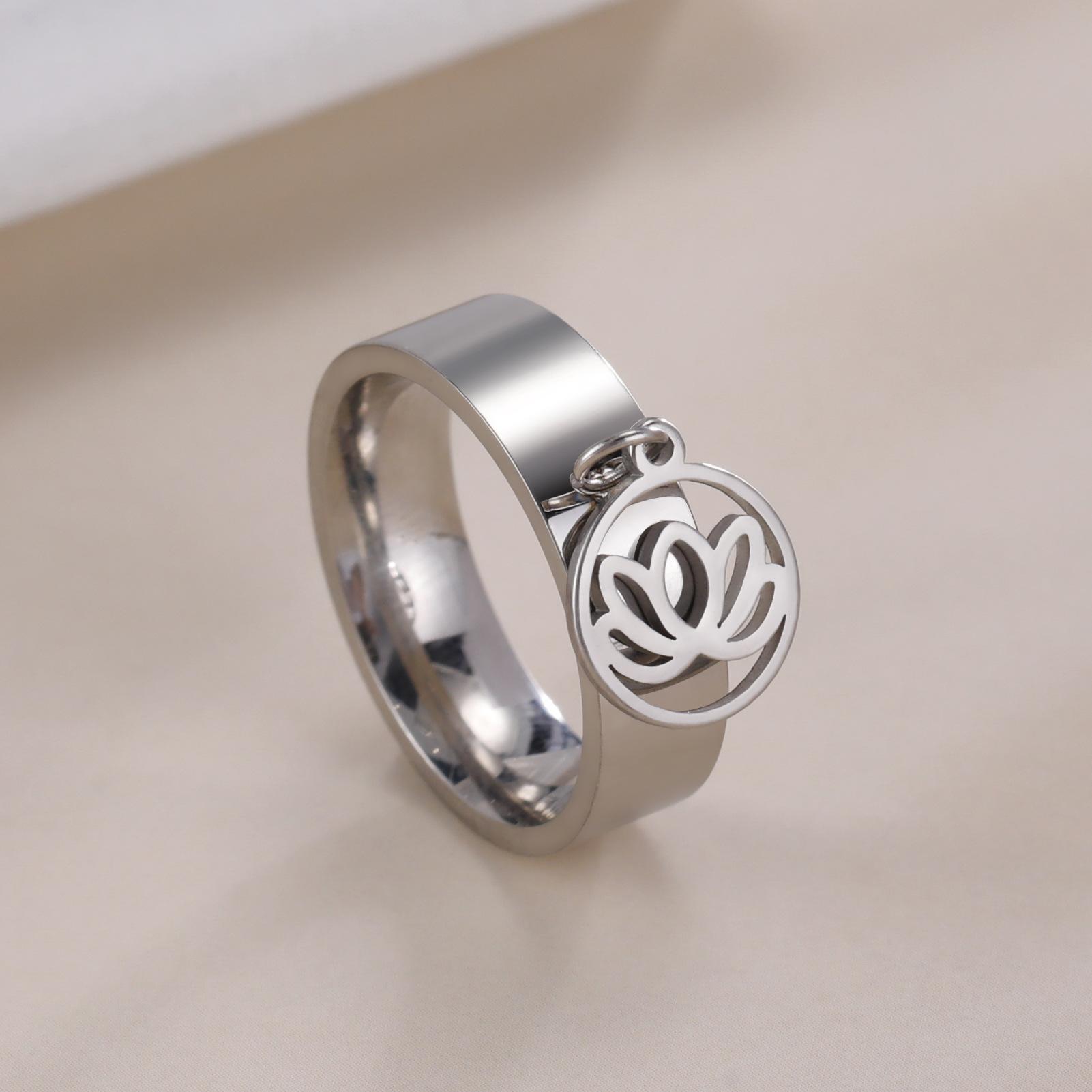 Anillo de soldadura de pareja de moda simple y con personalidad de tendencia de gran venta europea y americana, anillo de acero inoxidable con pequeño colgante de loto hueco