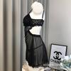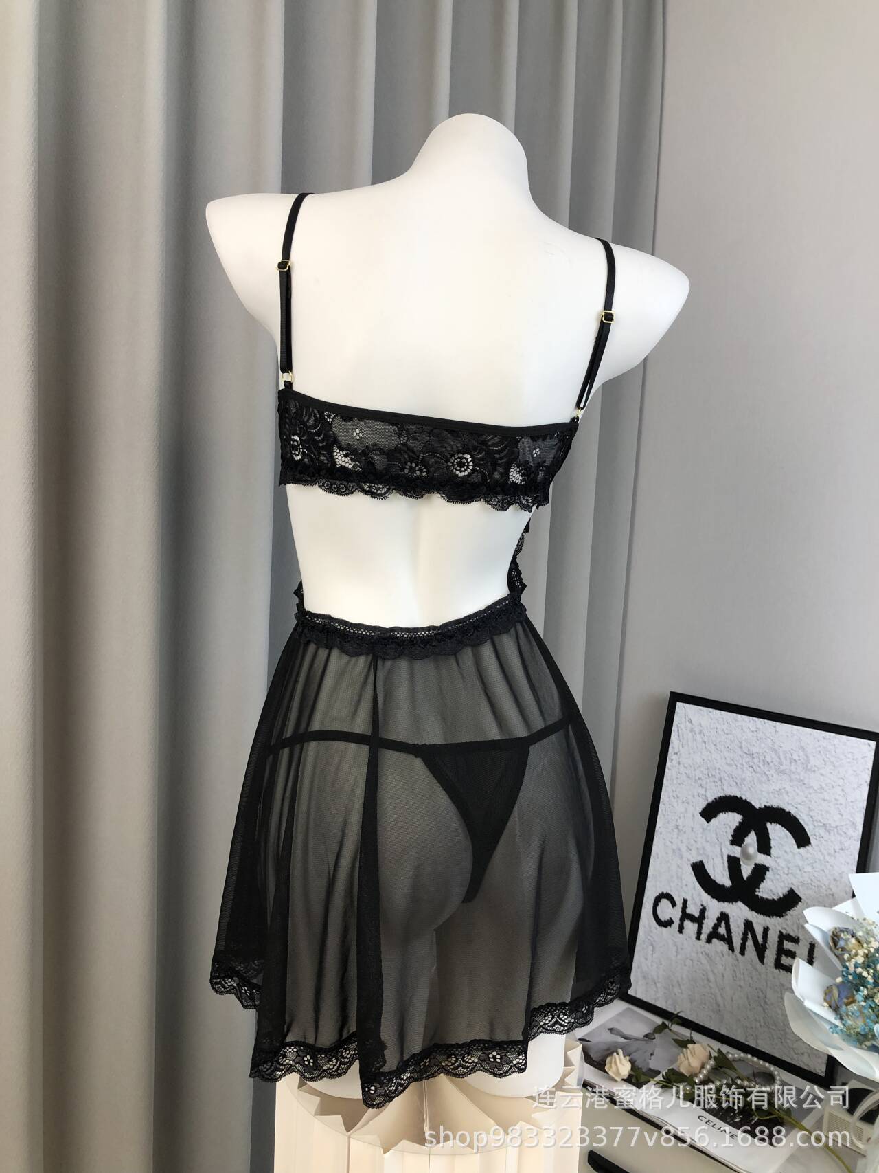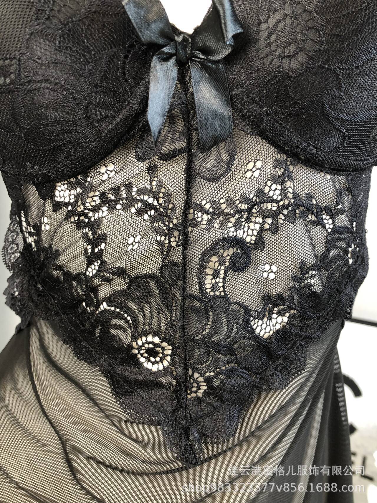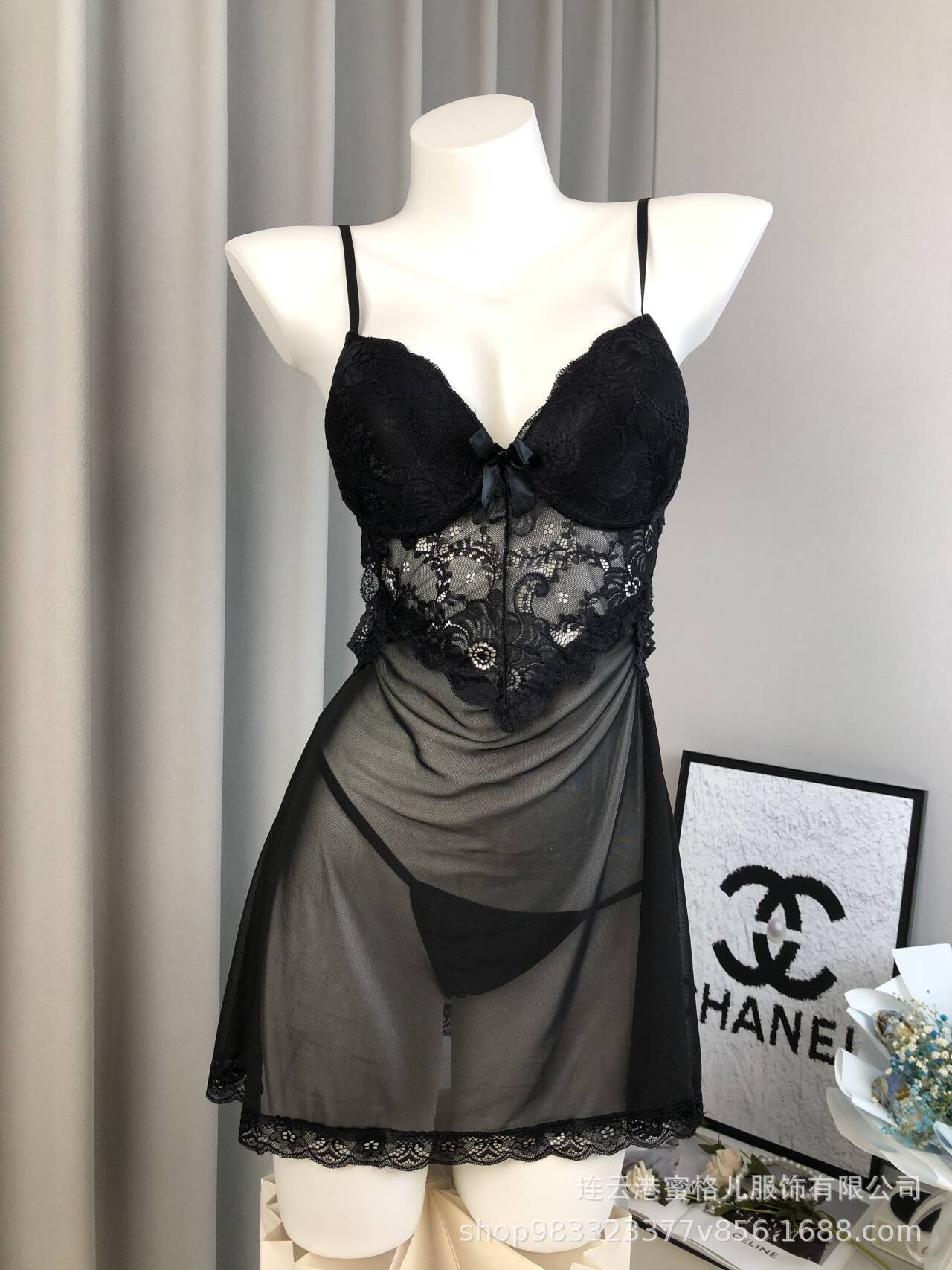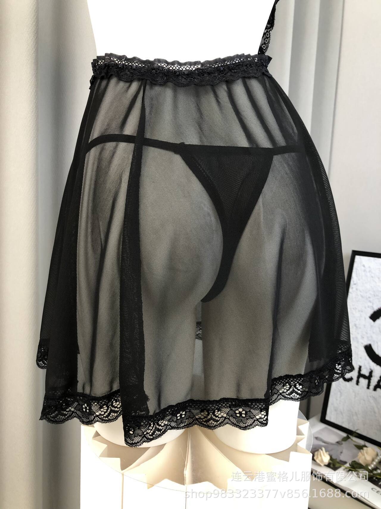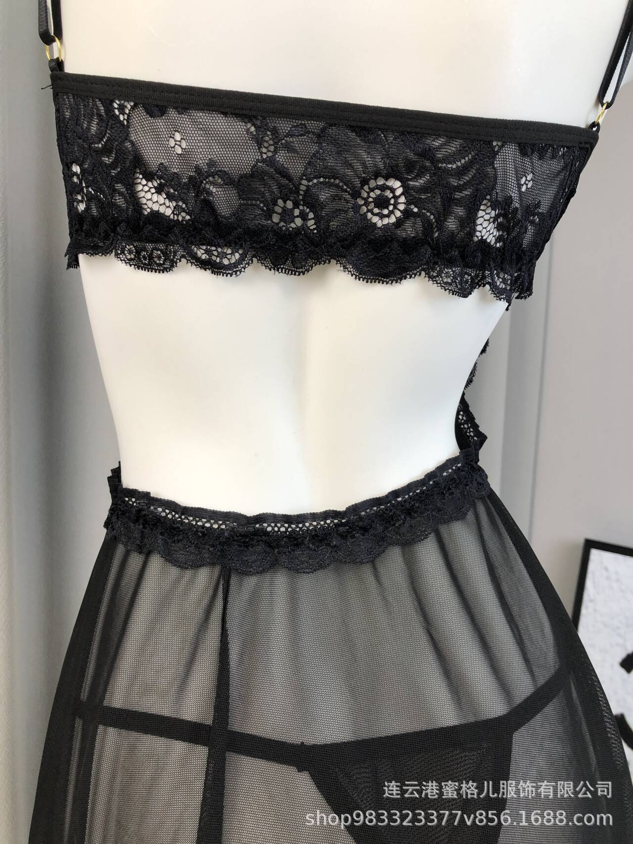 Camisón Francés sin Espalda con Encaje y Tirantes de Seda de Hielo Puro Deseo para Mujer Cómodo y Ligero Camisón Sexy sin Espalda con Falda de Tirantes para Mujer