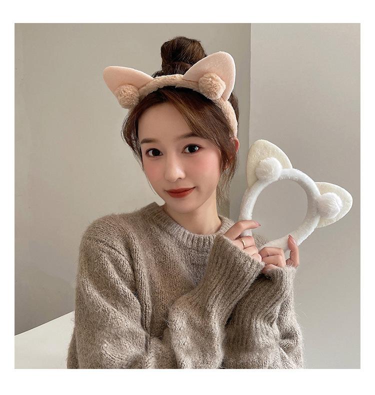 Orejas de Gato Otoño e Invierno Felpa Lindo Lavado de Cara Aro para el Cabello Celebridad de Internet para Mujer Lavado de Cara Presión para el Cabello Aro para el Cabello Tocado Tarjeta para el Cabello