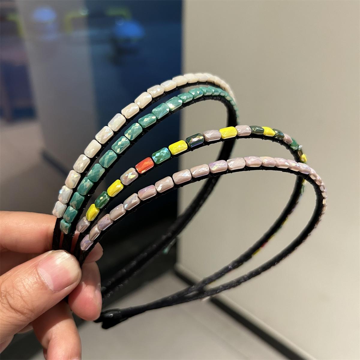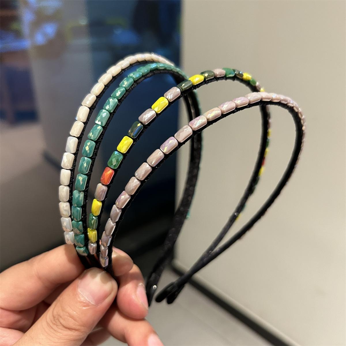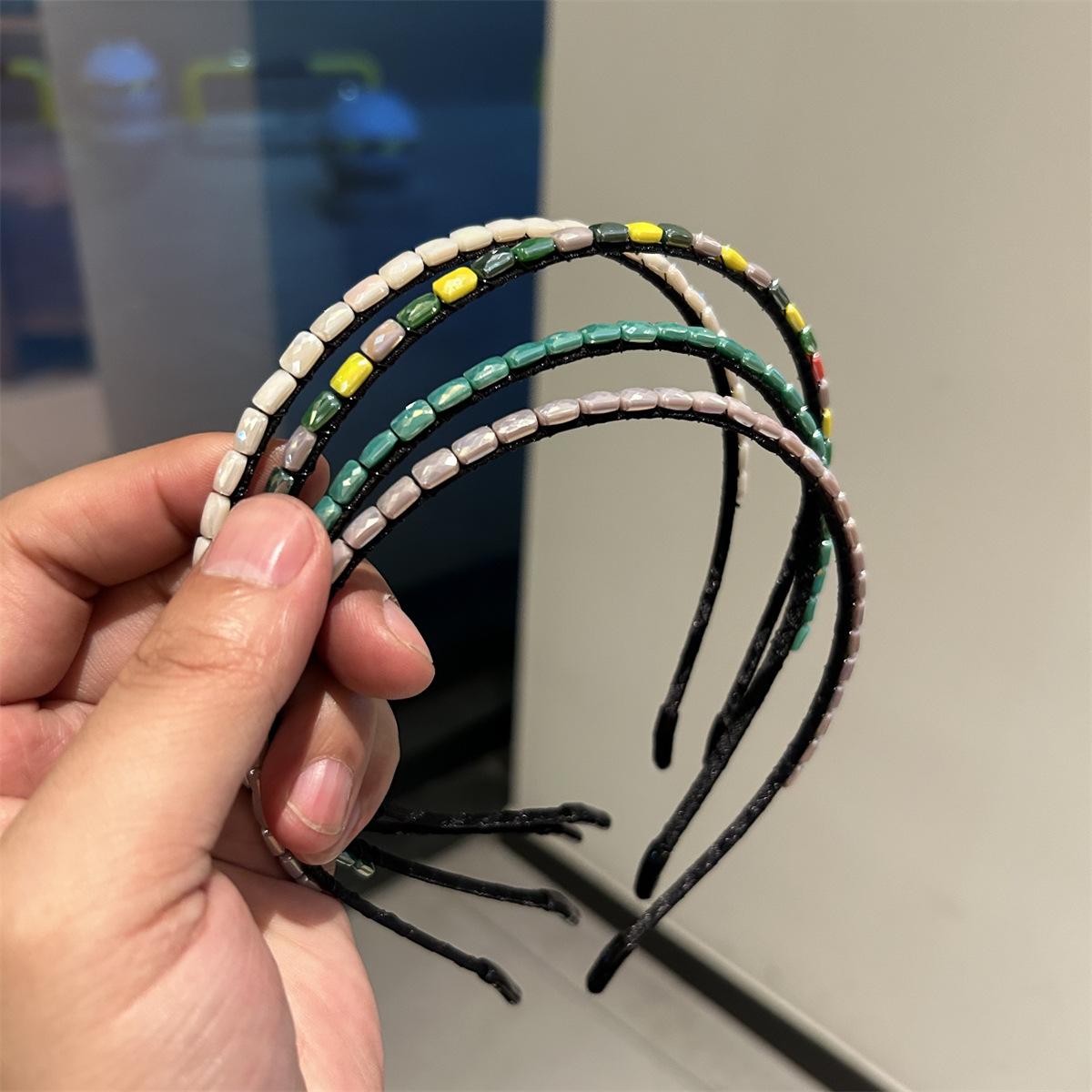 Aro para cabello fino de nuevo color estilo coreano, sentido de alta gama, nuevo aro para cabello de mujer, hecho a mano con hilo de pescar enrollado, accesorios para el cabello con piedras preciosas, pinzas para el cabello