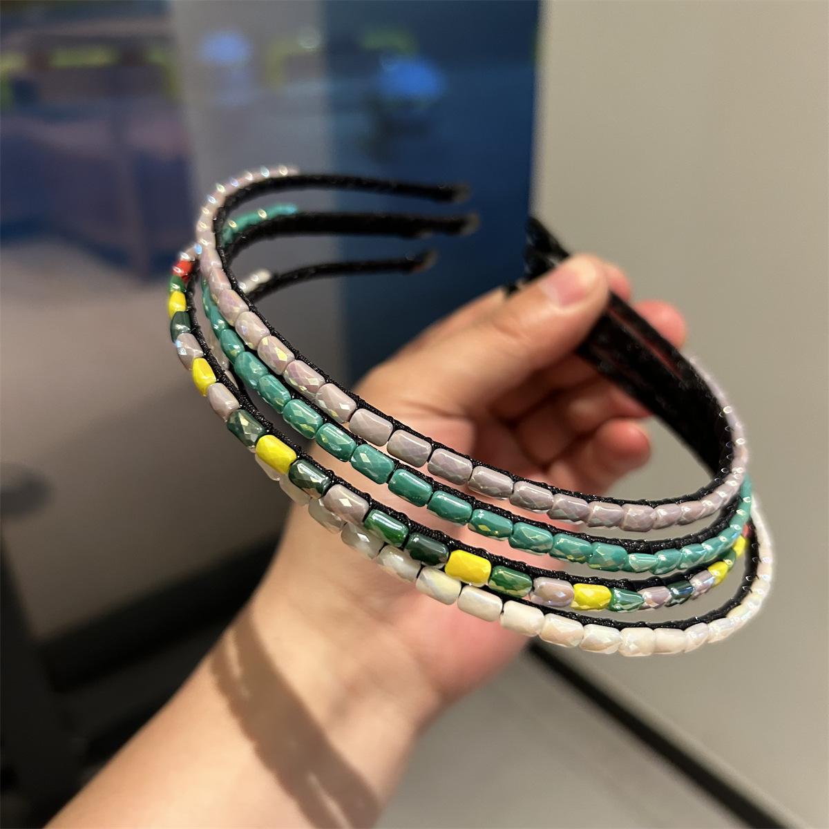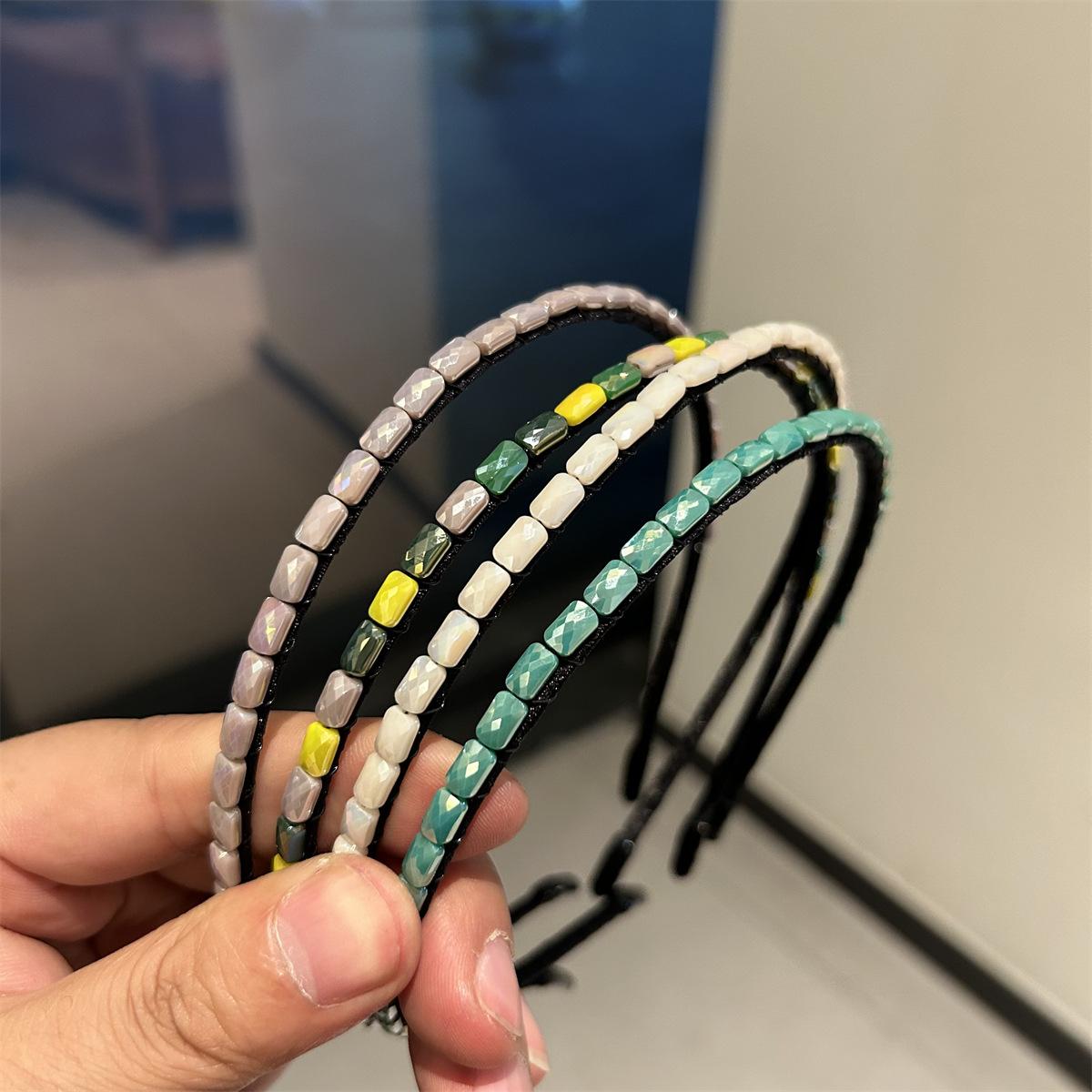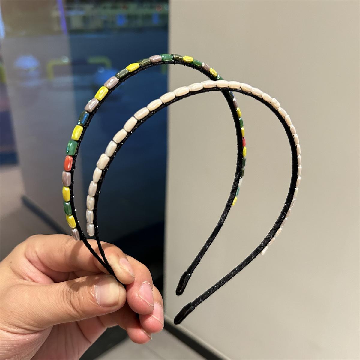 Aro para cabello fino de nuevo color estilo coreano, sentido de alta gama, nuevo aro para cabello de mujer, hecho a mano con hilo de pescar enrollado, accesorios para el cabello con piedras preciosas, pinzas para el cabello