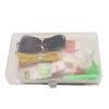 Nombre: Cordón elástico negro (aproximadamente 3 metros), cordón elástico amarillo (aproximadamente 3 metros), cordón elástico marrón (aproximadamente 3 metros), cordón elástico transparente (aproximadamente 5 metros), alambre de acero, cinta métrica, calibrador vernier, tijeras, pinzas, 3 ganchillos, aguja para enhebrar, ganchillo superfino, 3 máquinas para abalorios, lima para expansión de agujeros, punzón, ganchillo grande, caja de almacenamiento