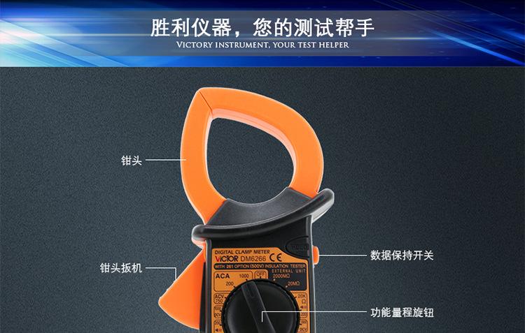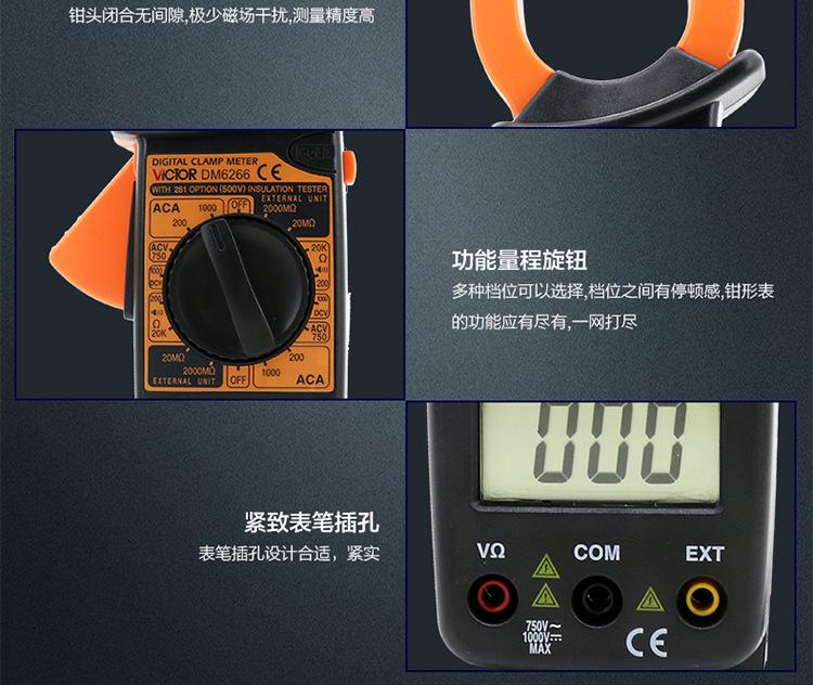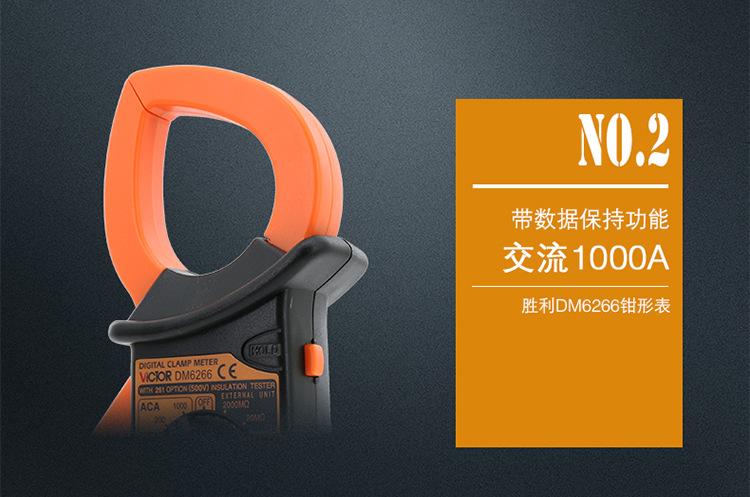 Multímetro de pinza amperimétrica digital Victory DM6266 de 1000 A, medidor de pinza amperimétrica de gran capacidad
