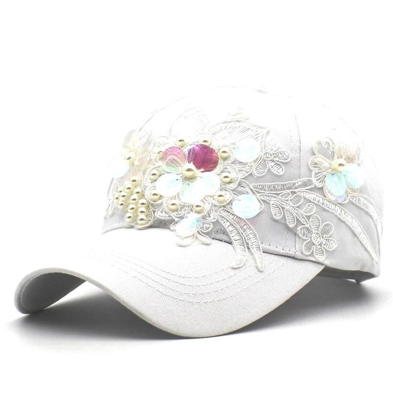 Gorra de béisbol con bordado de flores, estilo súper hada, con lentejuelas de colores, curvada, ideal para playa, viajes y actividades al aire libre.