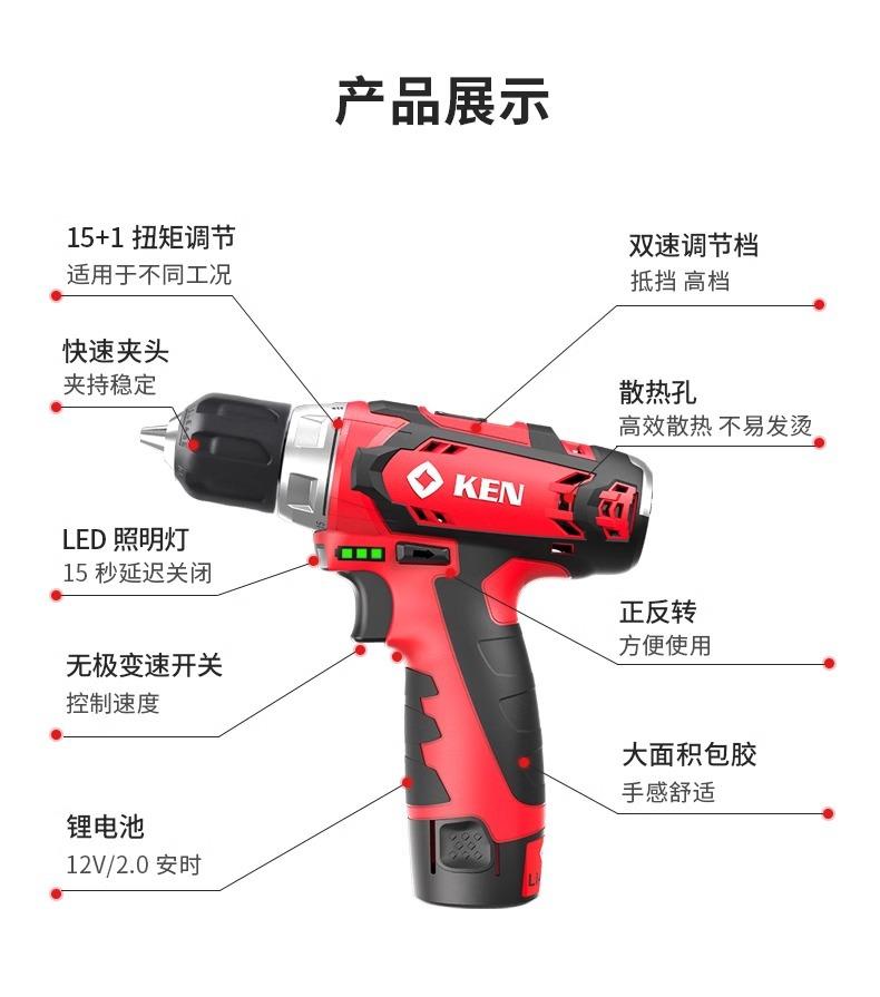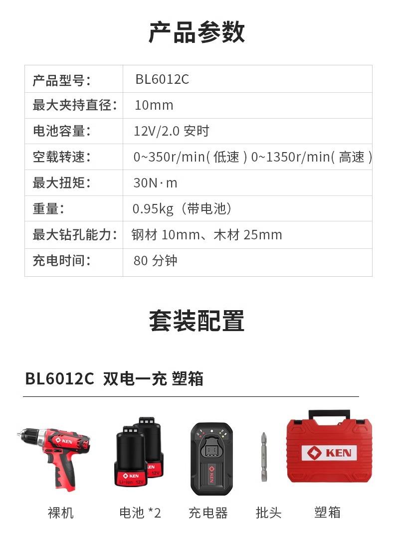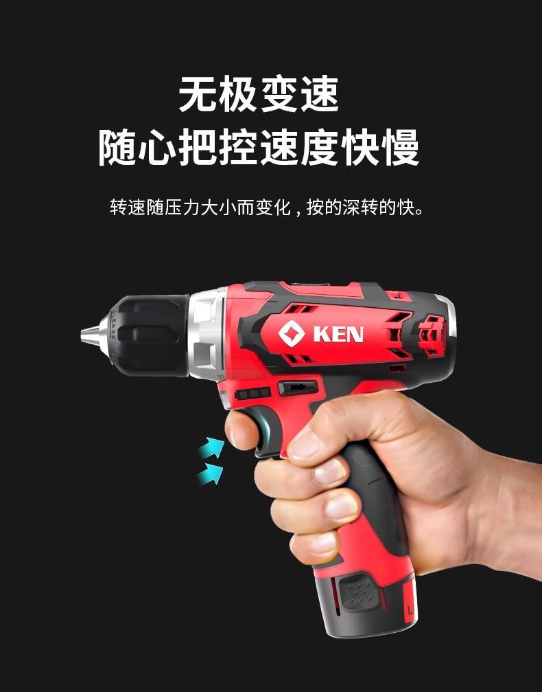 Taladro eléctrico de litio KEN Ruiqi, destornillador eléctrico recargable BL6012C, taladro de pistola pequeño, máquina atornilladora, herramienta de taladro manual recargable