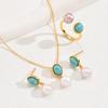 Pendientes retro artísticos sencillos, collar, anillo, traje, pendientes de perlas con incrustaciones de nicho, joyería de anillo que combina con todo