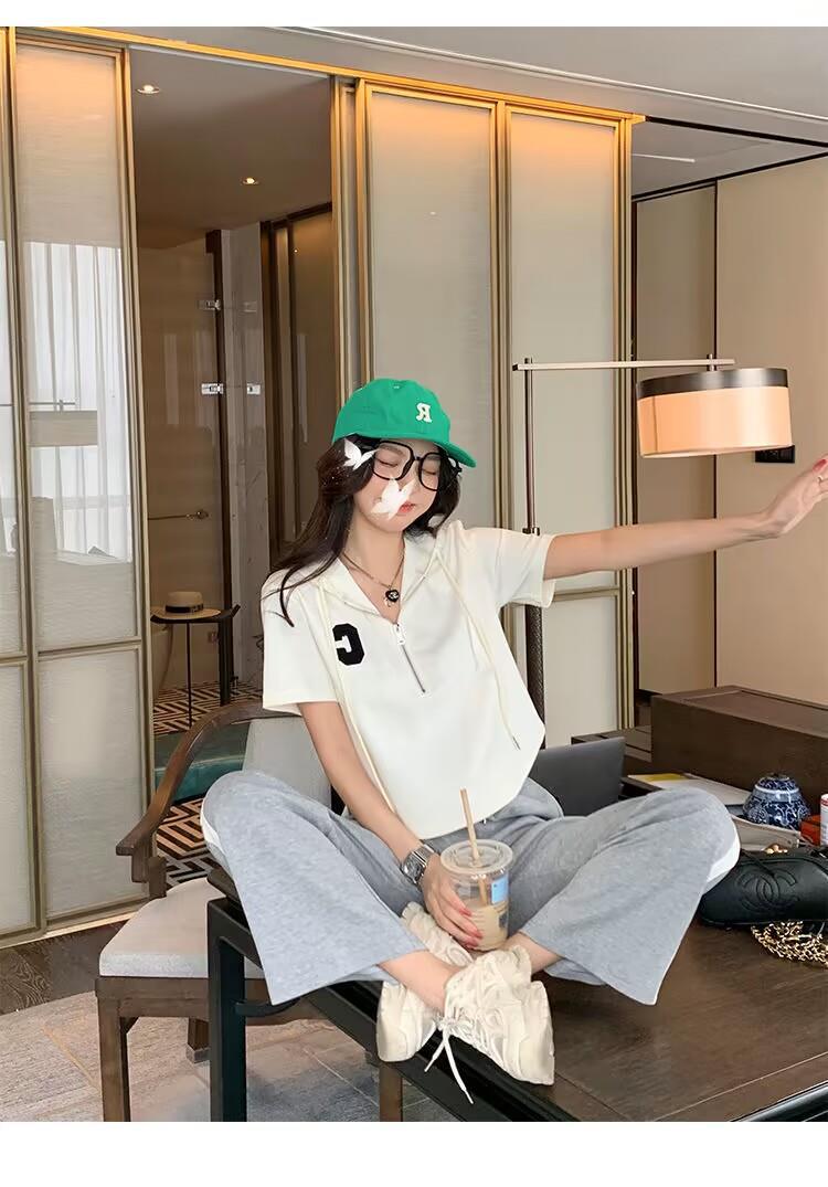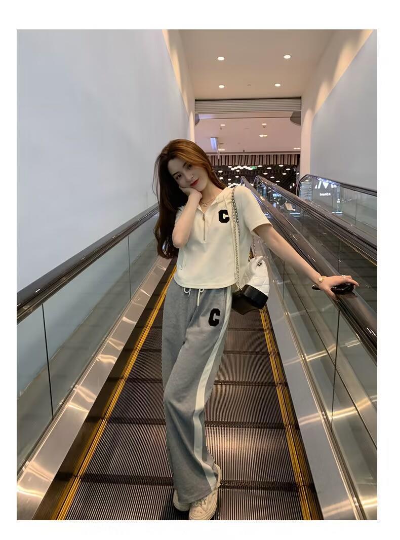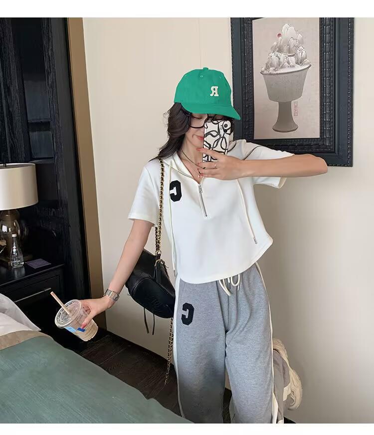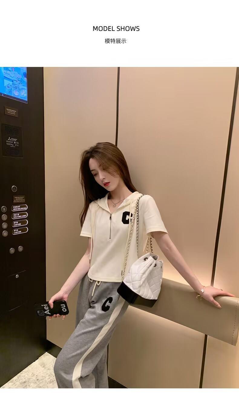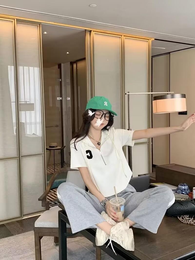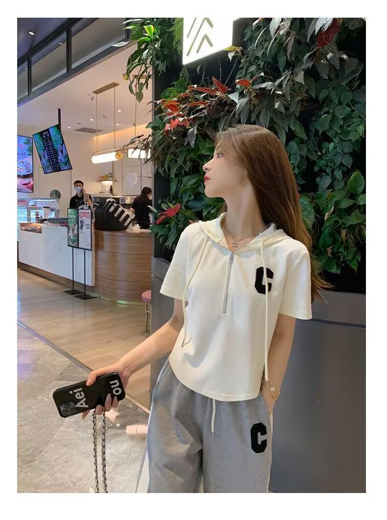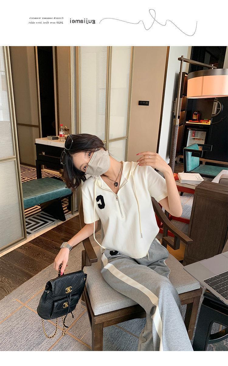 Traje deportivo informal para mujer, verano 2023, estilo coreano, nueva moda, talla grande, holgado, con capucha, manga corta, conjunto de dos piezas