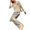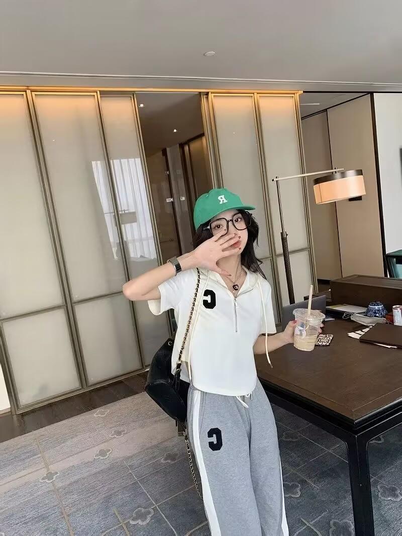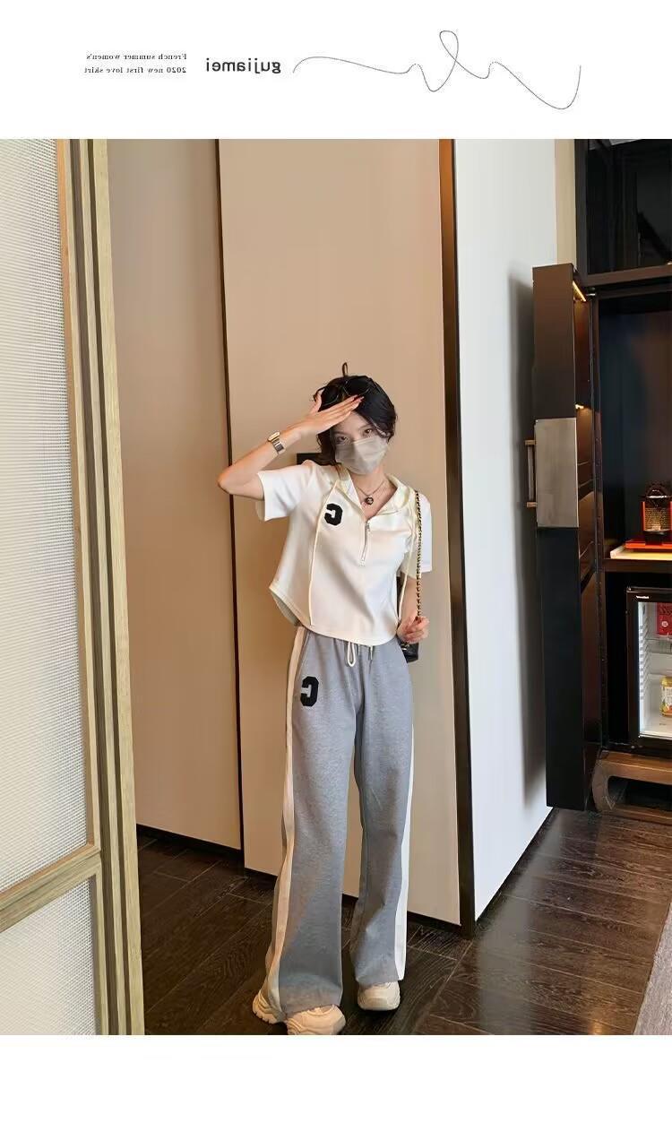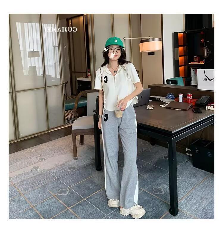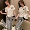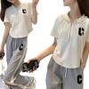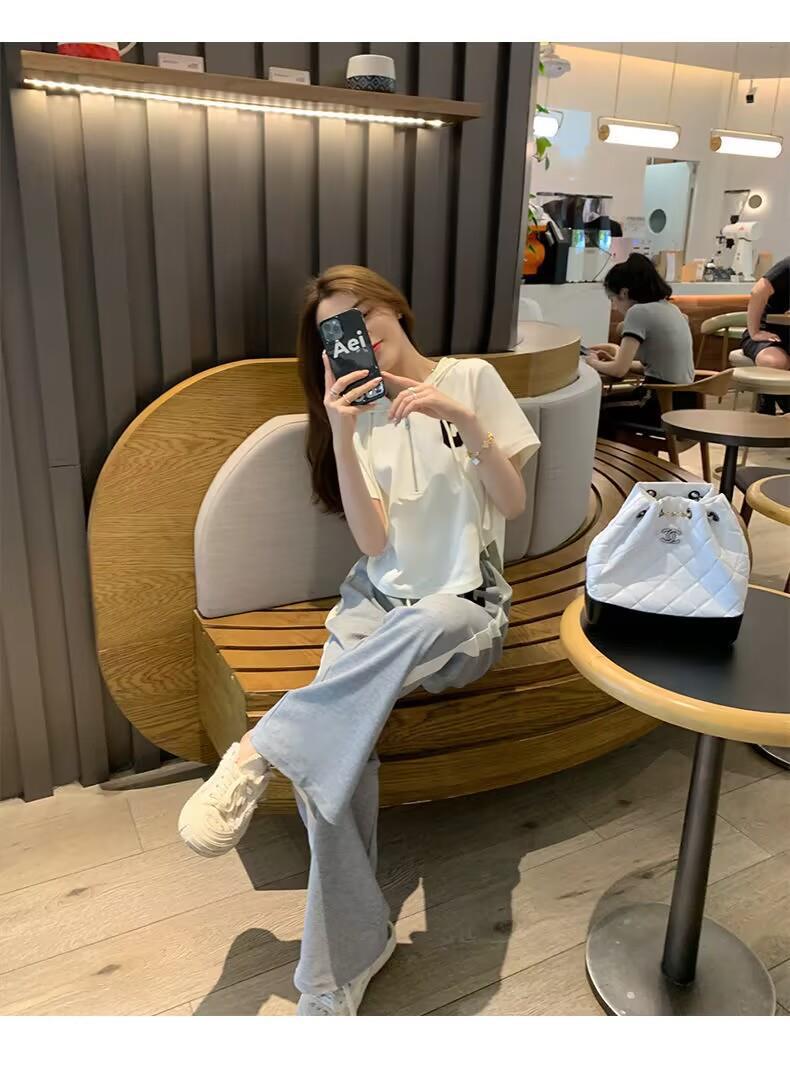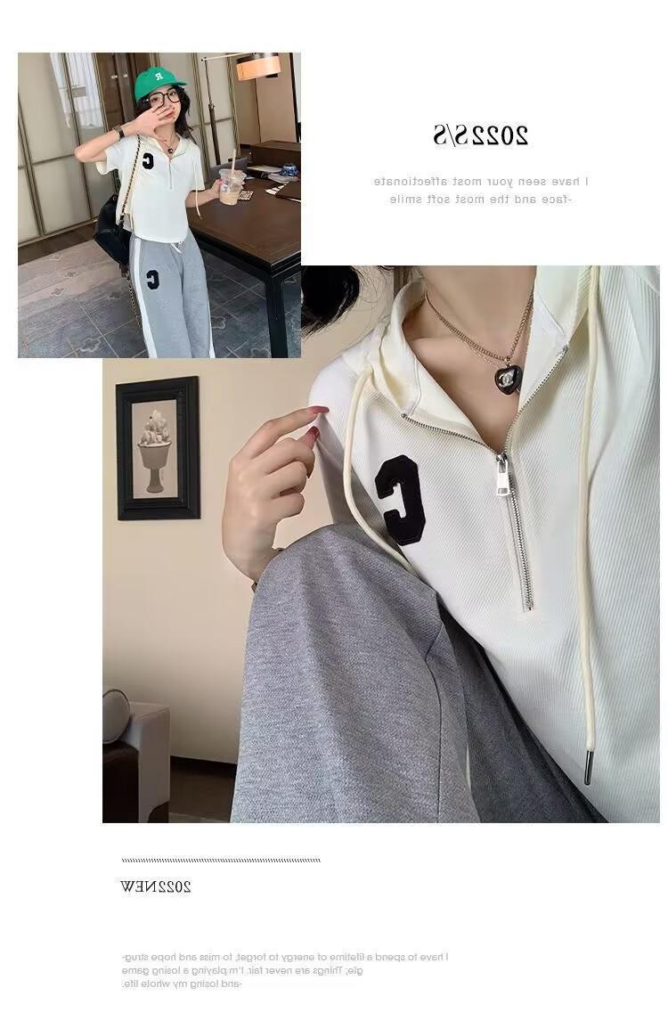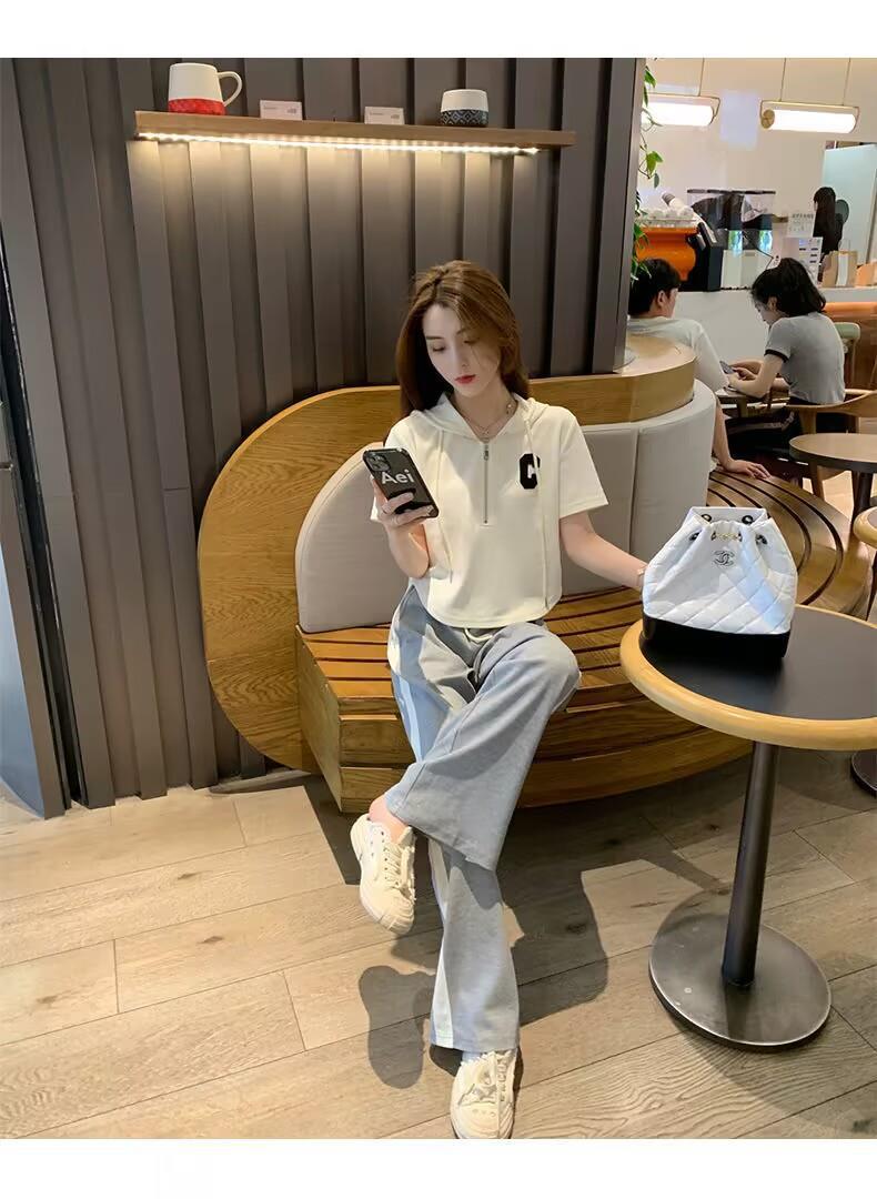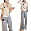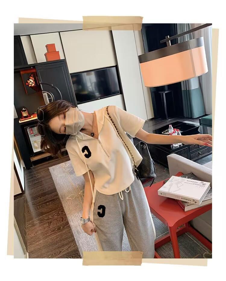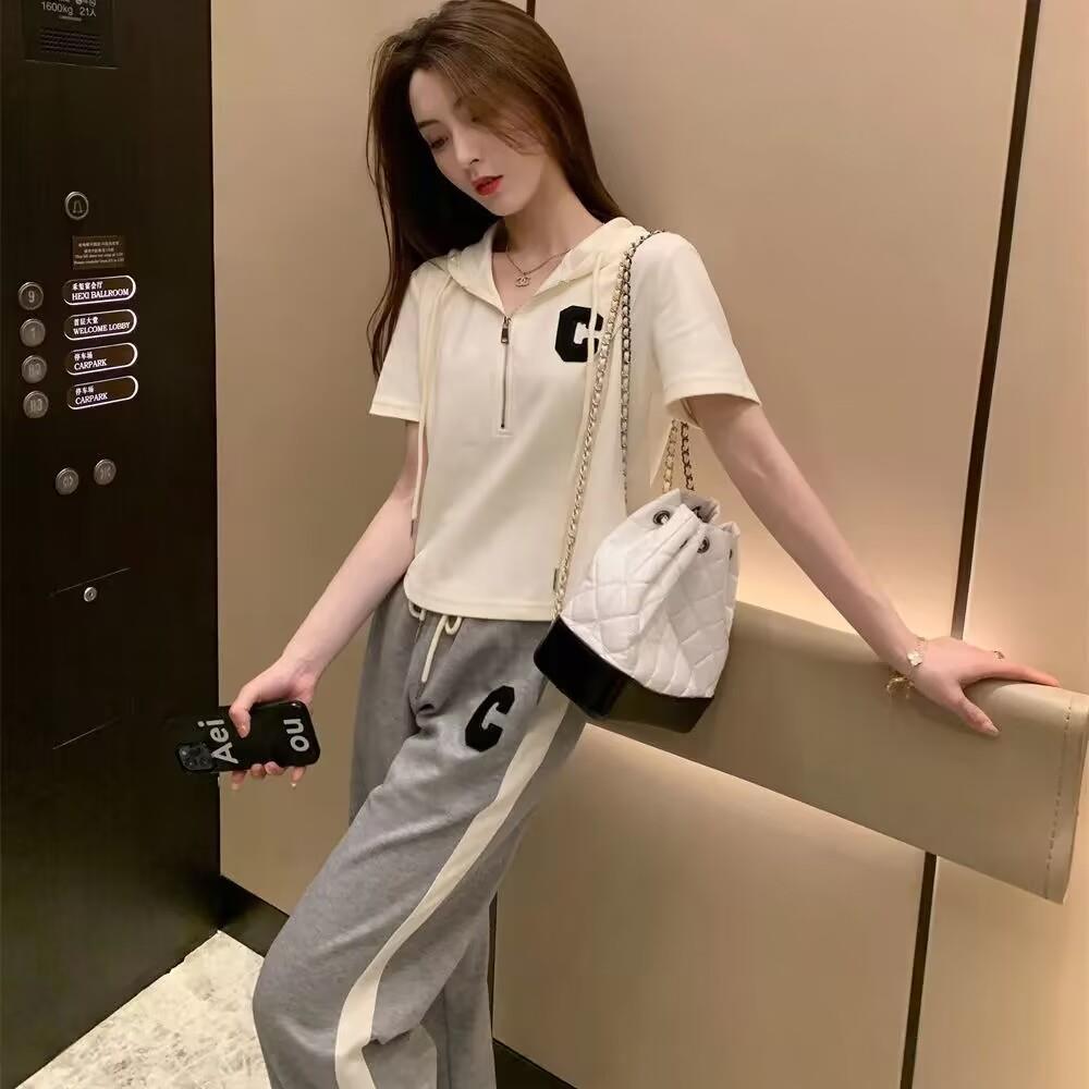 Traje deportivo informal para mujer, verano 2023, estilo coreano, nueva moda, talla grande, holgado, con capucha, manga corta, conjunto de dos piezas