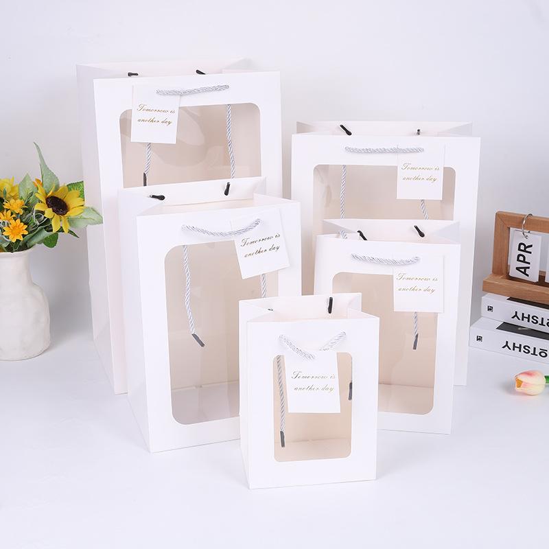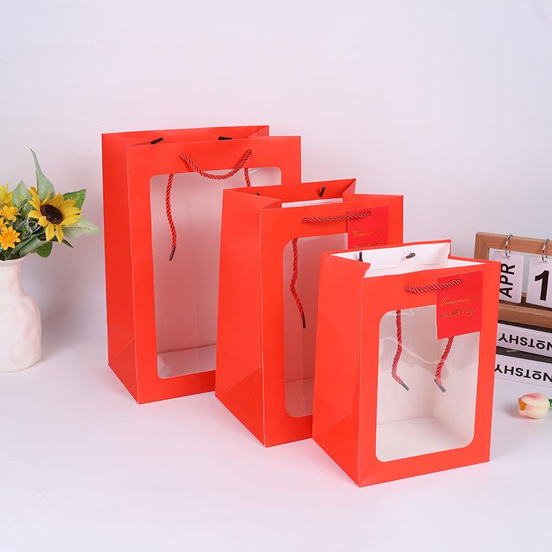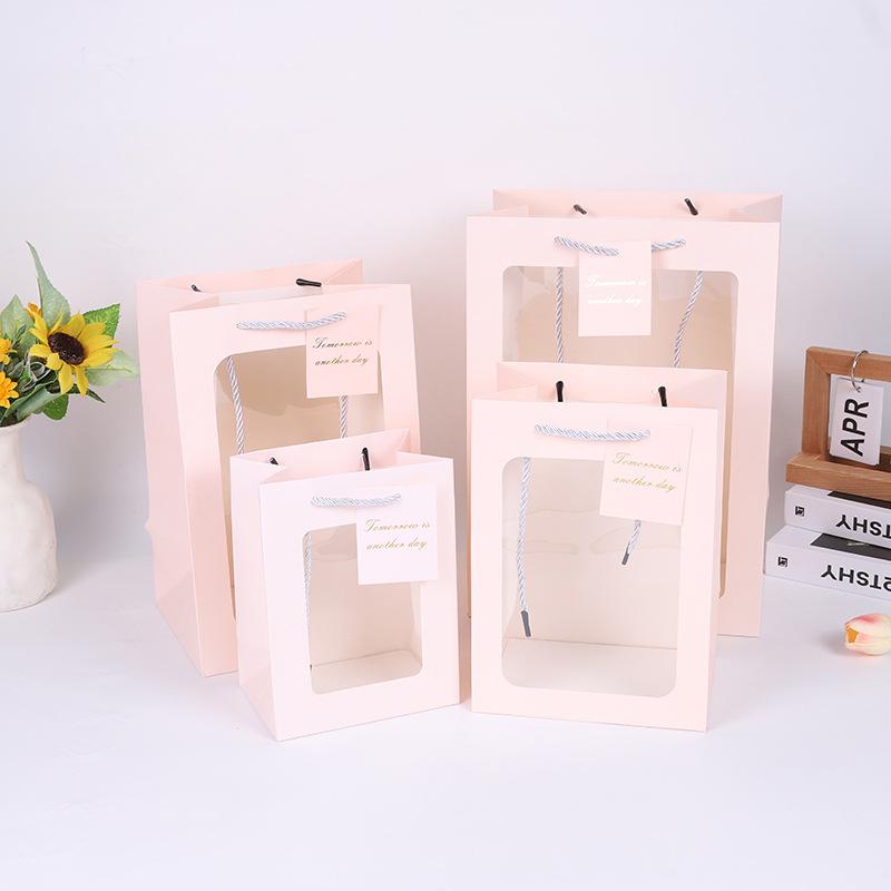 Bolsa con Ventana Transparente, Ramo de Flores Portátil, Bolsa de Regalo con Ventana, Bolsa de Regalo para el Día de San Valentín, Bolso de Mano, Bolsa de Regalo