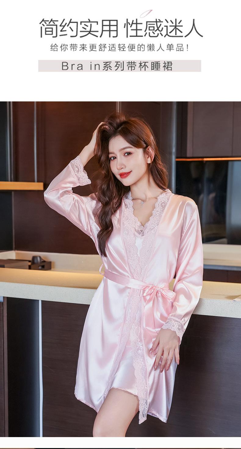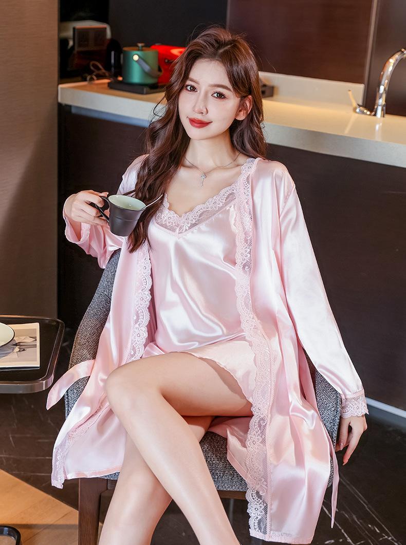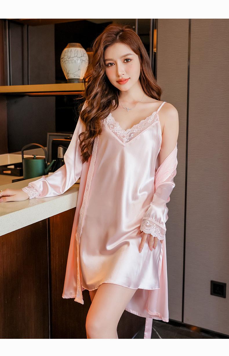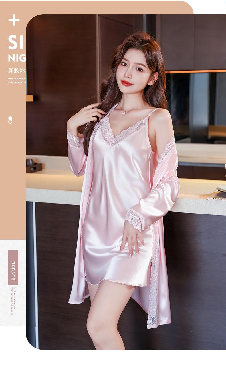 Camisón de seda sintética para mujer, conjunto de camisón sexy con tirantes, pijama de seda helada de verano, vestido de novia para la mañana, ropa sexy para el hogar