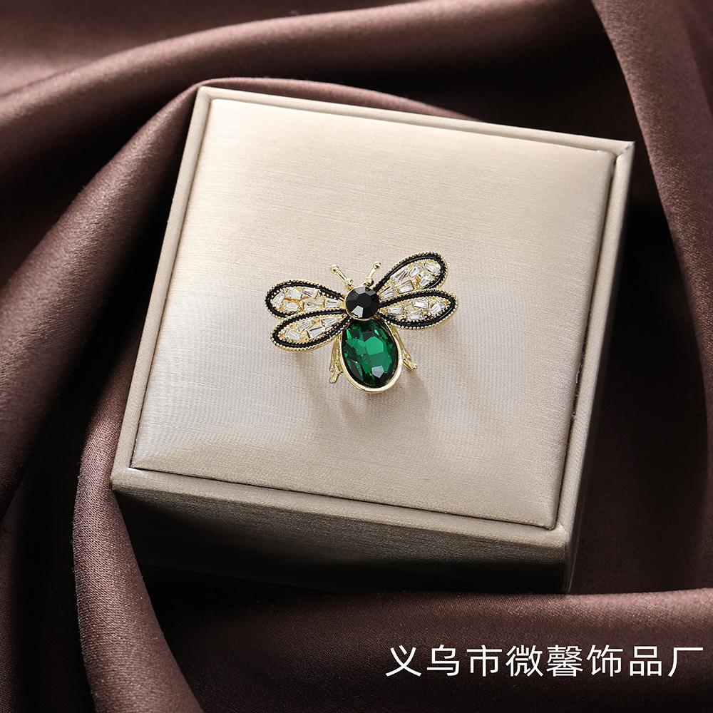 Elegante broche de abeja de moda, lujoso broche de ramillete de alta gama con diamantes de imitación, broche de alfiler antiexposición para abrigos y trajes de moda.