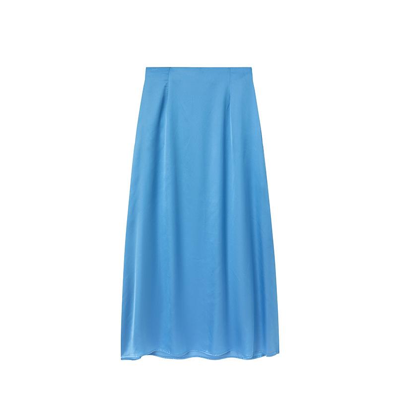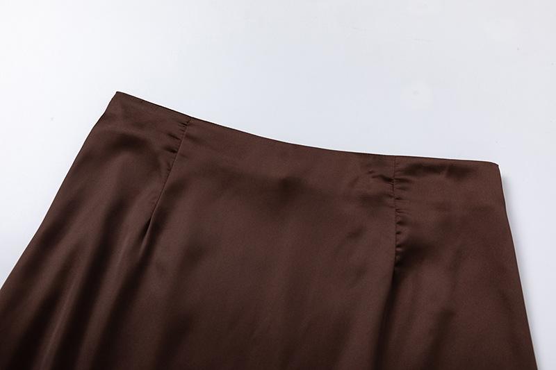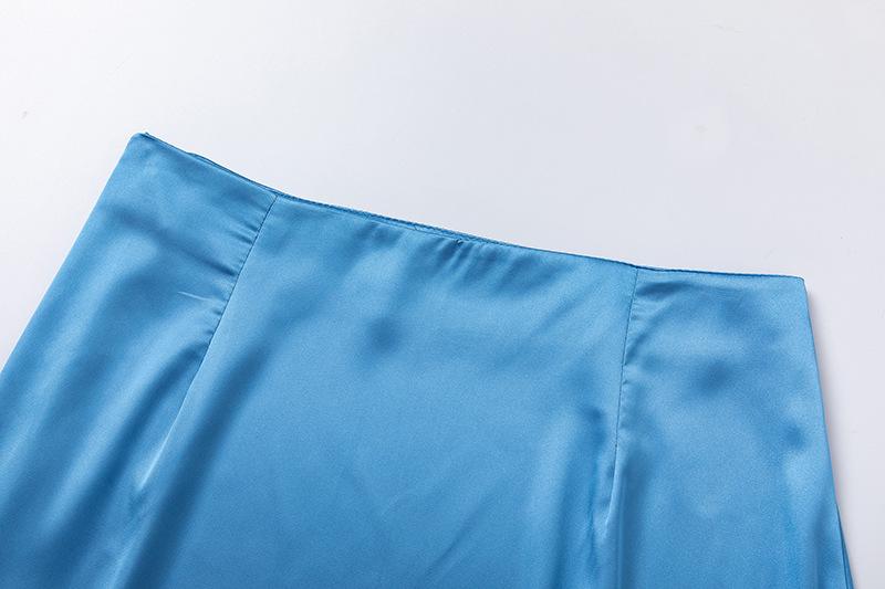 Falda de satén de seda para mujer, estilo europeo y americano, informal, con corte en la cadera, primavera y verano de 2024