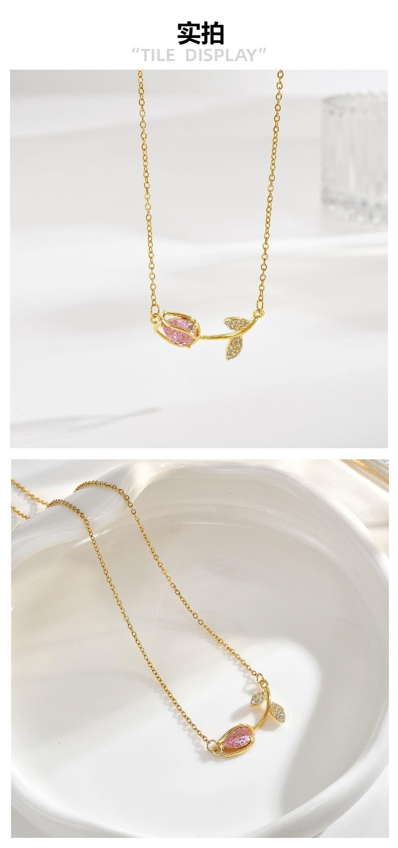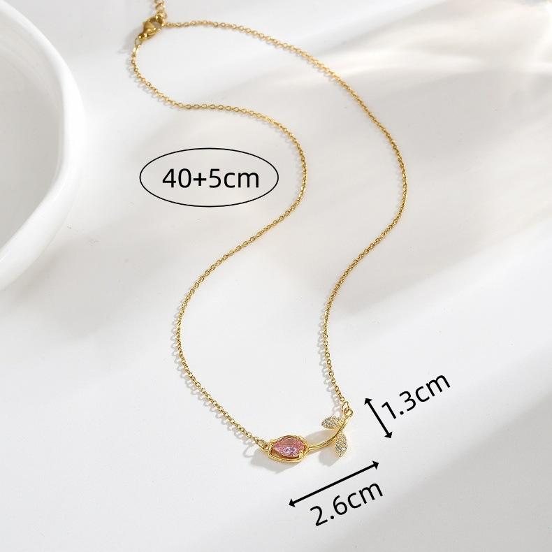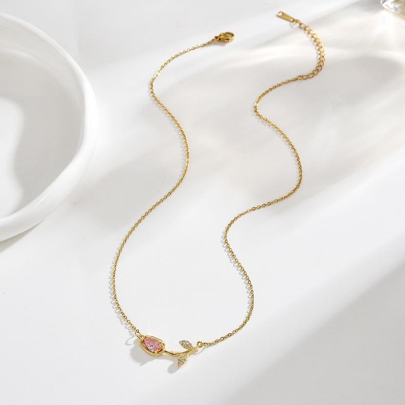 Collar de cadena de clavícula de acero de titanio resistente a la decoloración con forma de rosa rosa para mujer, diseño de nicho de lujo ligero, joyería a juego Yiwu Wholesale
