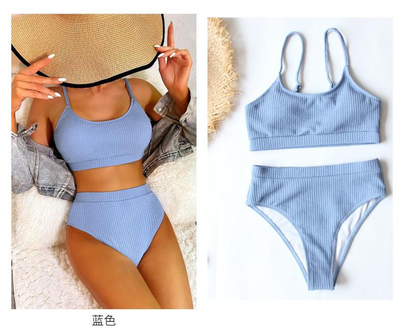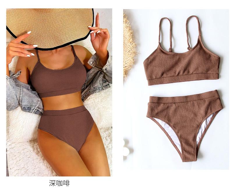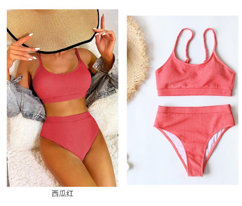2023 Nuevo bikini de color europeo y americano a juego, traje de baño de comercio exterior, traje de baño dividido sexy para mujer