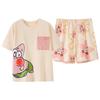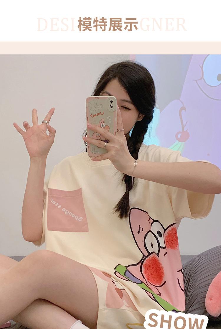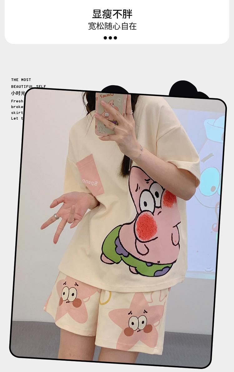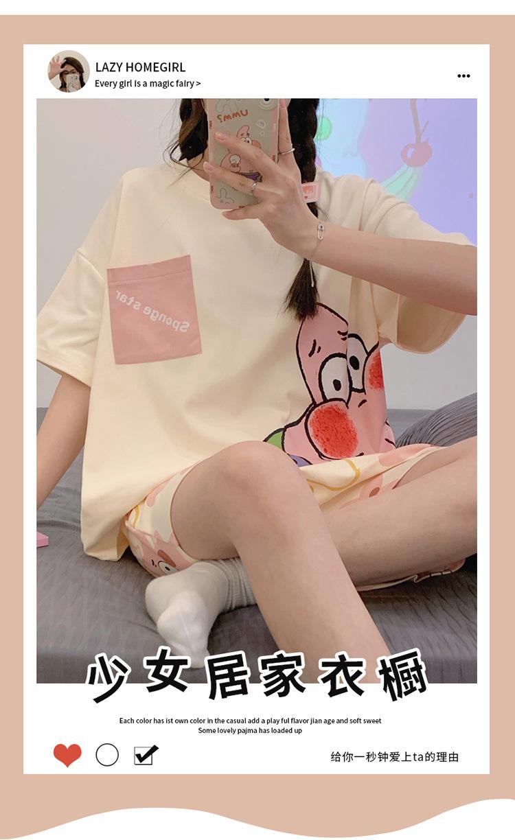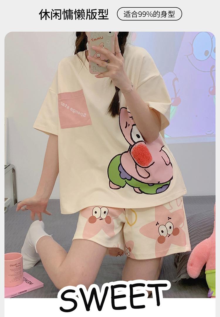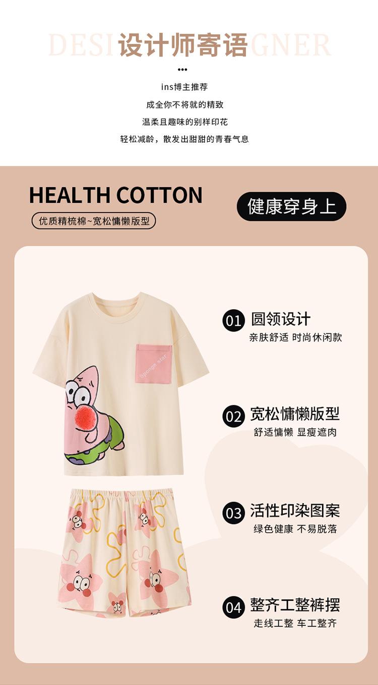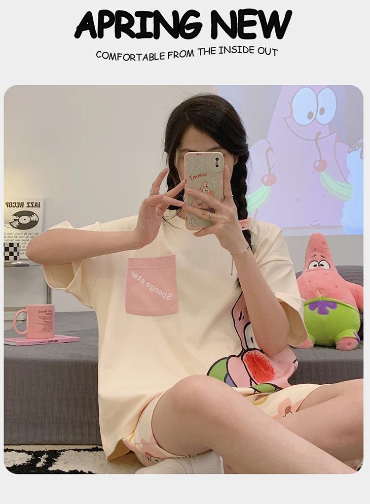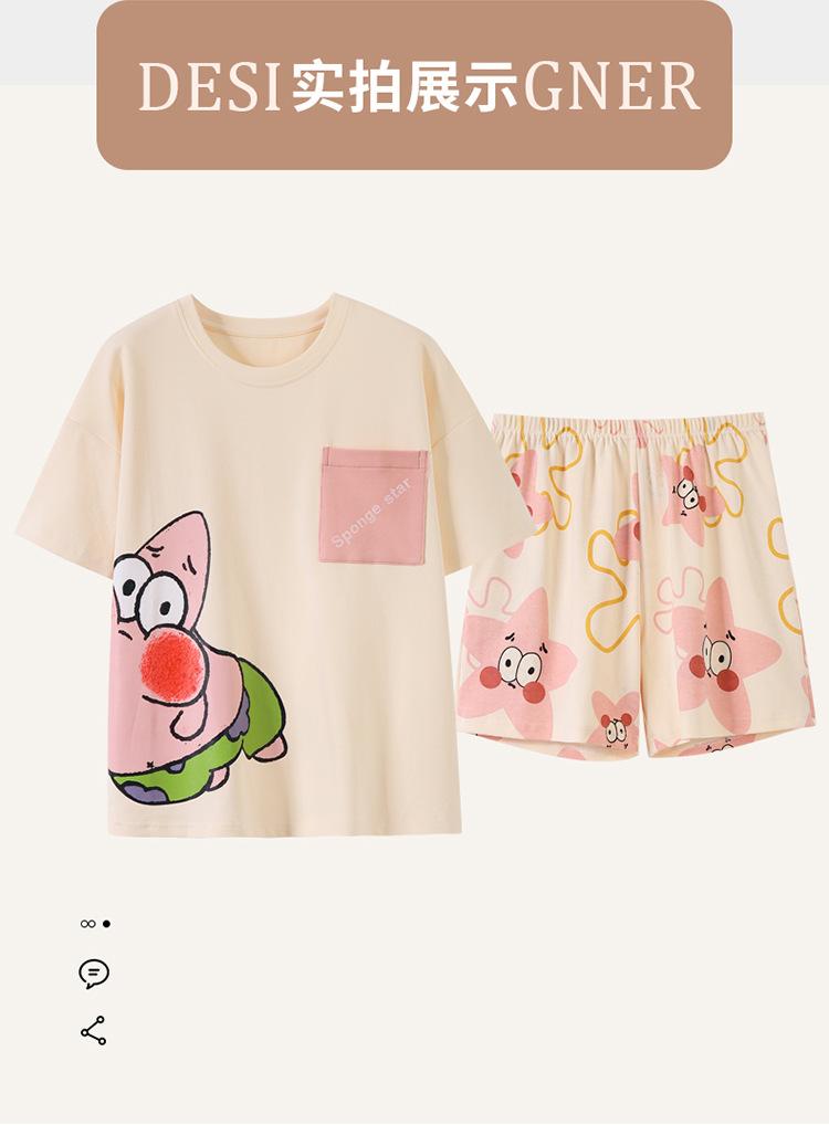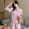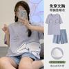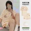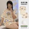 Pijamas al por mayor con almohadilla para el pecho para mujer, de algodón de verano, de manga corta, con bonitos dibujos animados, finos, para exteriores, para el hogar.