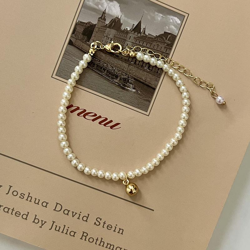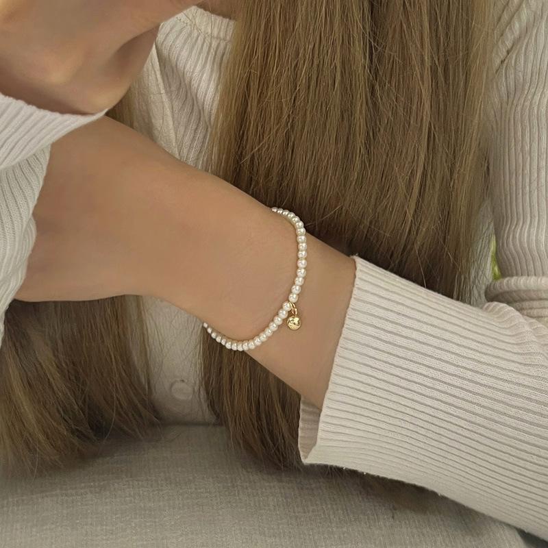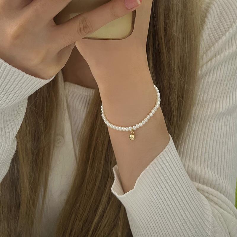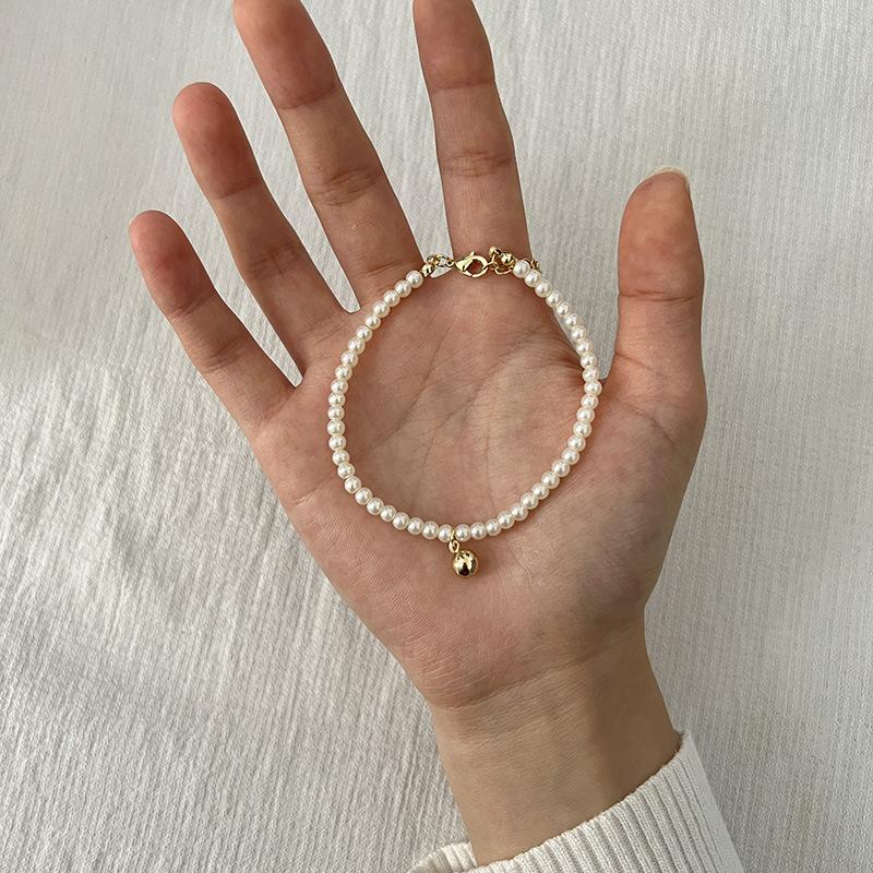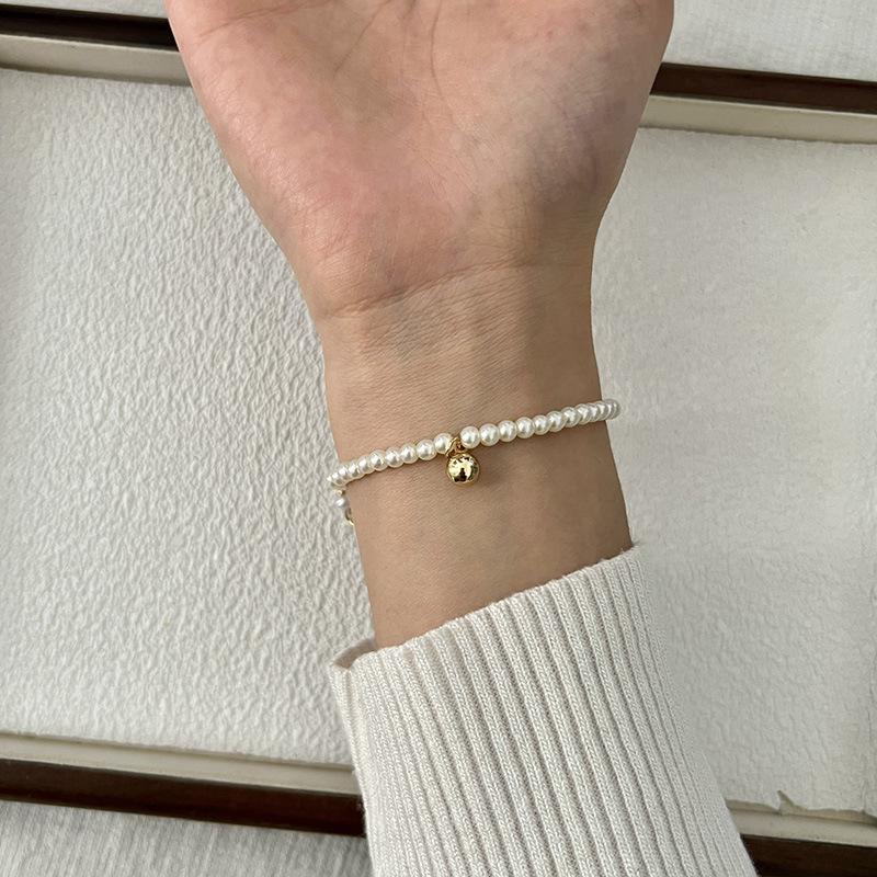 Pulsera Exquisita de Perlas Pequeñas de Frijol Dorado Estilo Francés para Mujer Diseño Nicho de Alta Gama Pulsera para Novia Popular en Internet Joyería Trendy Ins