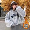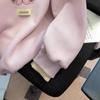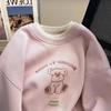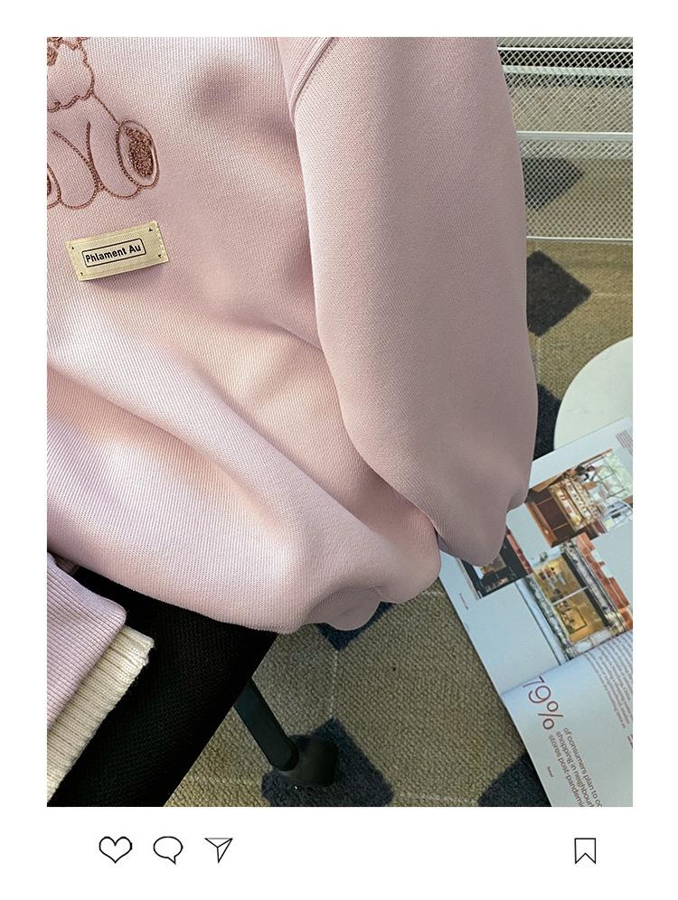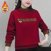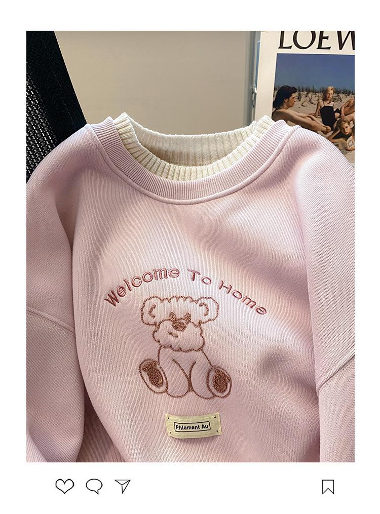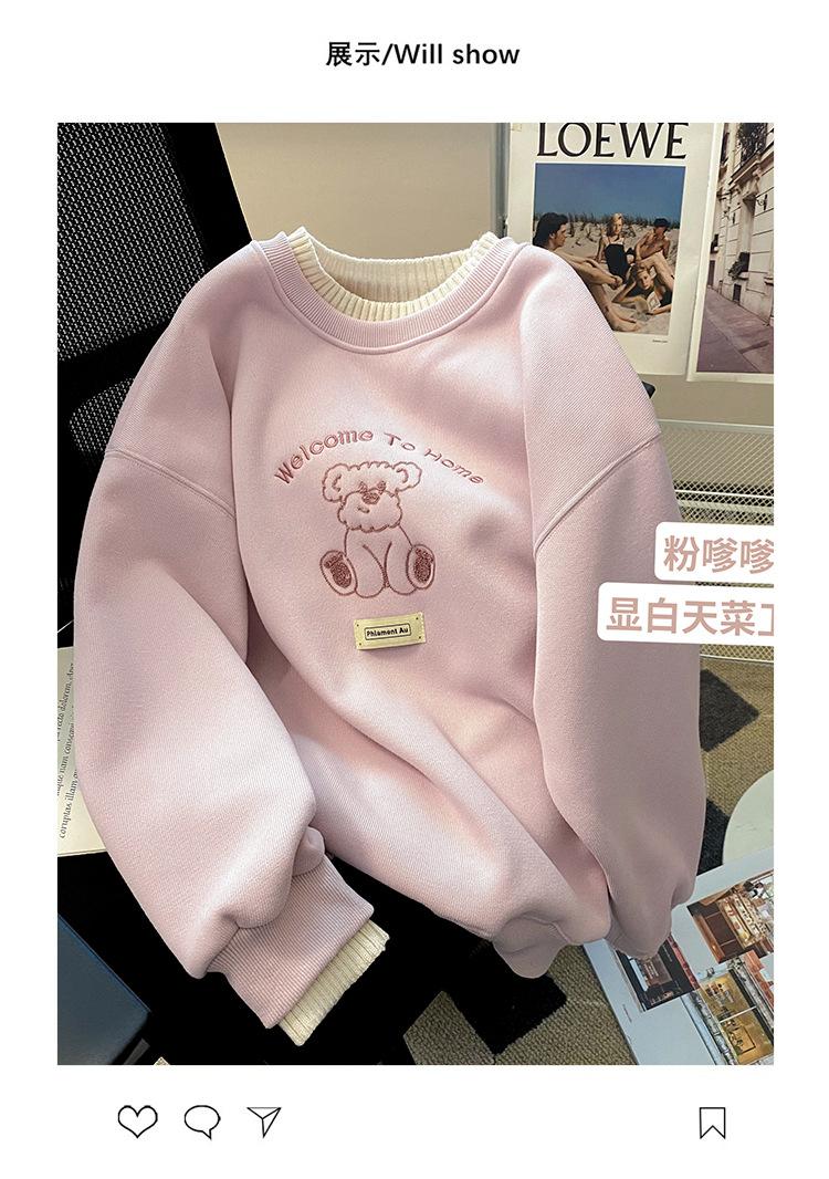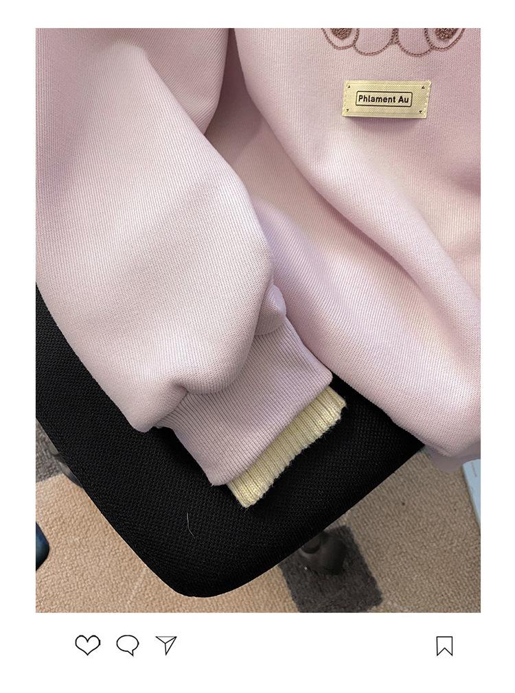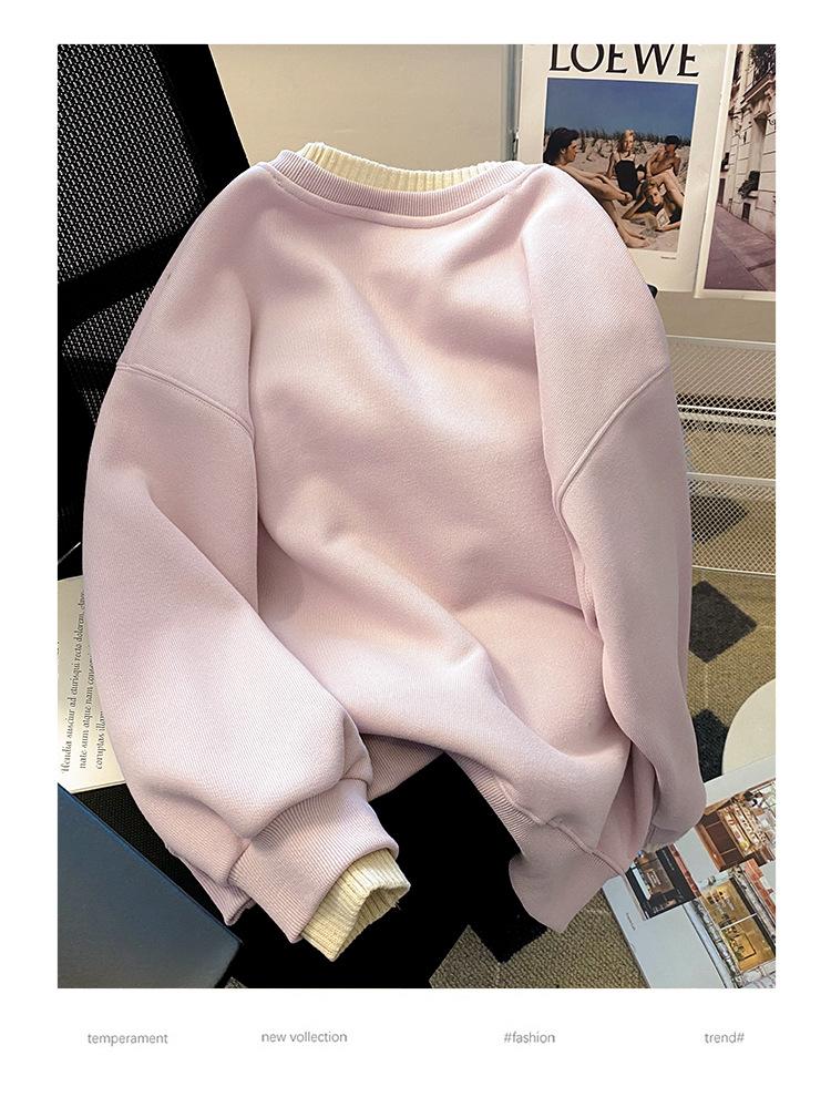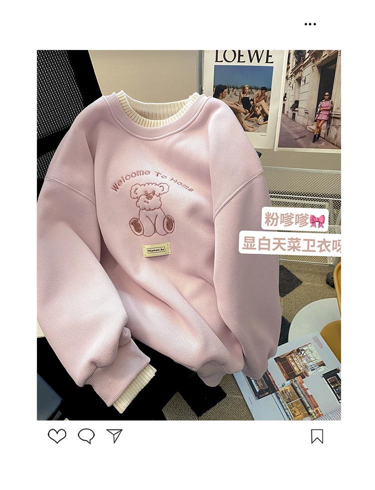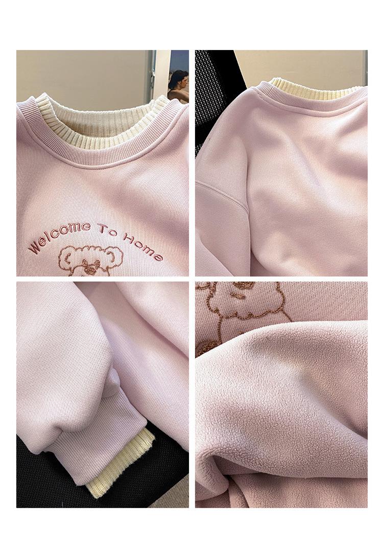 Sudadera de cuello redondo bordada con dibujos animados de dos piezas falsas para mujer, gruesa con forro polar, abrigo pequeño suelto para otoño e invierno 2024