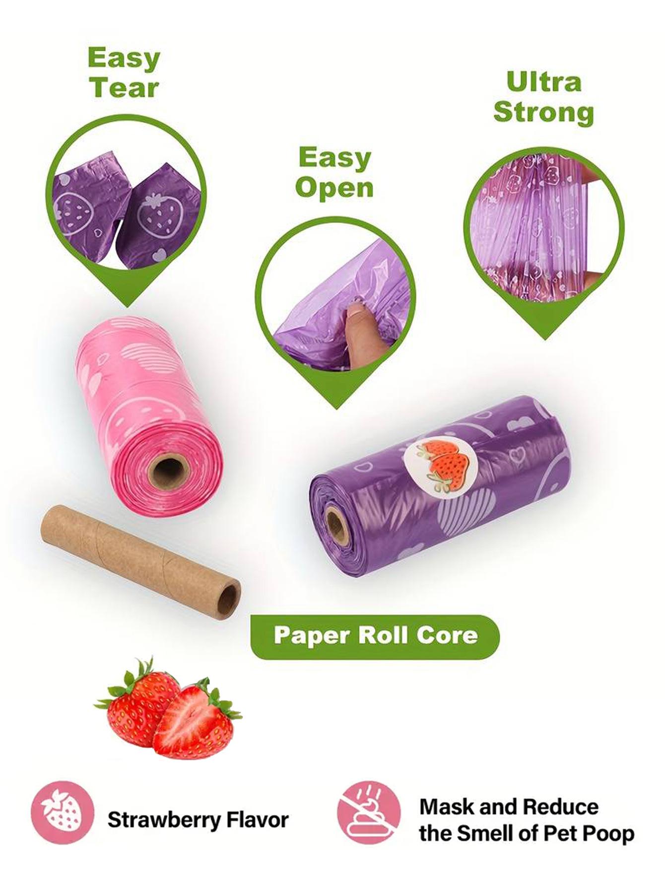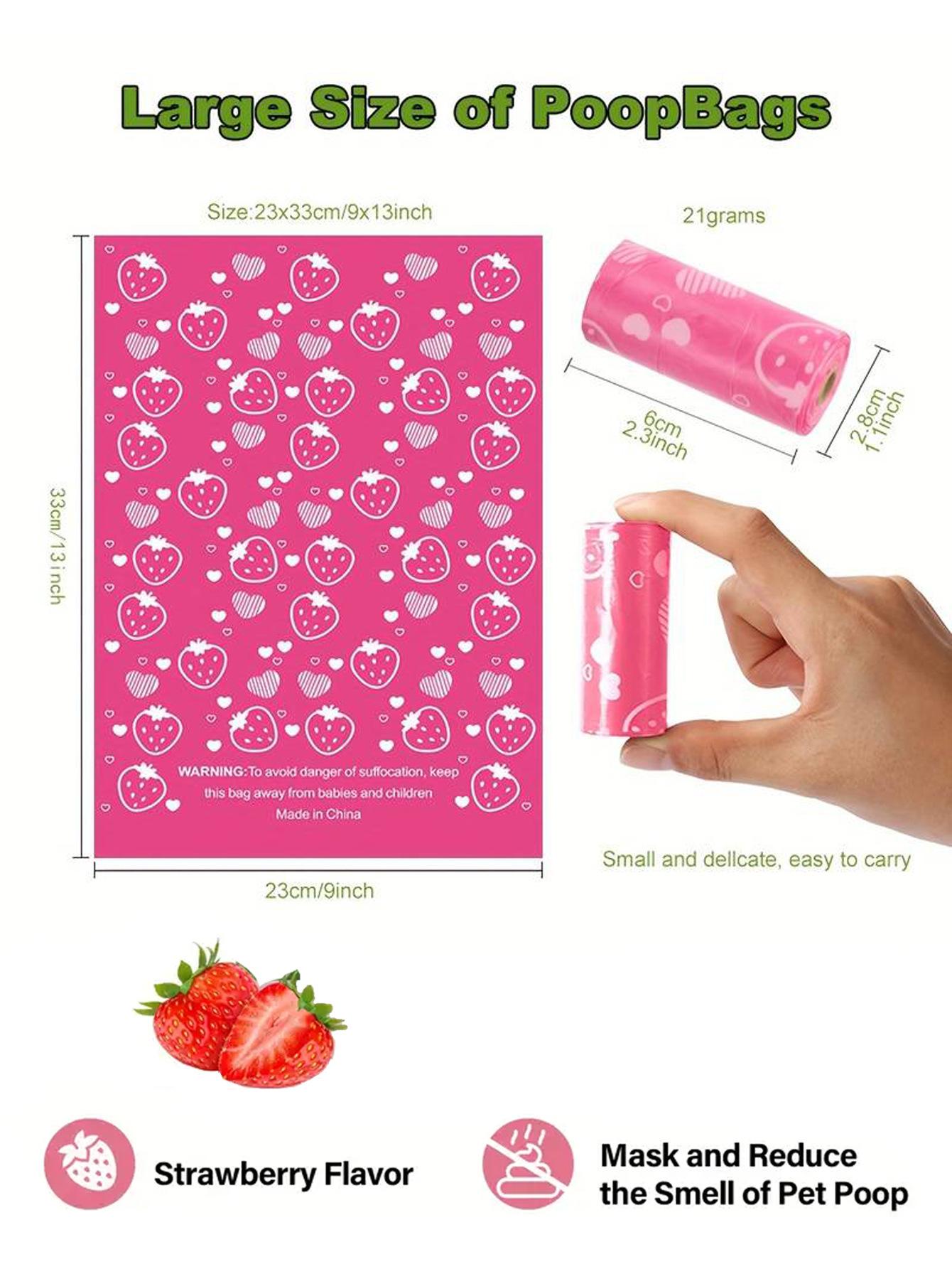 Bolsa de basura degradable para mascotas, bolsa para excrementos de mascotas, bolsa para excrementos de mascotas con dispensador, estampado de fresas