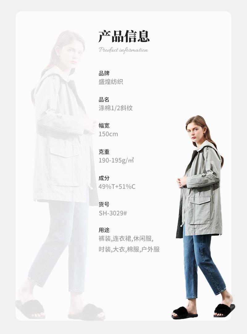 Tejido cortavientos de sarga de poliéster Tejido de sarga de poliéster y algodón 1/2 para prendas exteriores Tejido para pantalones Tejido impermeable y antiestático para chaquetas