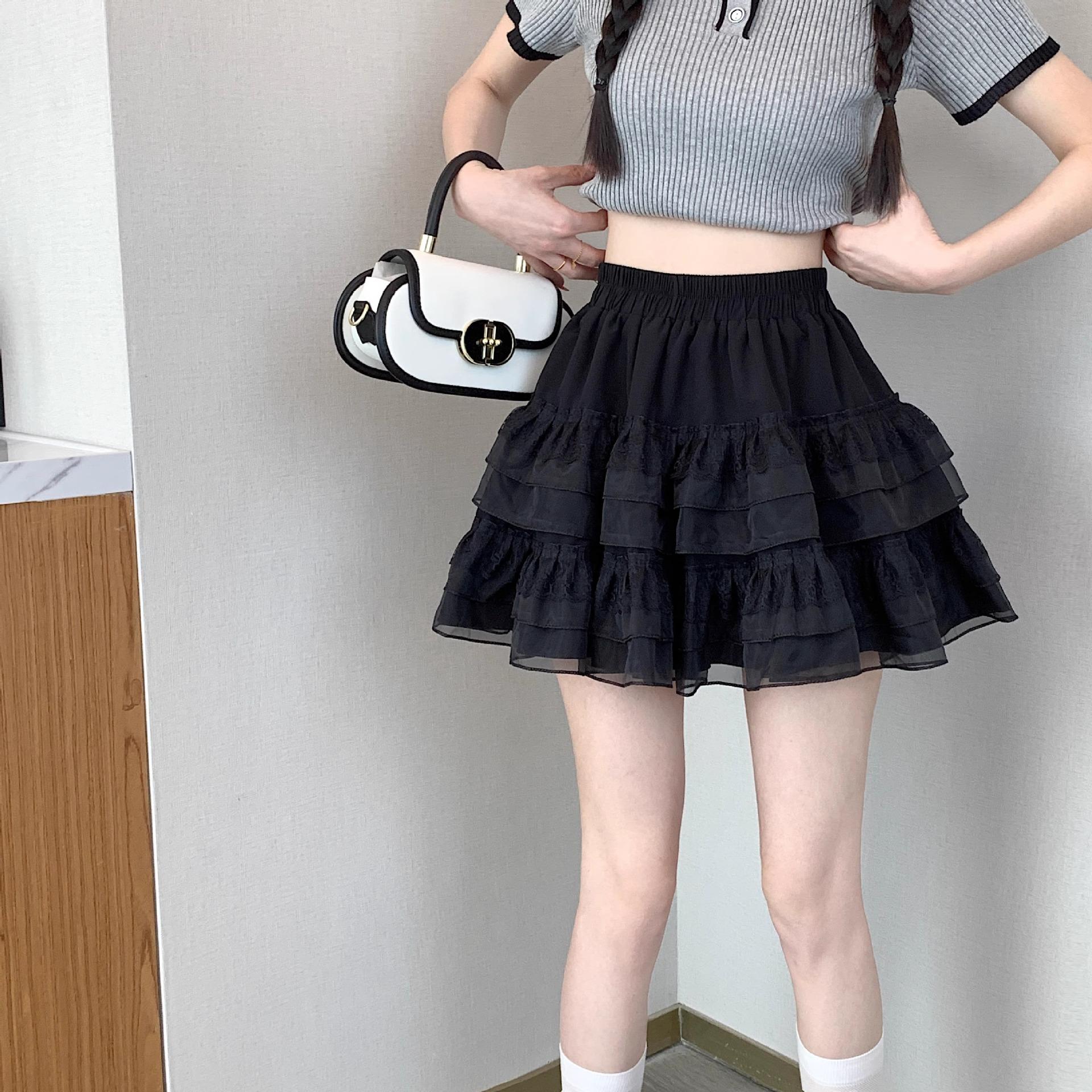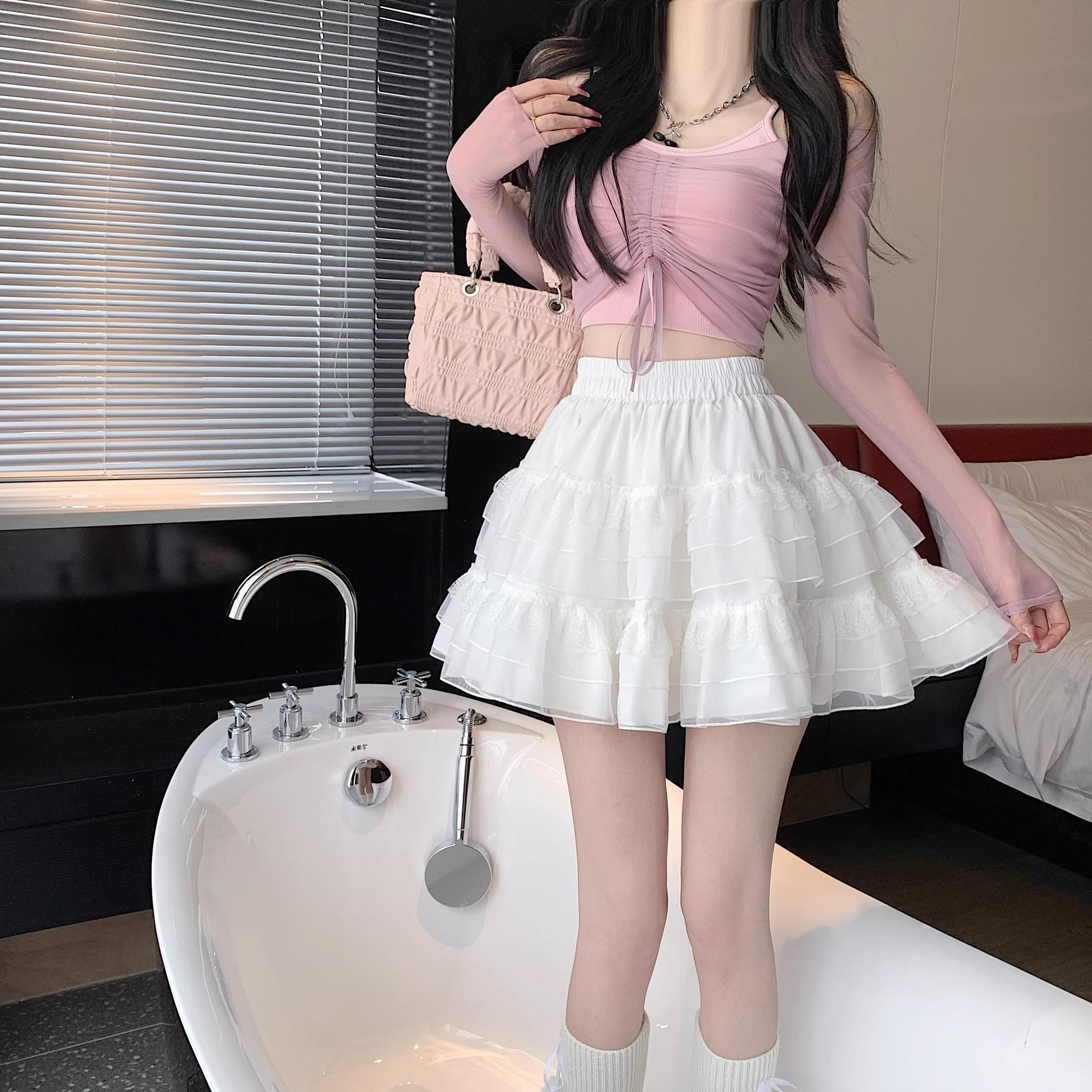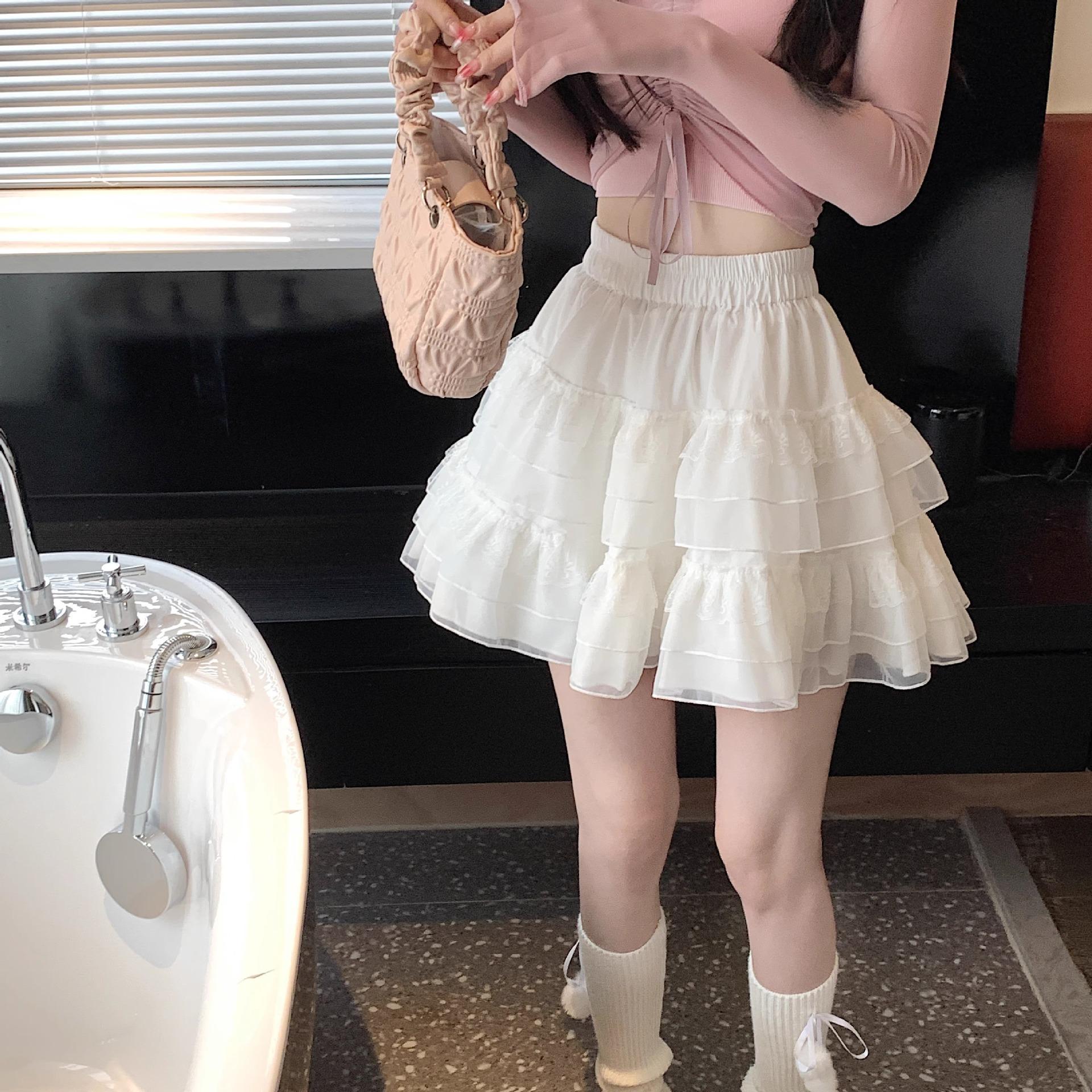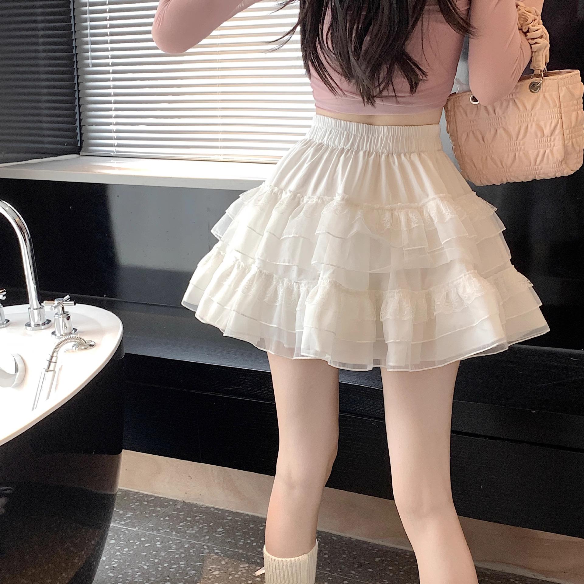Falda de cintura alta de malla abullonada para mujer, primavera y verano 2024, nueva falda corta ajustada de corte A en color blanco hada.