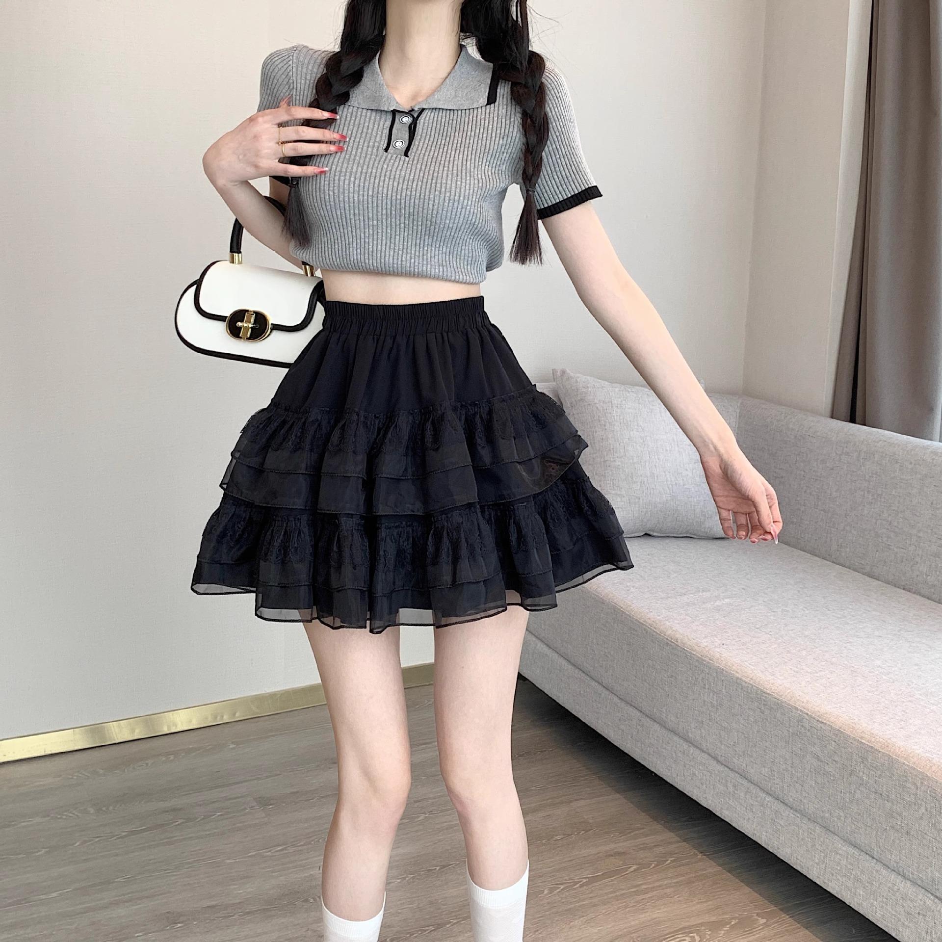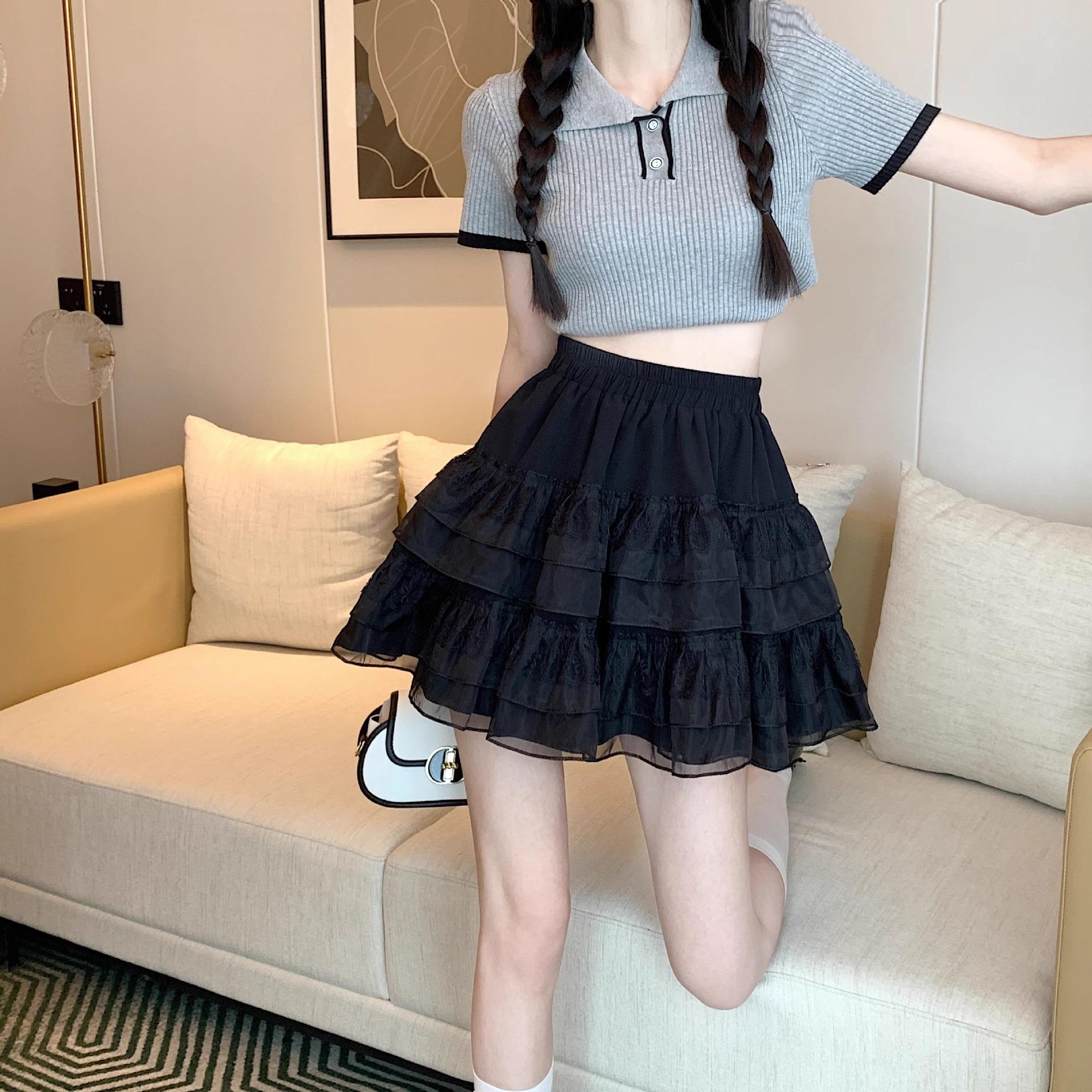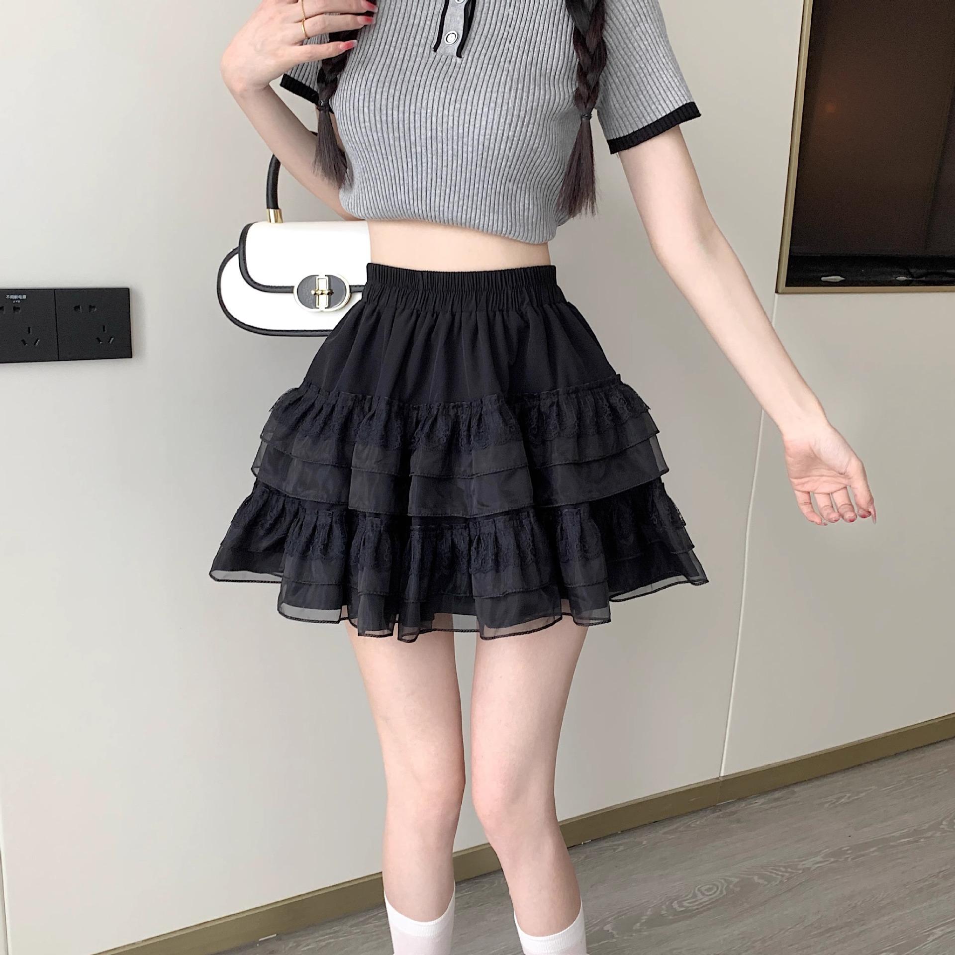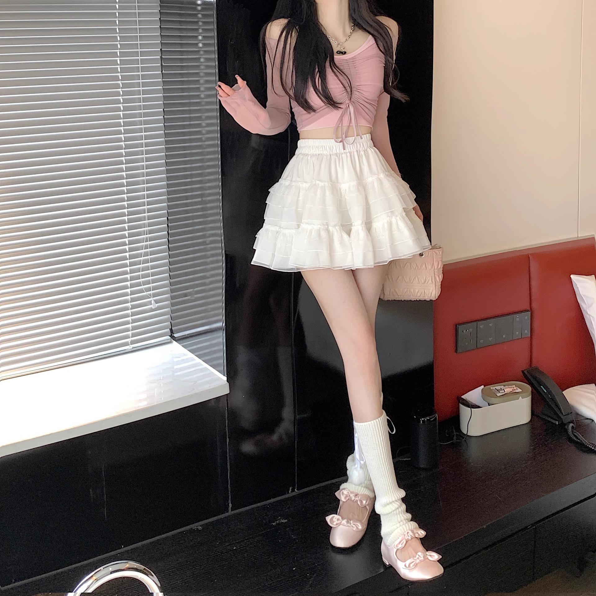Falda de cintura alta de malla abullonada para mujer, primavera y verano 2024, nueva falda corta ajustada de corte A en color blanco hada.