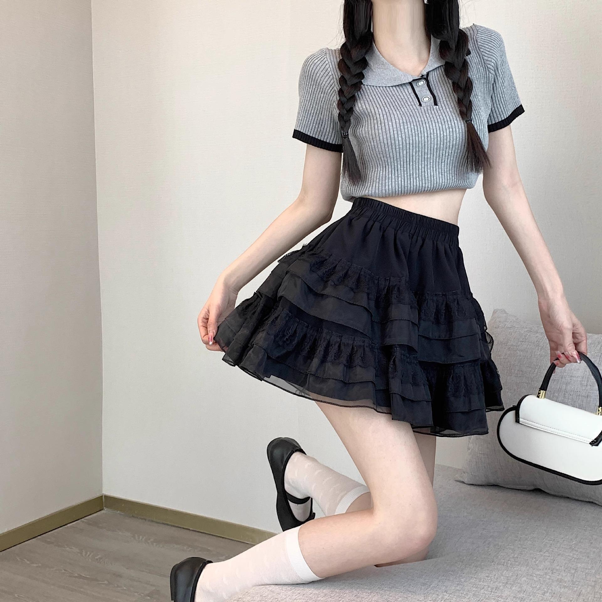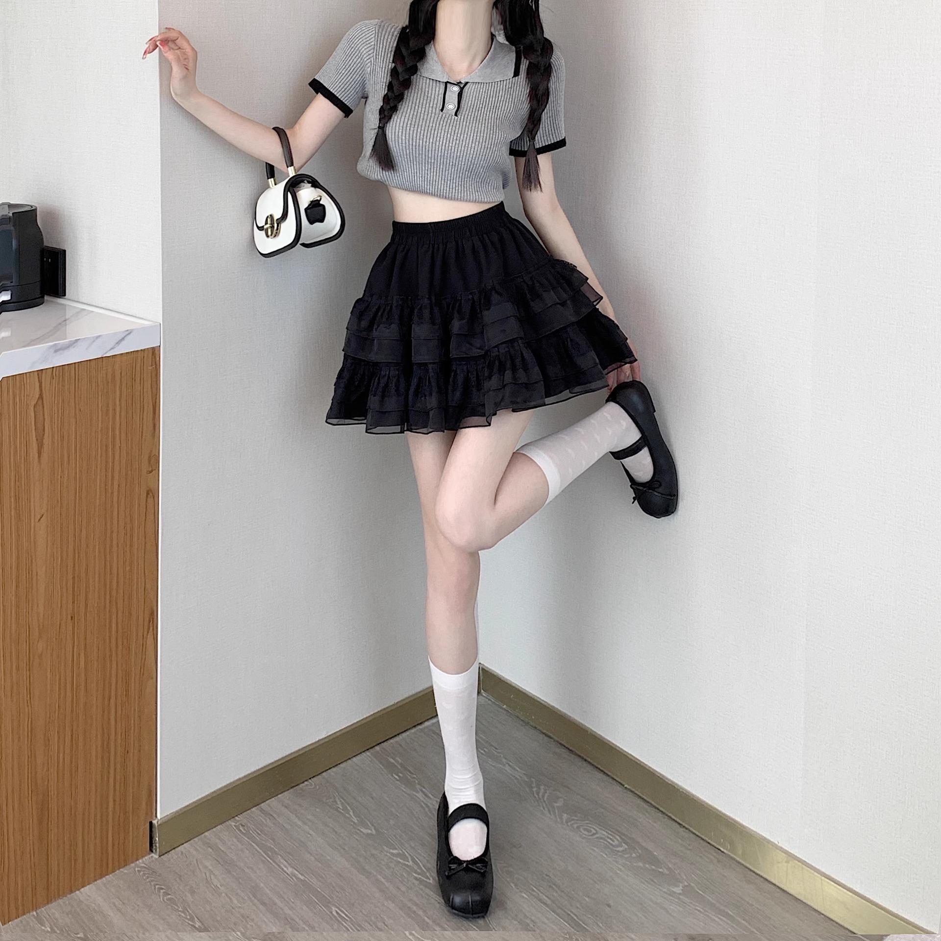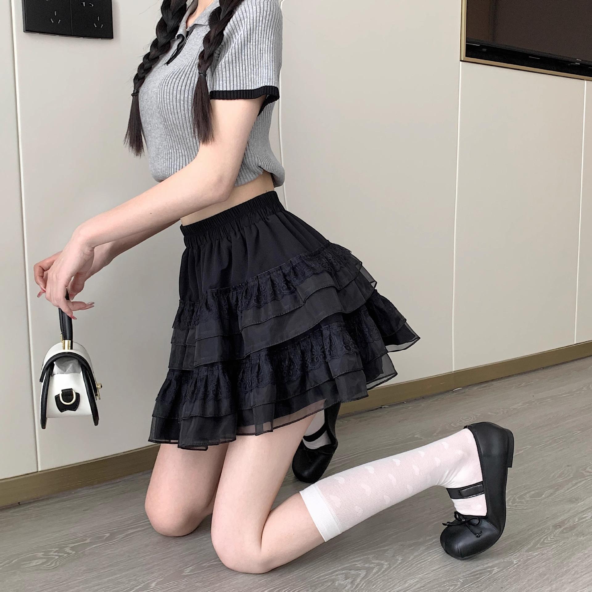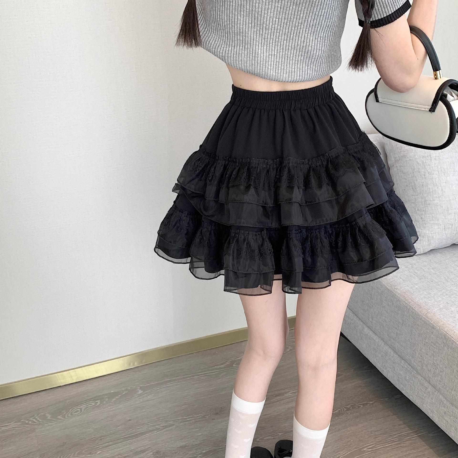Falda de cintura alta de malla abullonada para mujer, primavera y verano 2024, nueva falda corta ajustada de corte A en color blanco hada.