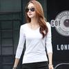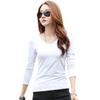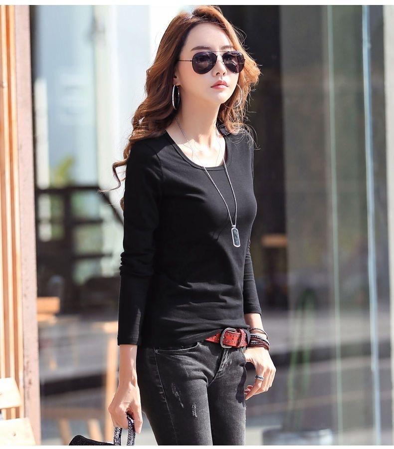 Playera de manga larga con cuello redondo para mujer, elástica, nueva, entallada para mujer, top versátil, ropa interior delgada, color sólido, camiseta básica para mujer