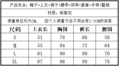 21211 [hat + top + pants + belt + tie + badge + handcuffs + baton]