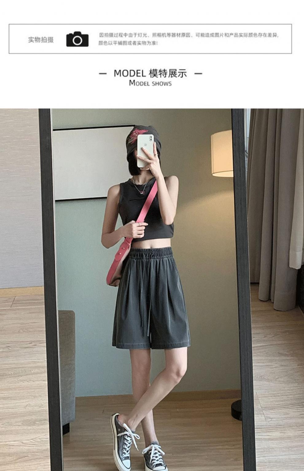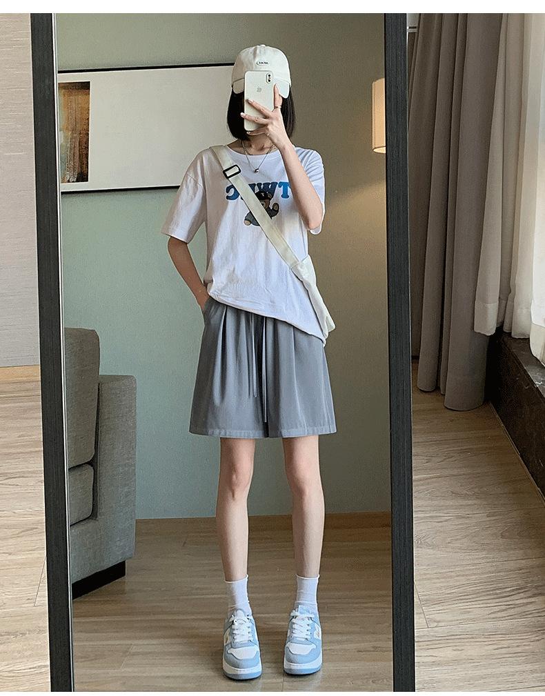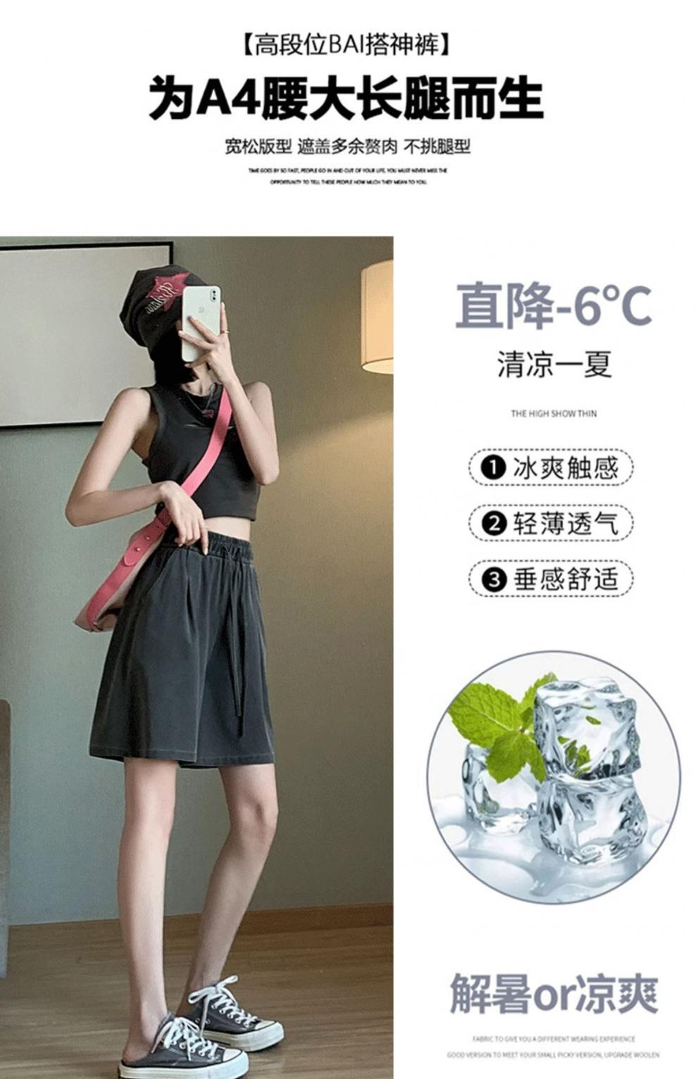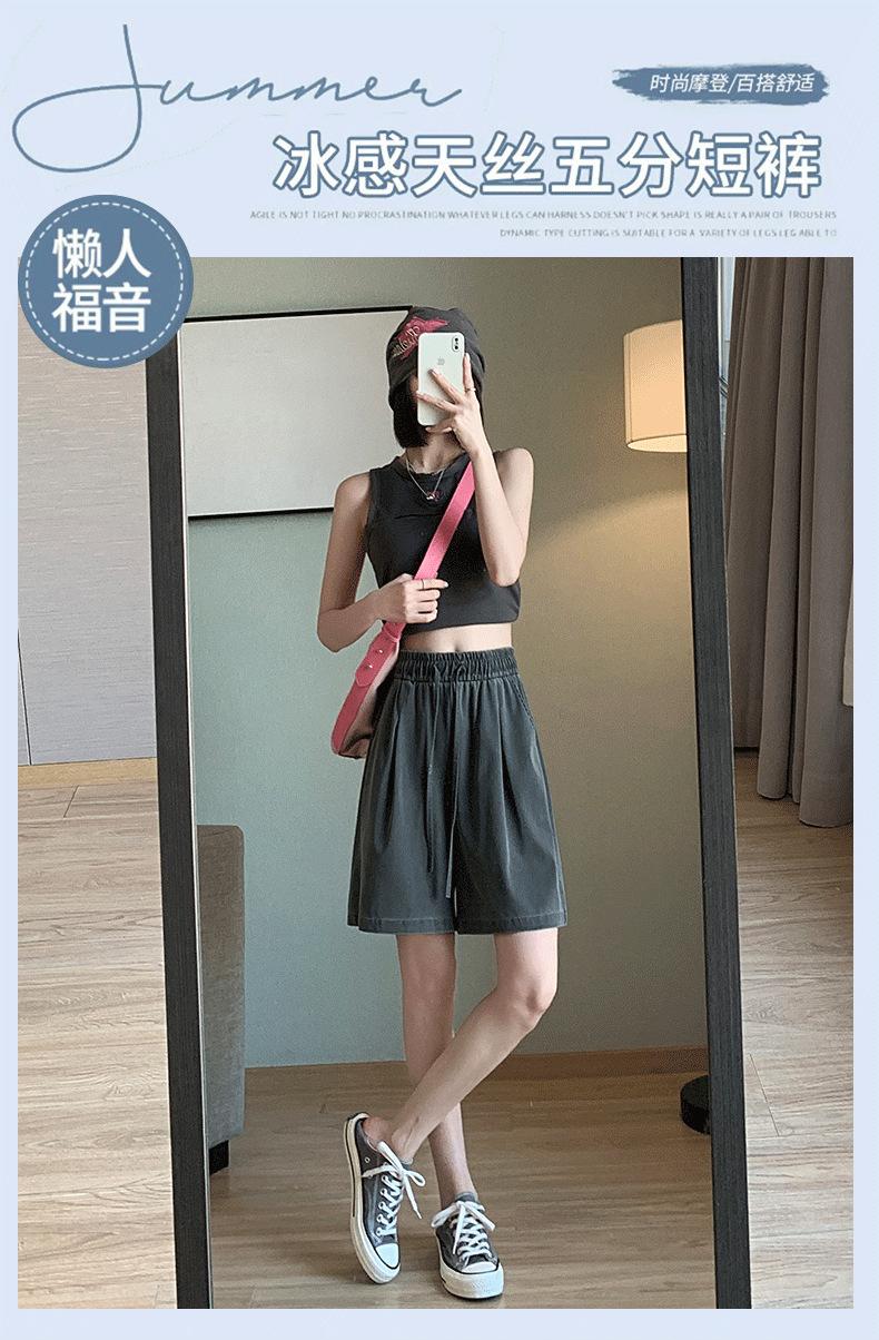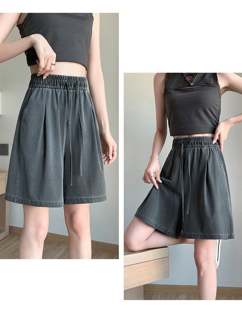 Shorts de Mezclilla Tencel Imitación para Mujer Verano Delgados 2024 Nuevos Cintura Alta Holgados Casuales Pantalones Deportivos Pantalones de Pierna Ancha