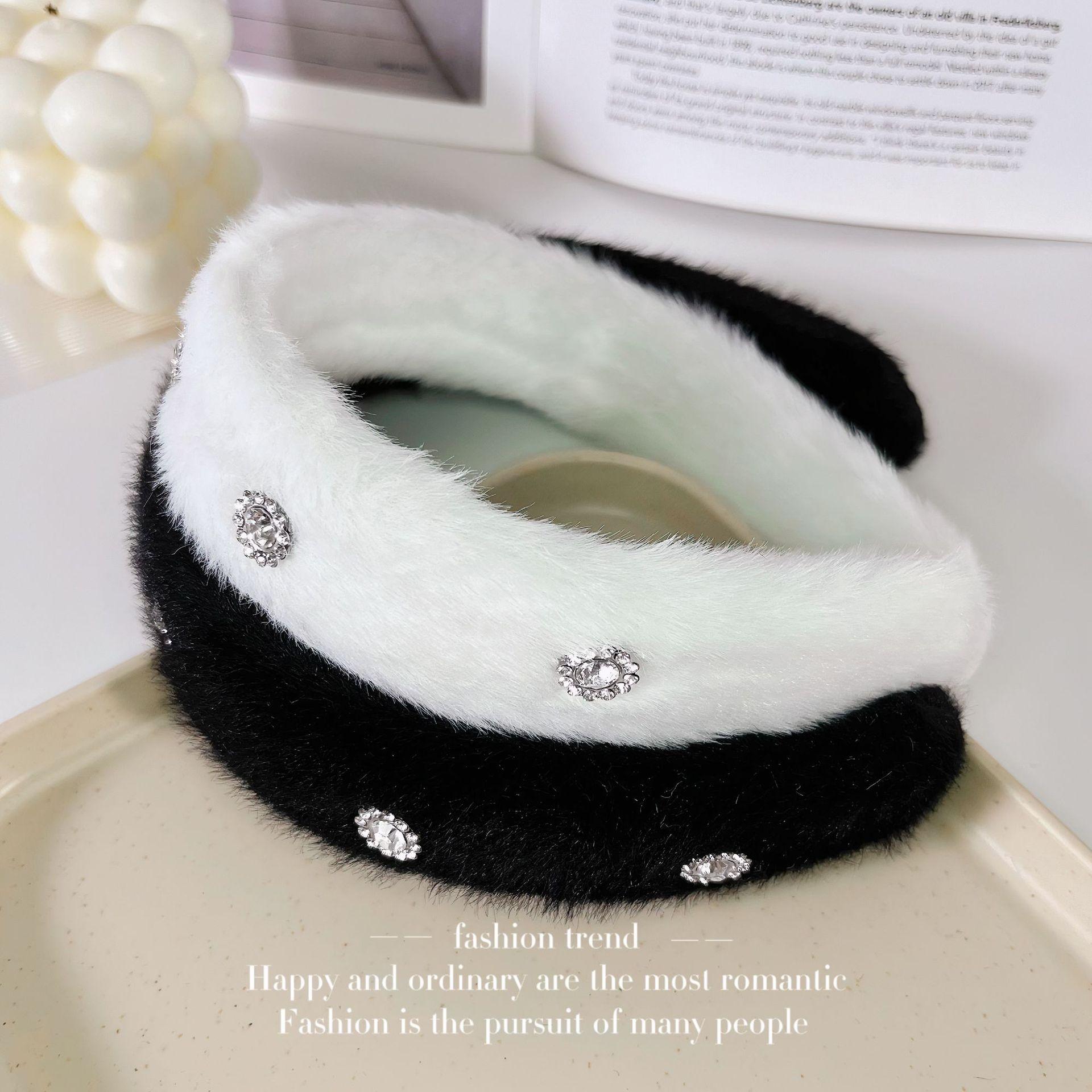 Versión coreana de diadema de felpa de diamante de ala ancha para mujer 2023 otoño e invierno para salir diadema alta para cráneo tocado de nicho para presionar el cabello
