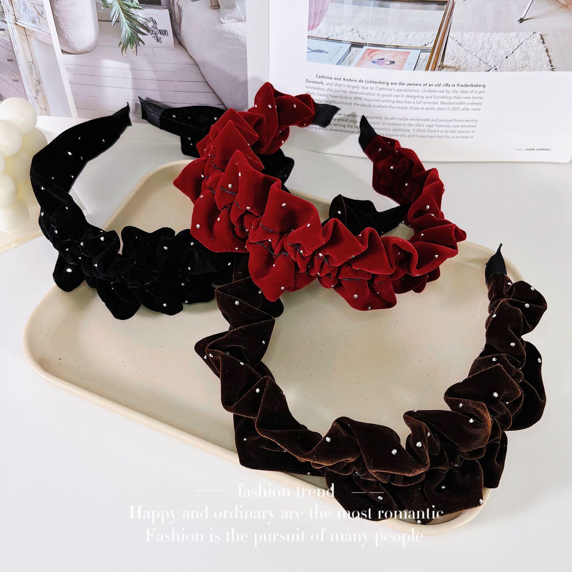 Otoño e invierno nuevo estilo estrella flocado diadema plisada femenina elegante sentido de alta gama para salir diadema de presión superior alta para el cráneo venta al por mayor