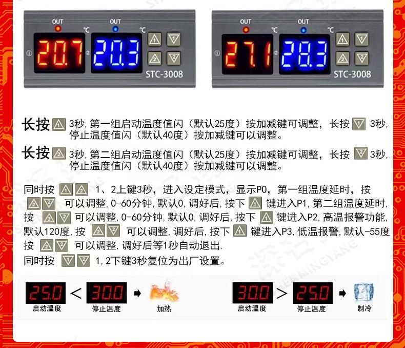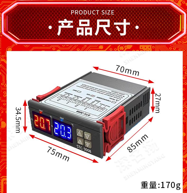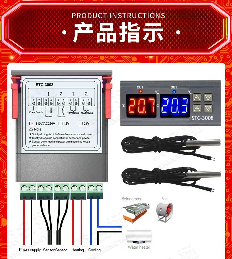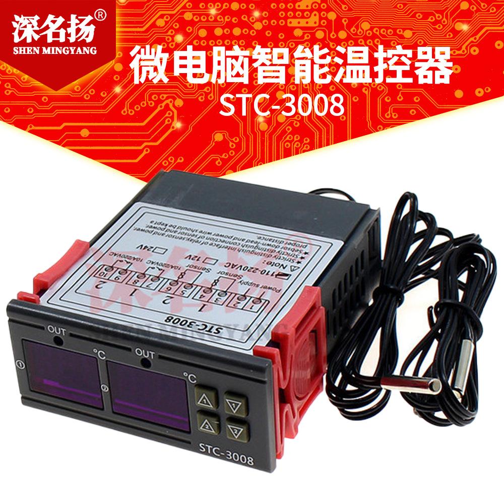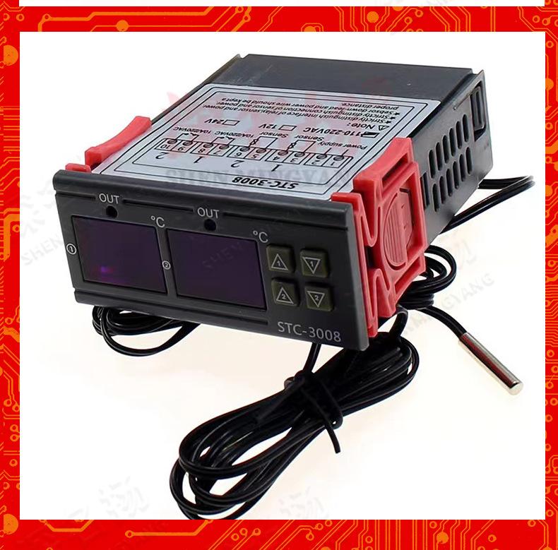 Termostato electrónico inteligente de doble control con pantalla digital para computadora STC-3008, interruptor controlador de temperatura ajustable de doble temperatura y doble pantalla.