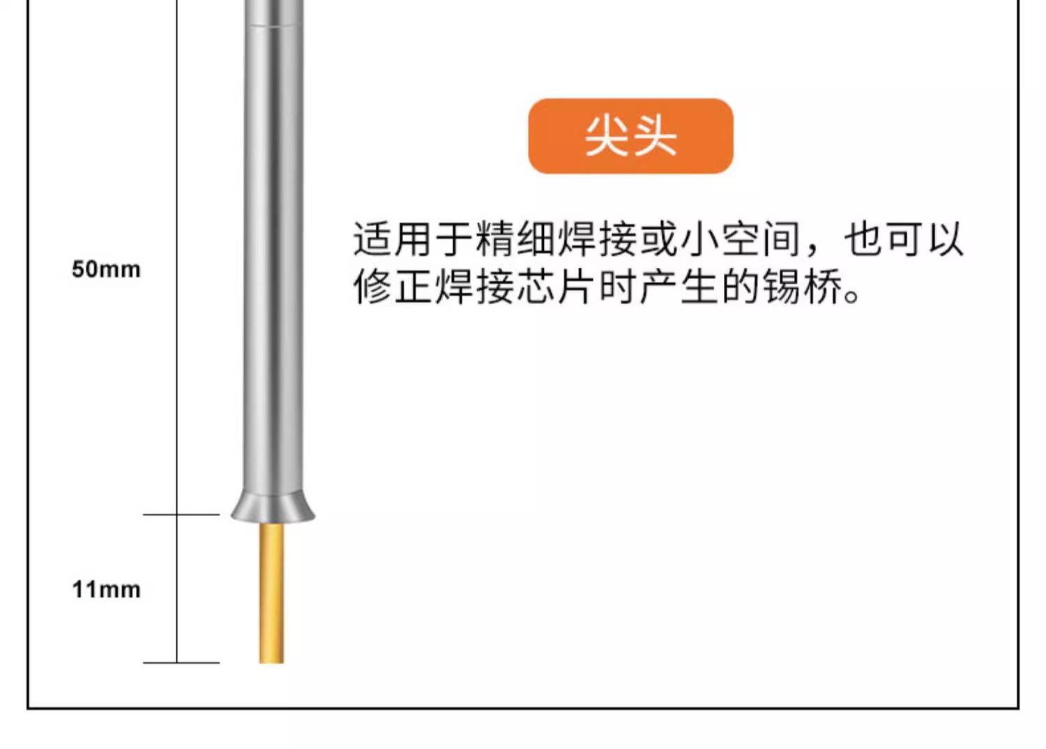 Longitud de la cabeza del soldador (boquilla)