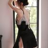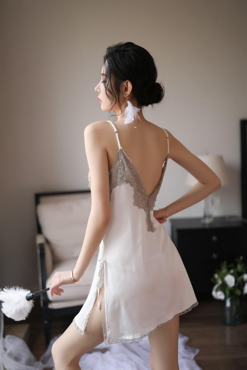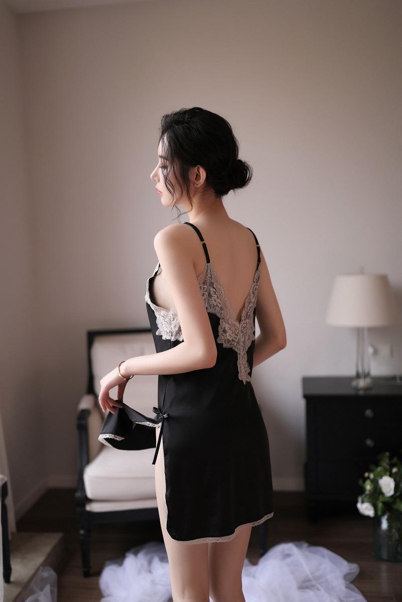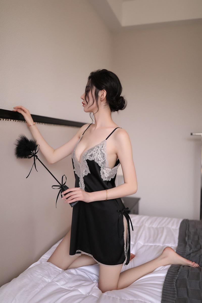 Lencería Sexy de Noche Larga Camisón Femenino con Liguero Encaje Tentación Sexy Falda Corta Traje Transparente Shiyun 1111