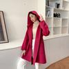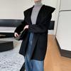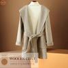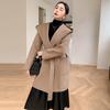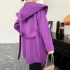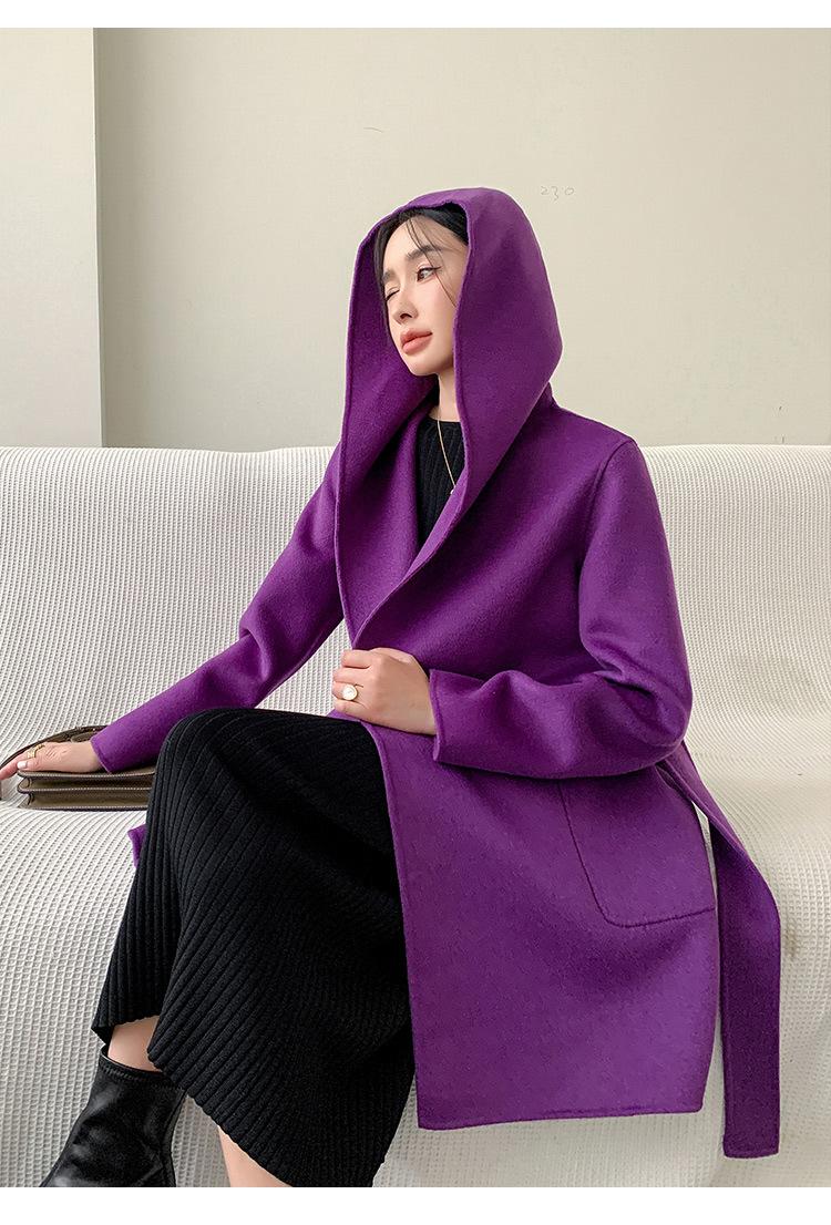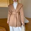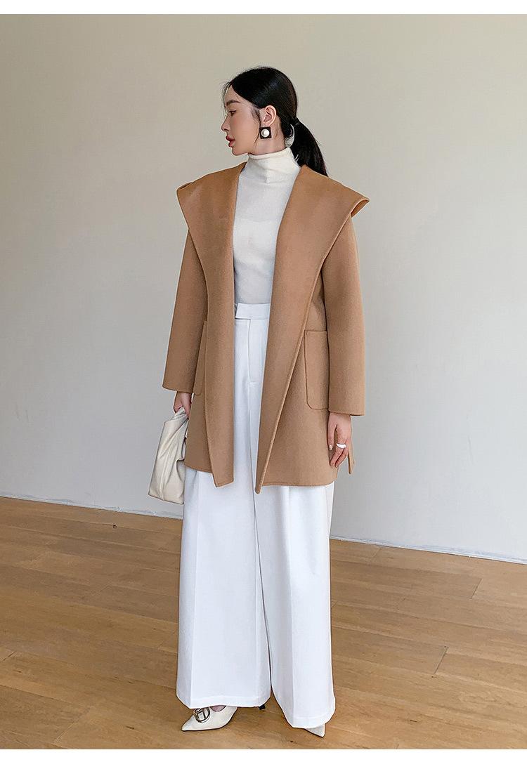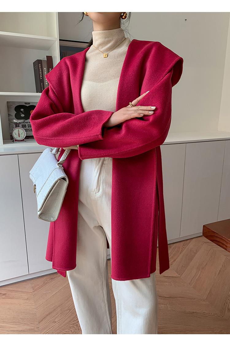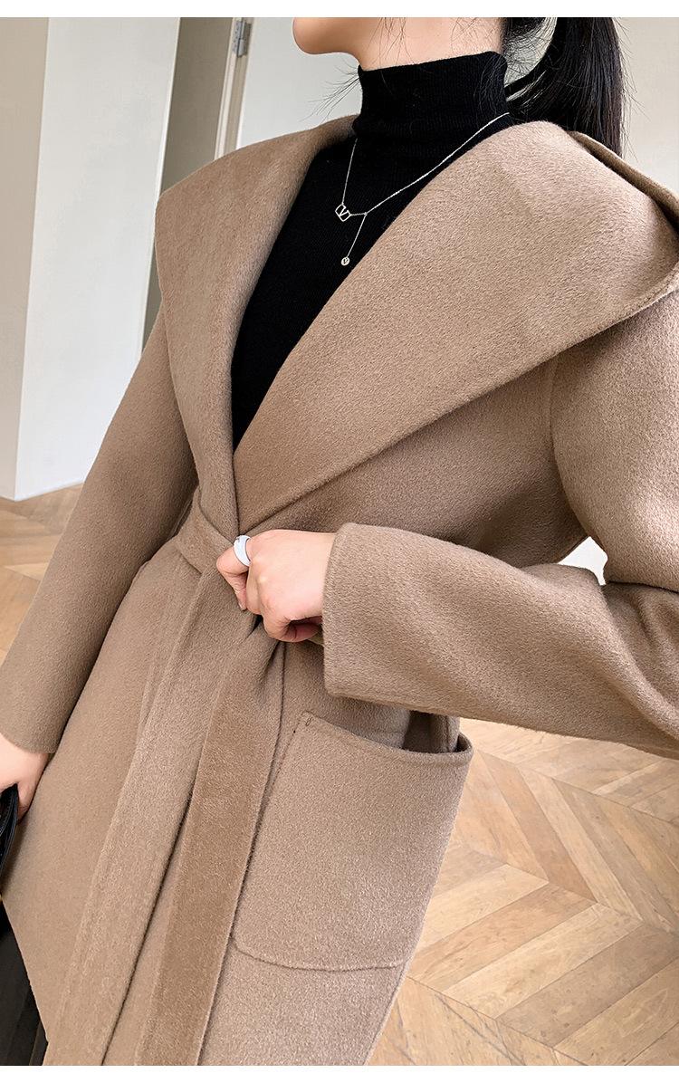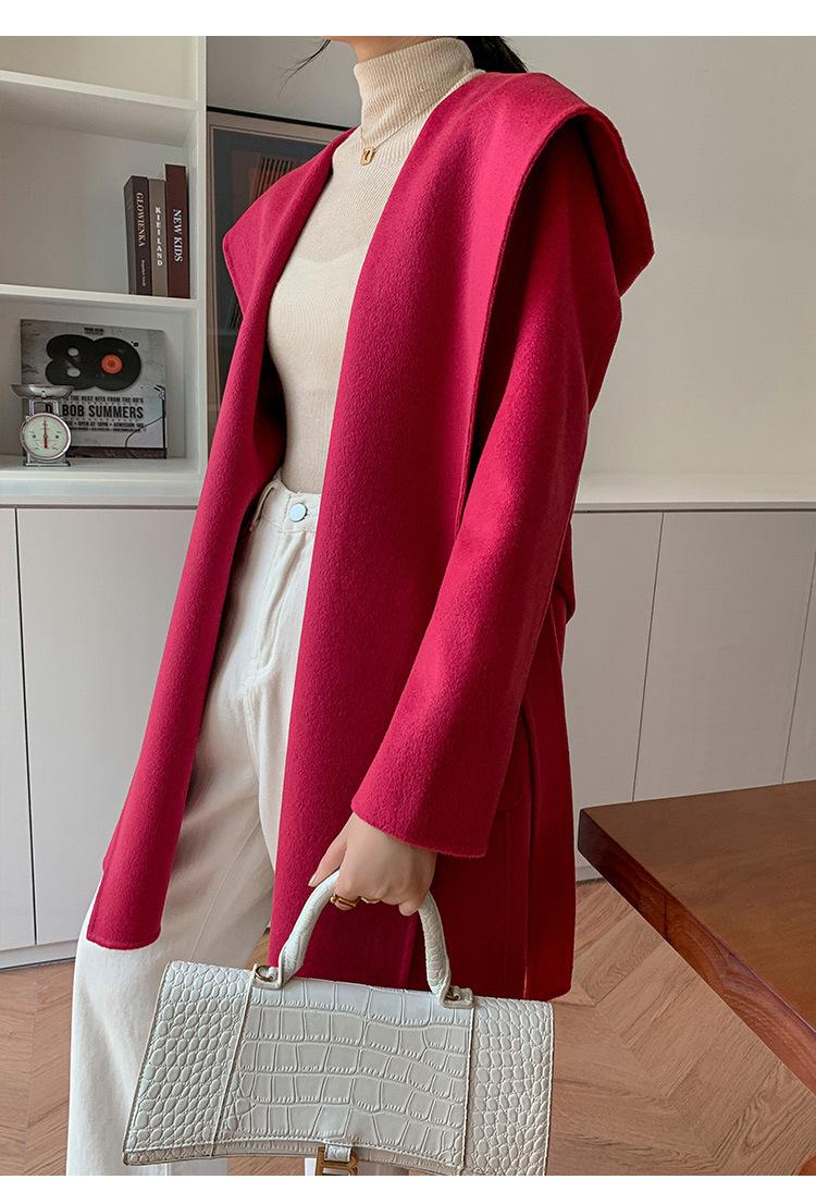Abrigo de Lana de Otoño e Invierno de Lana de Doble Cara con Capucha para Mujer de Largo Medio para Desplazamiento Holgado Versátil Abrigo de Lana con Cinturón